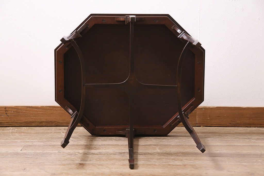 アンティーク家具 イギリスアンティーク 上手物 マホガニー材 象嵌細工 八角形の天板がお洒落なオケージョナルテーブル(サイドテーブル、花台、オーバルテーブル、カフェテーブル)(R-046153)