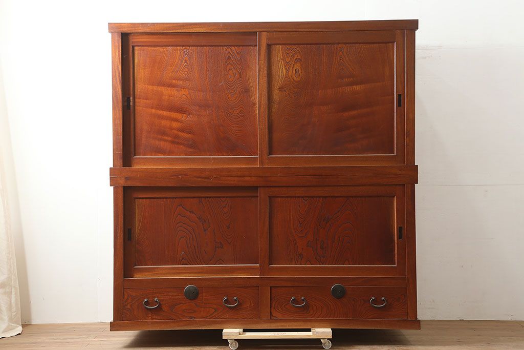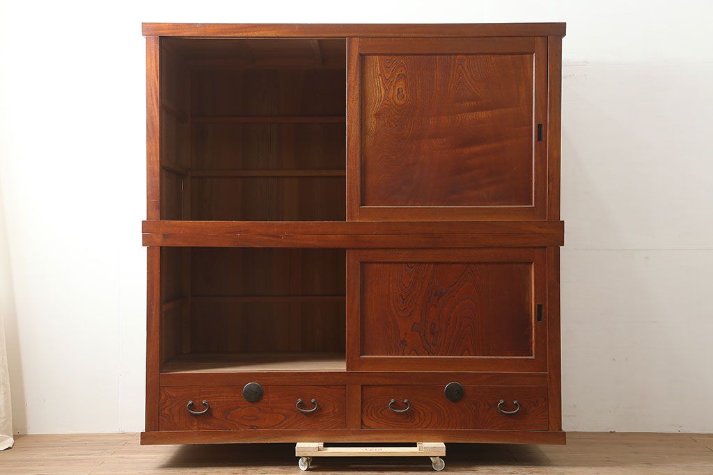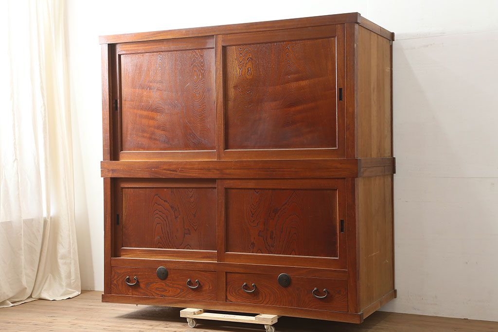 アンティーク家具 大正期 シンプルなつくりの重ね収納箪笥(水屋箪笥、キャビネット、食器棚、戸棚、夜具箪笥、布団箪笥)(R-046039)