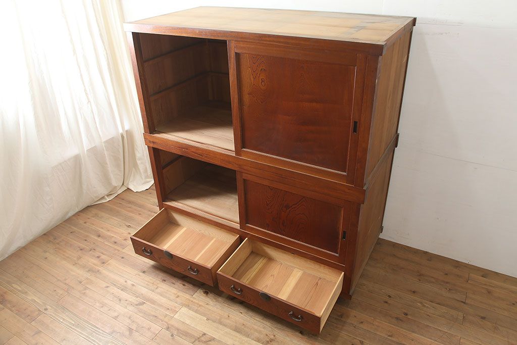 和箪笥 > アンティーク家具 大正期 シンプルなつくりの重ね収納箪笥(水屋箪笥、キャビネット、食器棚、戸棚、夜具箪笥、布団箪笥)(R-046039)