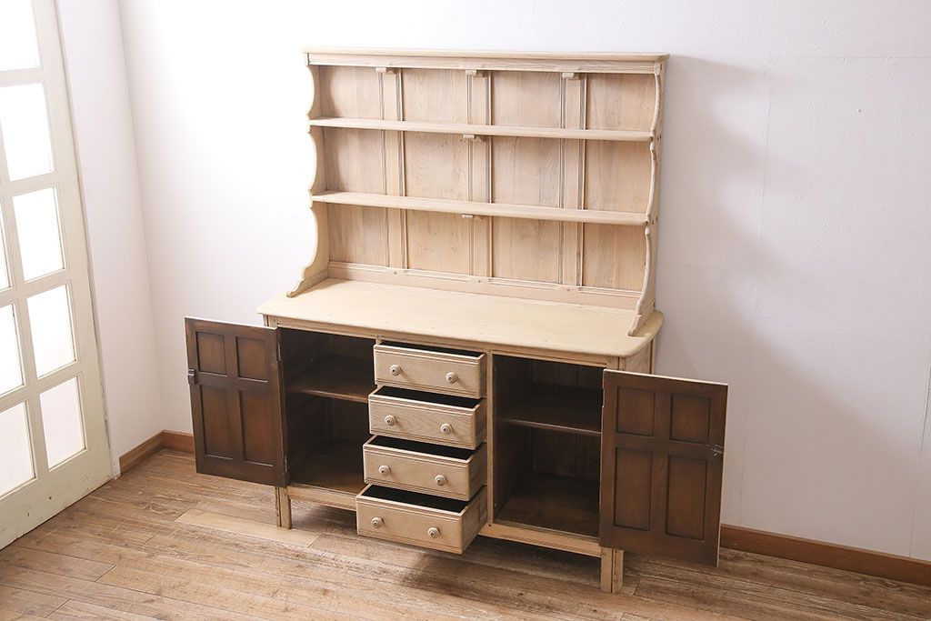 ヴィンテージ家具 イギリスビンテージ ストリップド(剥離) ERCOL(アーコール) Old Colonial(オールドコロニアル) カップボード(収納棚、食器棚)(R-046143)