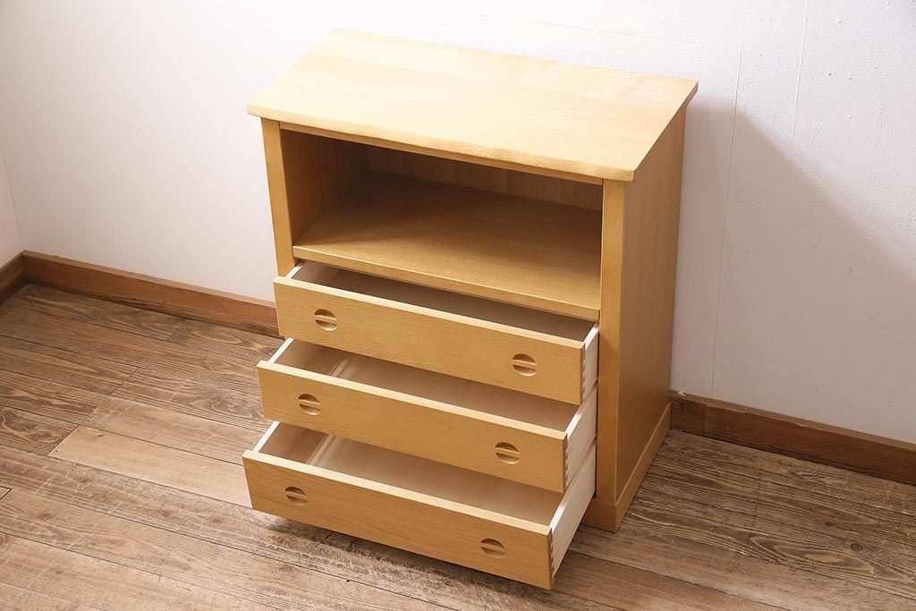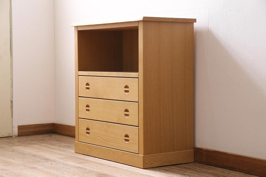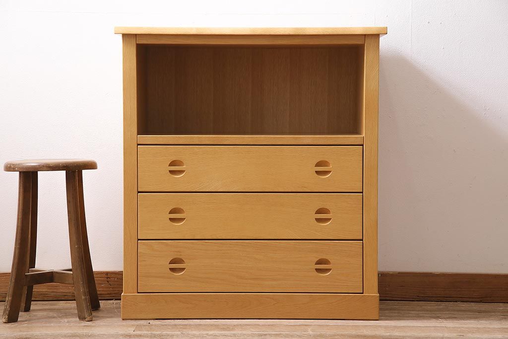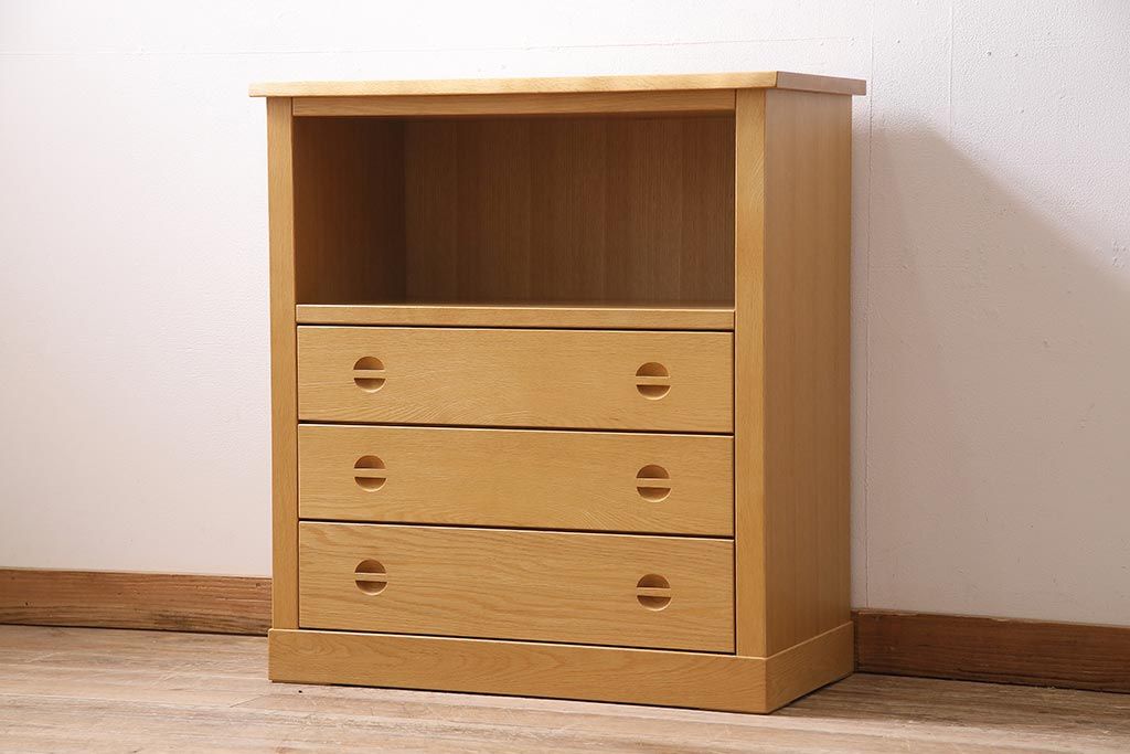中古 IDC大塚家具 杜シリーズ ナラ材 木の風合いを活かしたデザインが魅力の電話台(サイドチェスト、引き出し、収納棚)(R-045917)