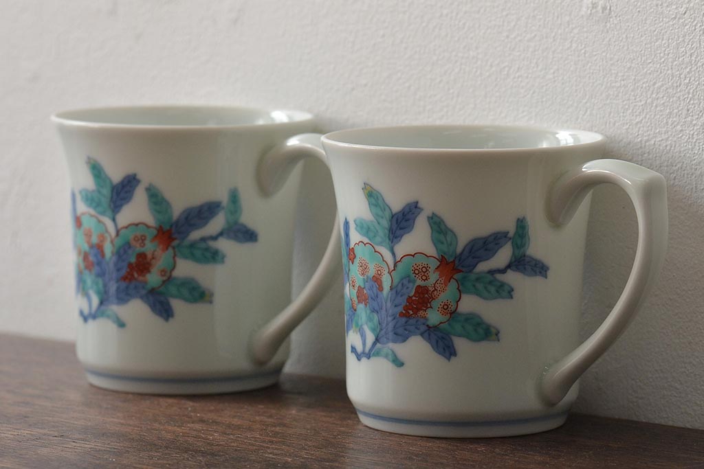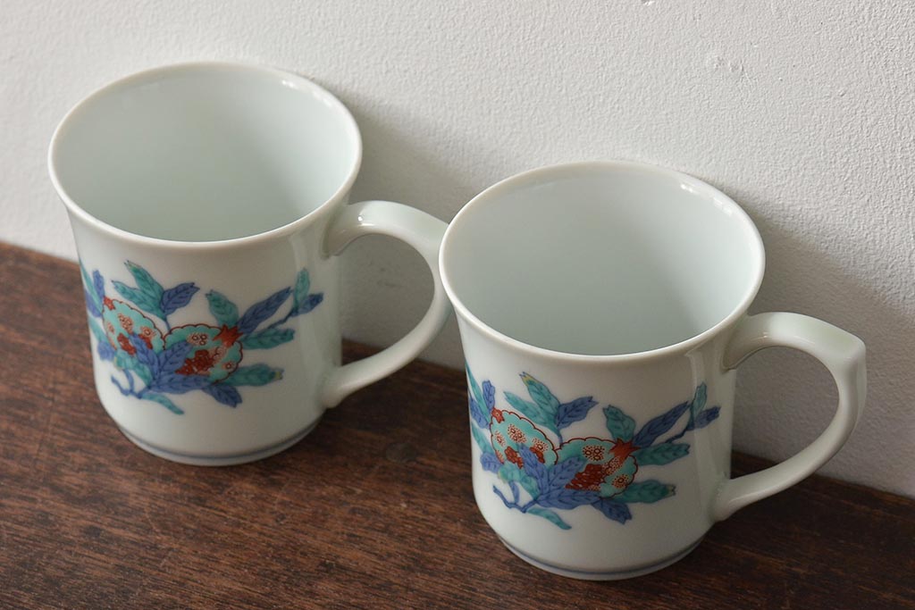今泉今右衛門 柘榴絵 マグカップ2客(有田焼、色絵)(R-045938)