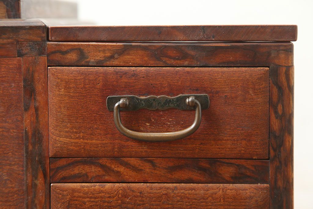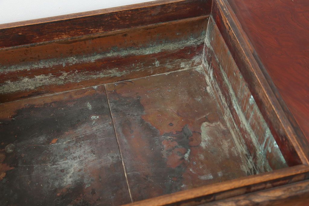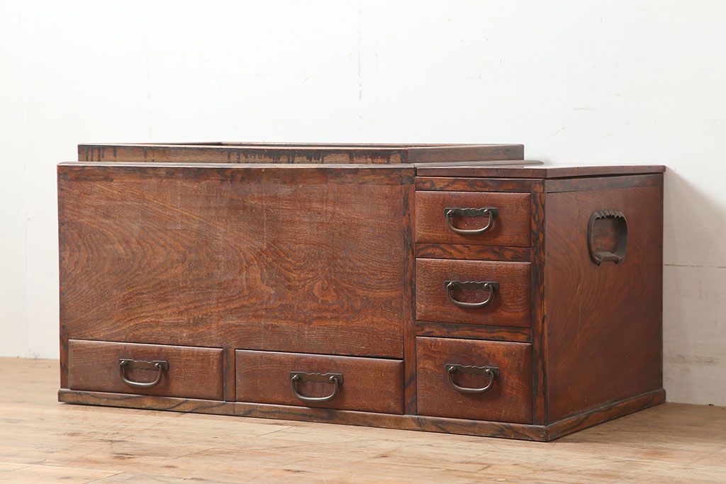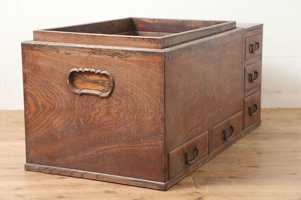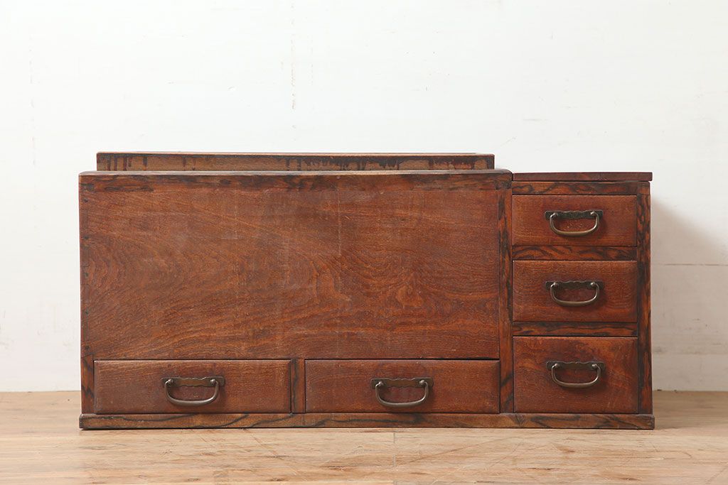 火鉢> 木製火鉢 > アンティーク雑貨 昭和初期 ケヤキ材・黒柿 年月を重ねた風合いが味わい深い長火鉢(木製火鉢)(R-046246)