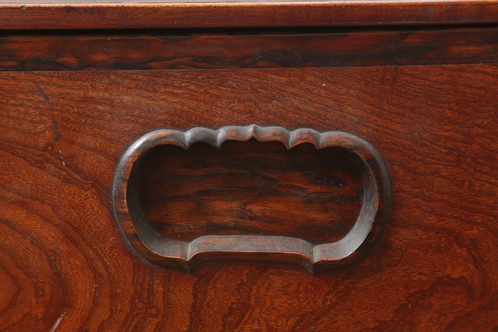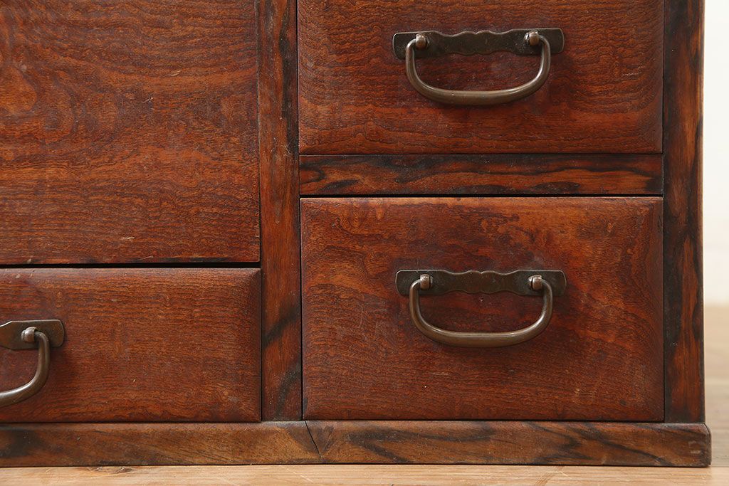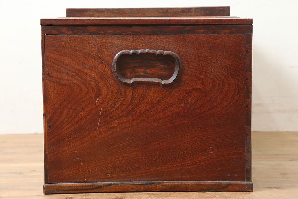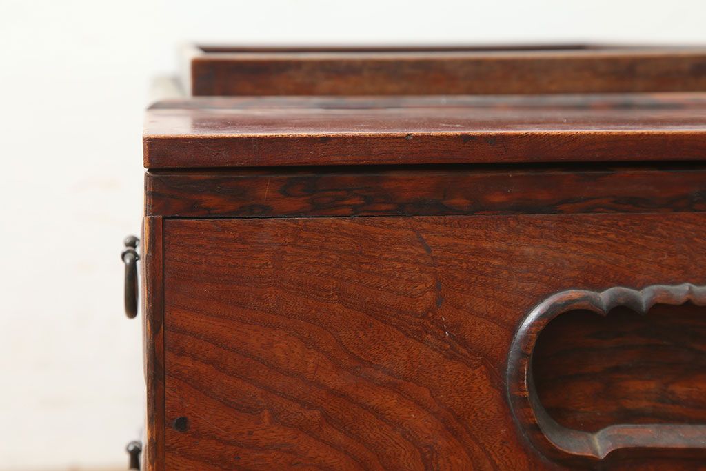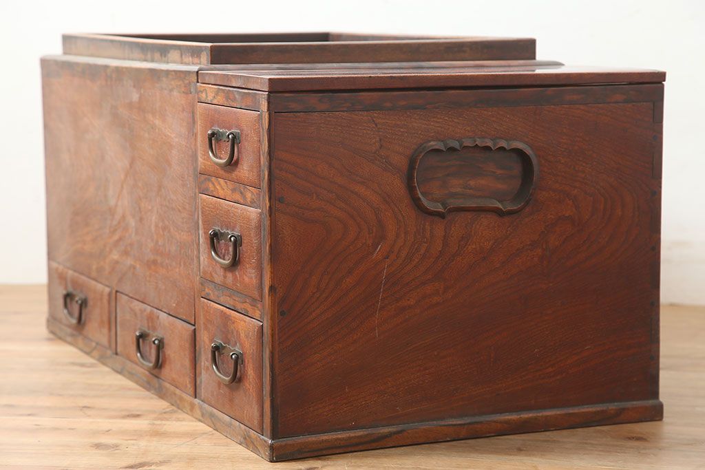 火鉢> 木製火鉢 > アンティーク雑貨 昭和初期 ケヤキ材・黒柿 年月を重ねた風合いが味わい深い長火鉢(木製火鉢)(R-046246)