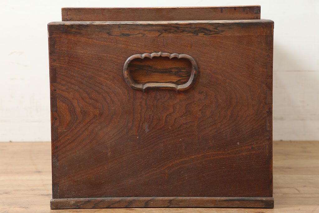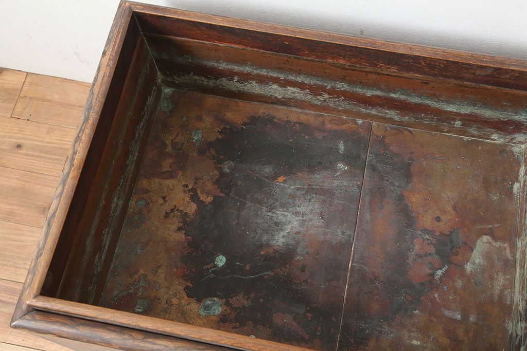 アンティーク雑貨 昭和初期 ケヤキ材・黒柿 年月を重ねた風合いが味わい深い長火鉢(木製火鉢)(R-046246)