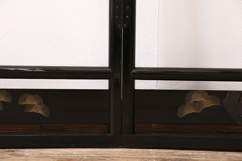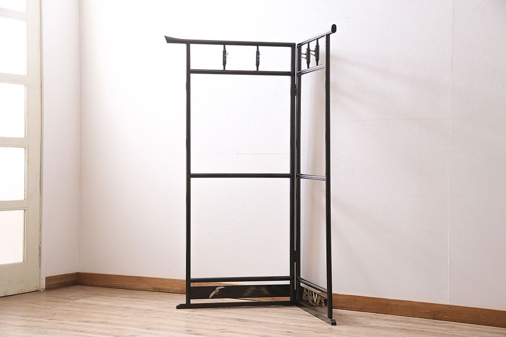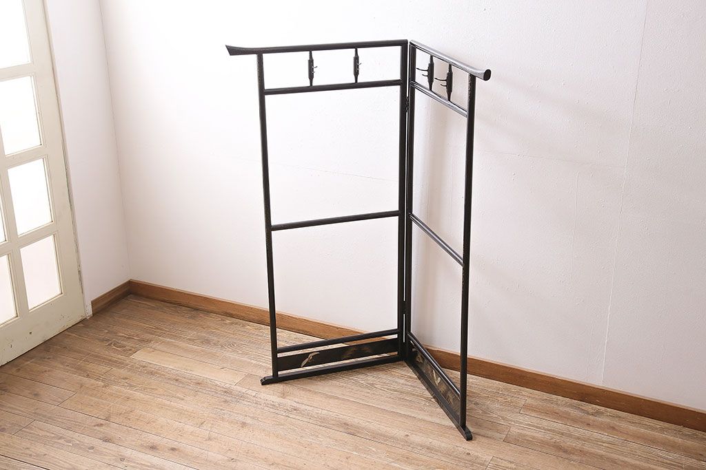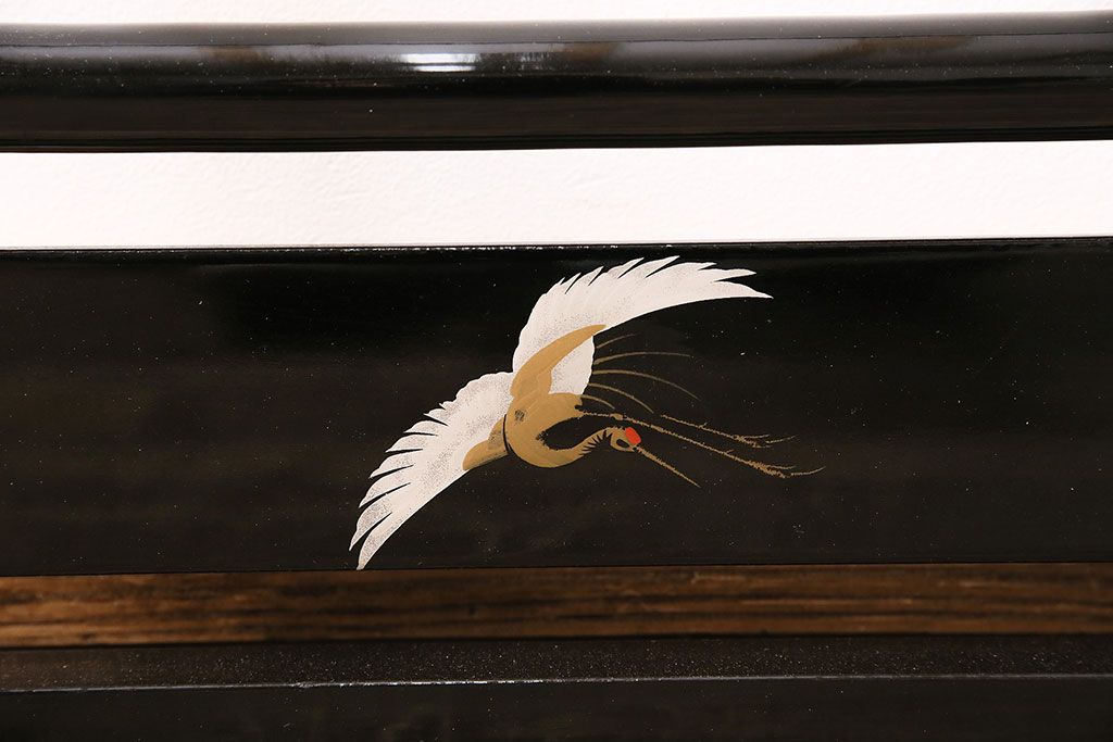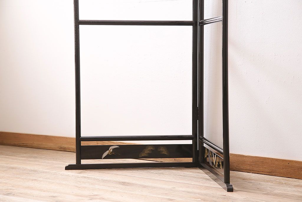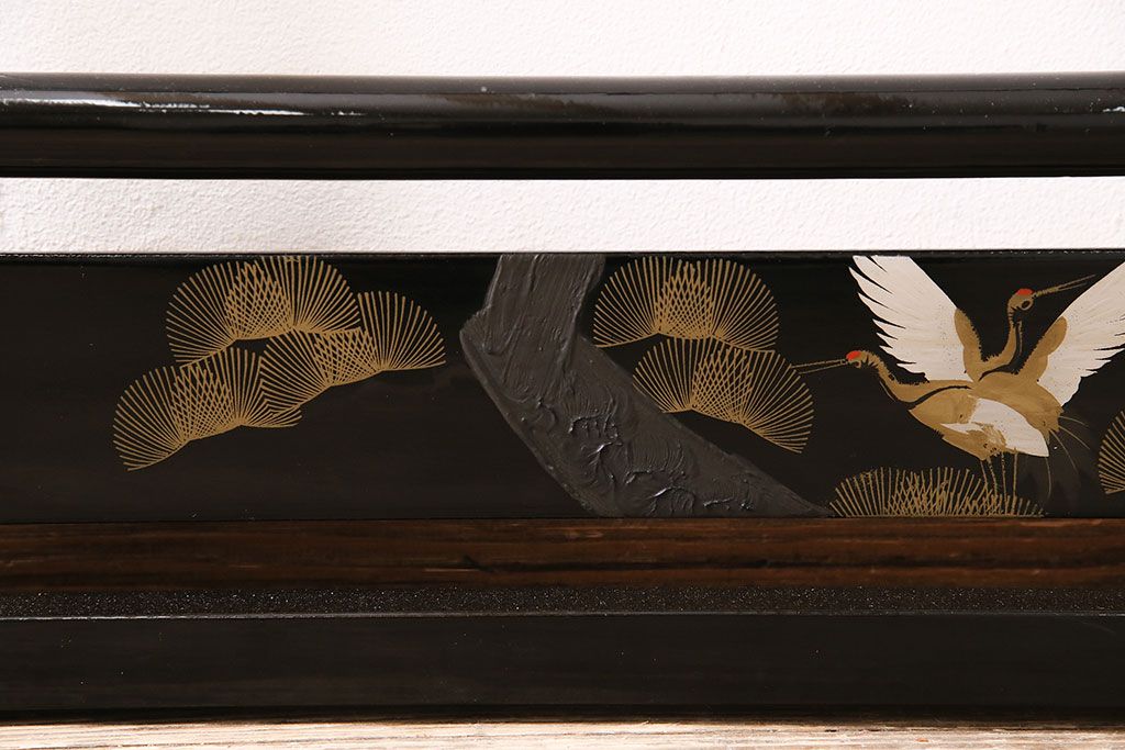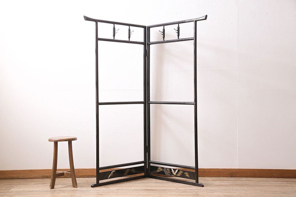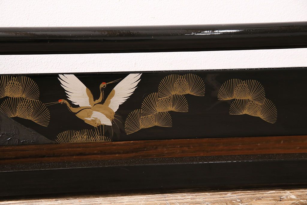 ヴィンテージ家具 昭和中期 鶴と松 漆塗りが高級感を漂わせるフック付きの衣桁(着物掛け、ハンガーラック、ビンテージ)(R-046266)