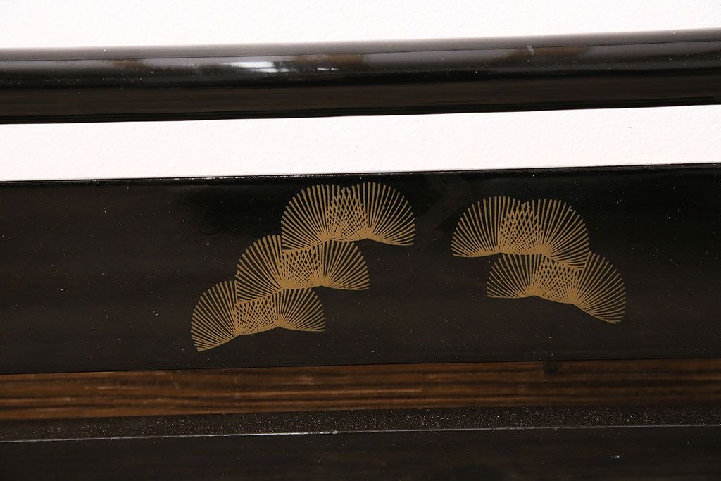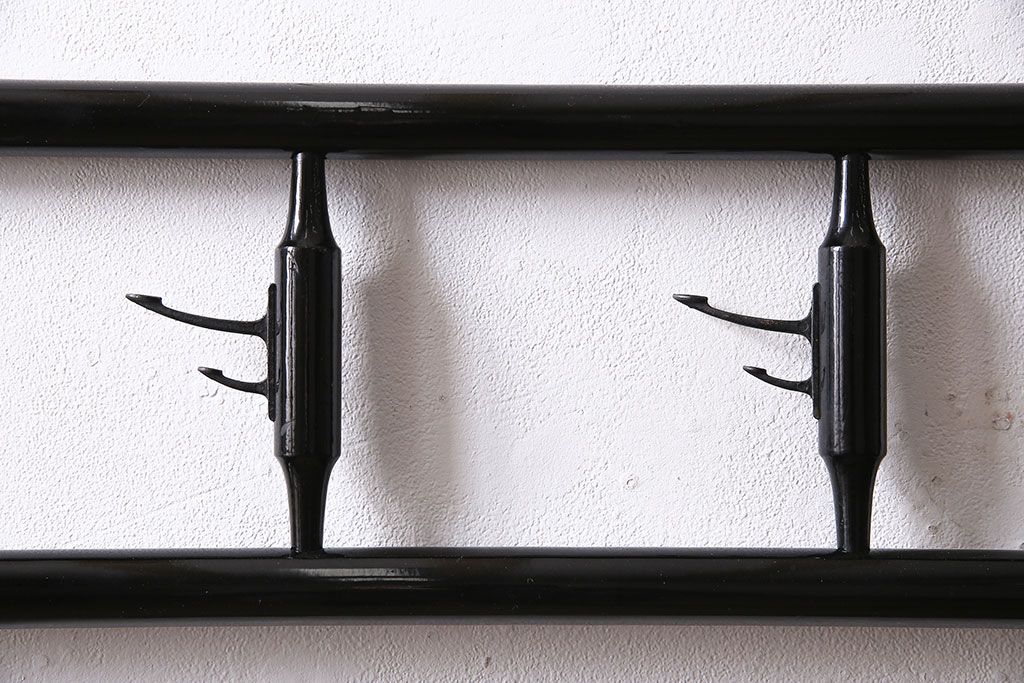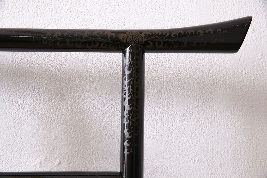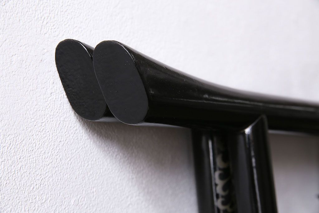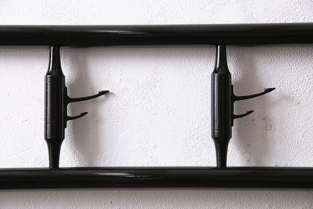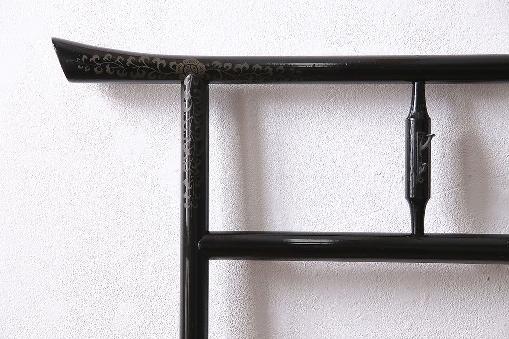 ハンガーラック・衣桁> 衣桁 > ヴィンテージ家具 昭和中期 鶴と松 漆塗りが高級感を漂わせるフック付きの衣桁(着物掛け、ハンガーラック、ビンテージ)(R-046266)