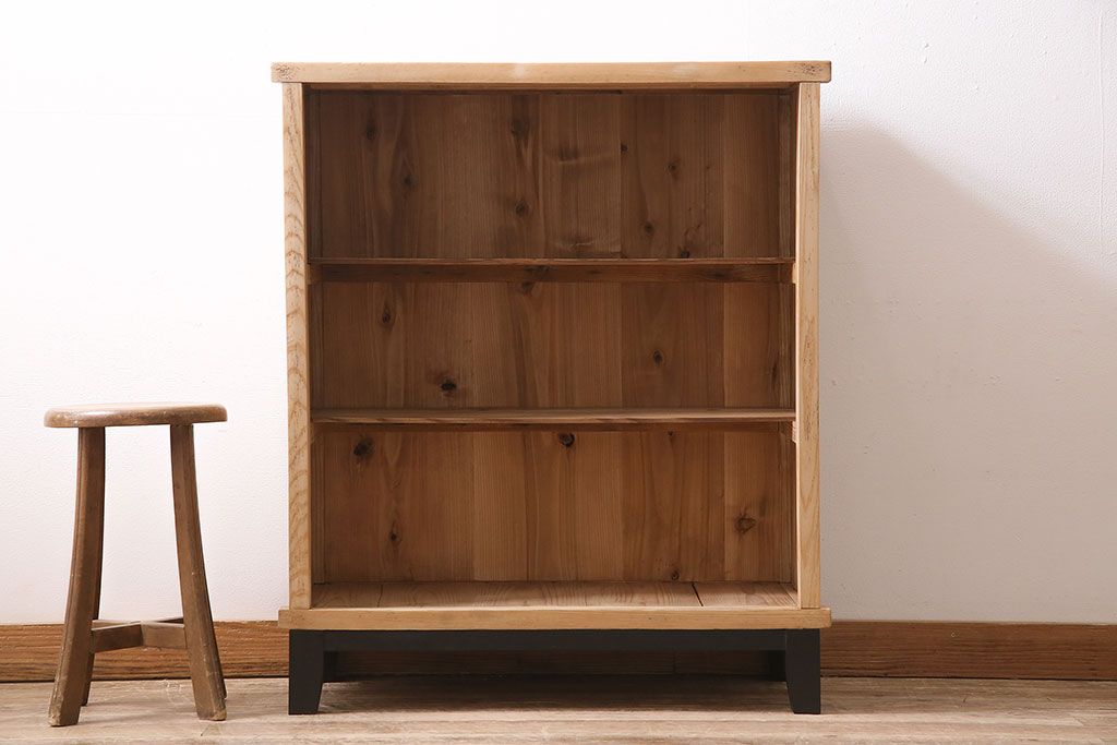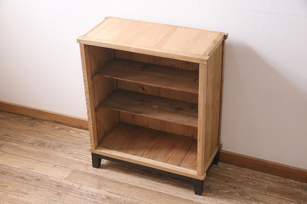 アンティーク家具 ストリップド(剥離) 黒い脚がアクセントのシンプルなオープンラック(棚、シェルフ)(R-046254)