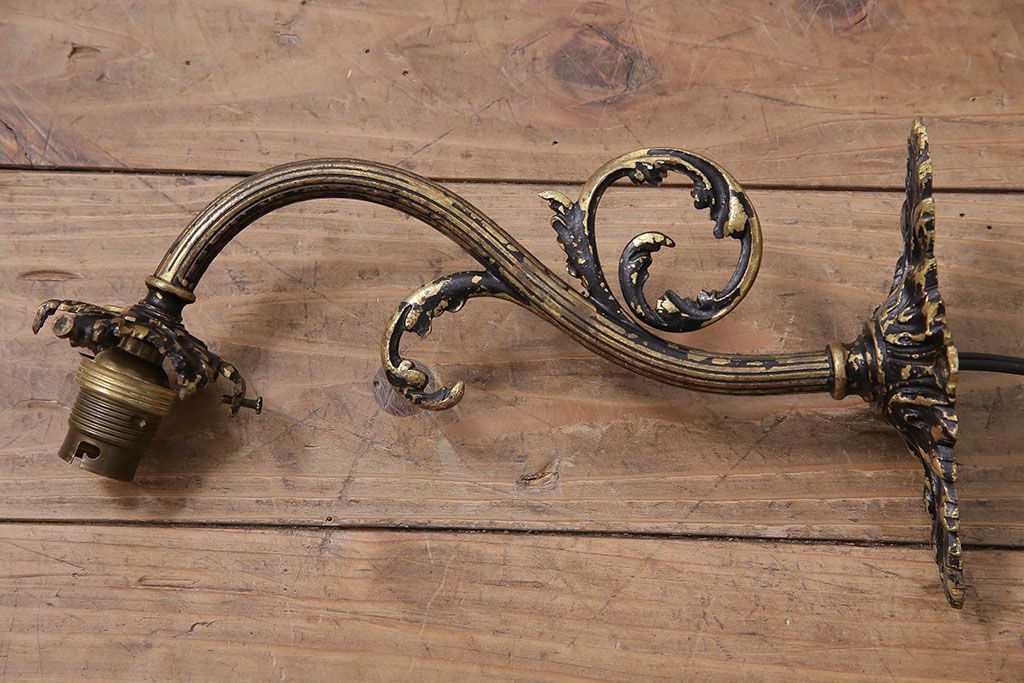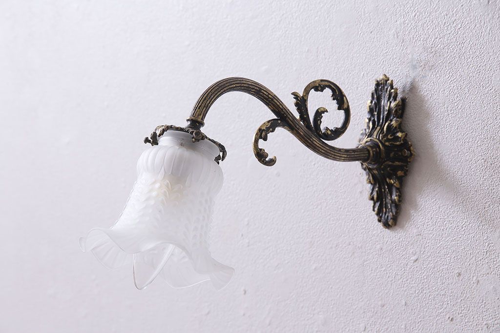 アンティーク照明 フランスアンティーク 真鍮製 ボタニカルモチーフ シャビーシックなウォールランプ(壁付け照明、壁掛け照明)(R-046193)