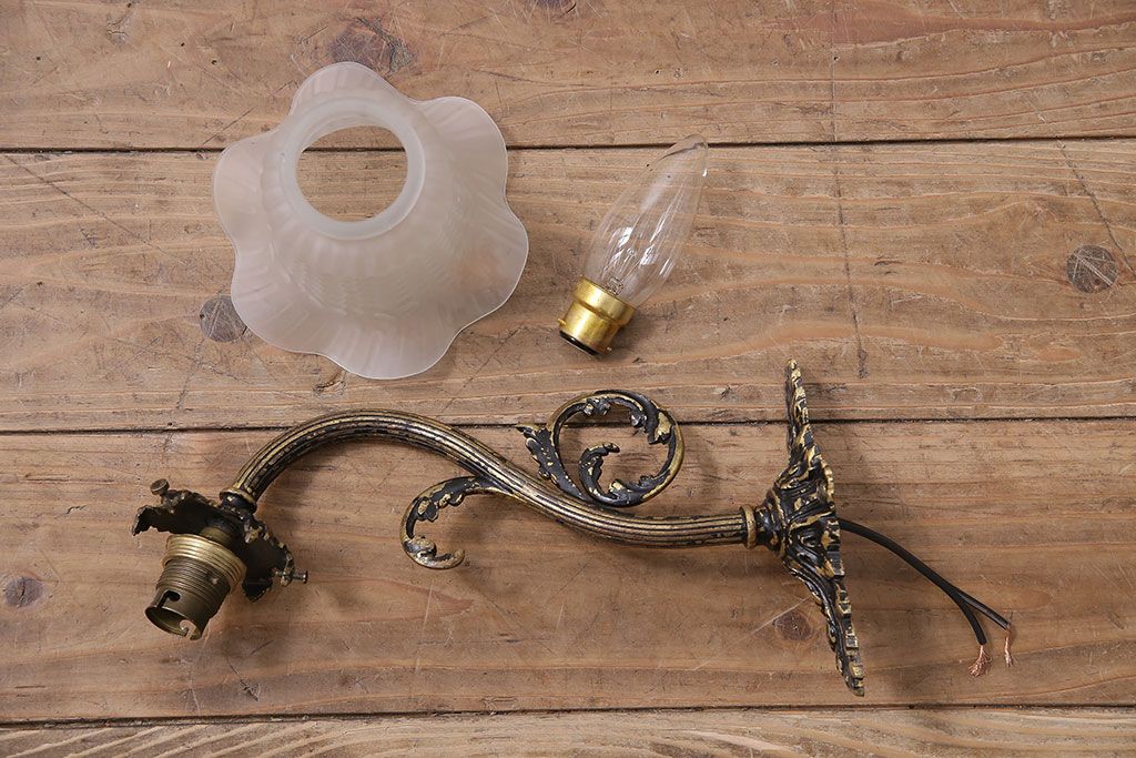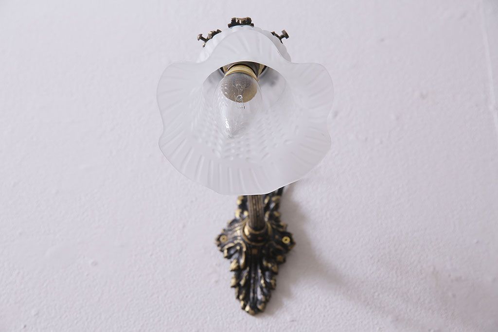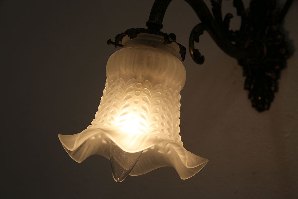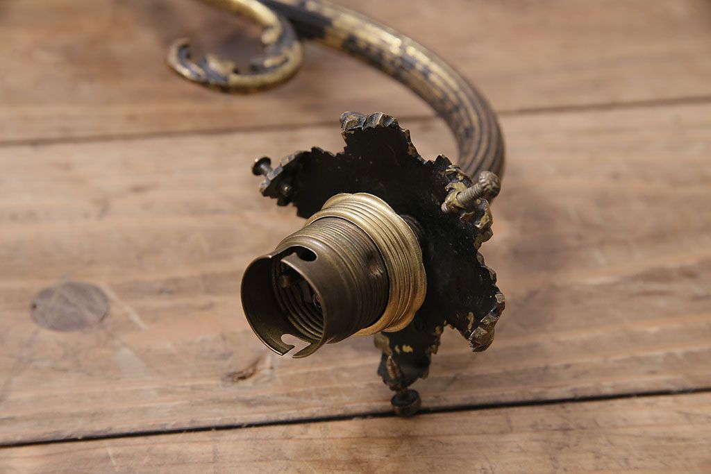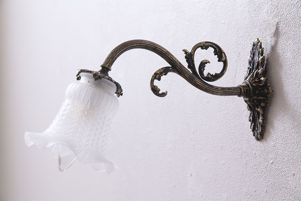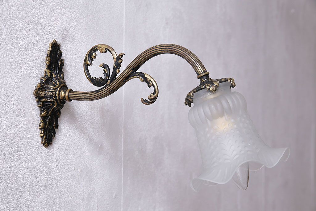 照明・ランプ> ウォールライト > アンティーク照明 フランスアンティーク 真鍮製 ボタニカルモチーフ シャビーシックなウォールランプ(壁付け照明、壁掛け照明)(R-046193)