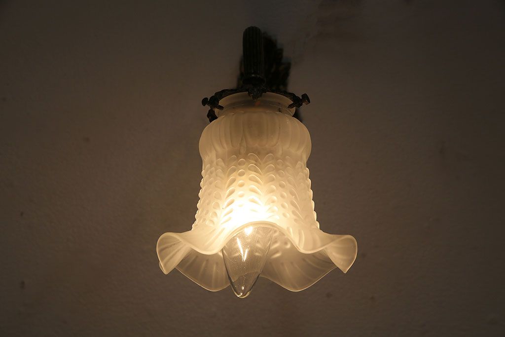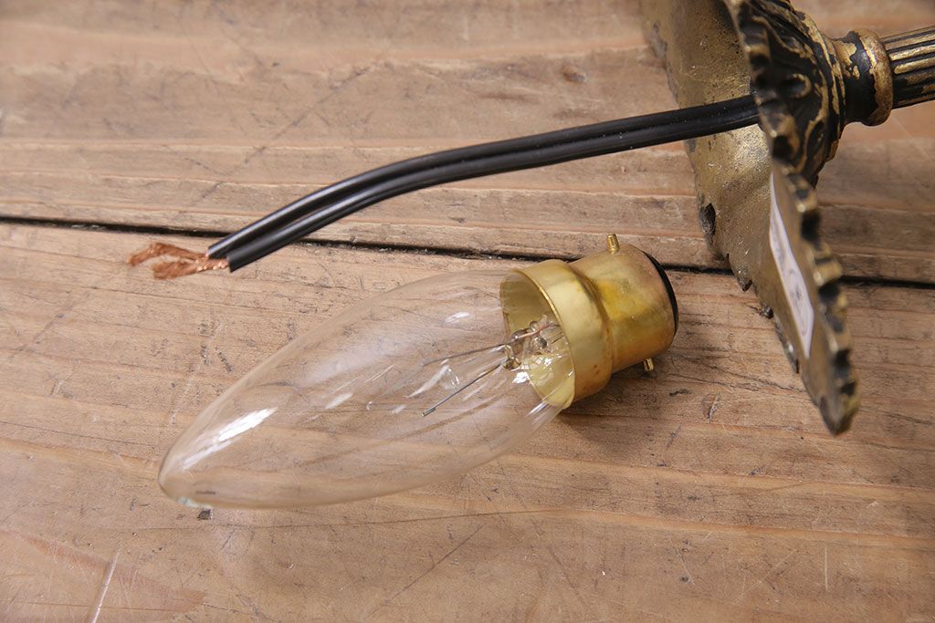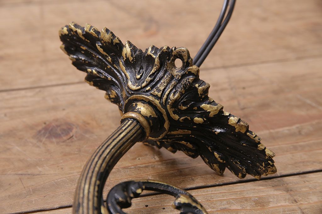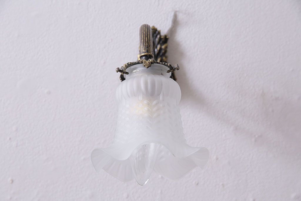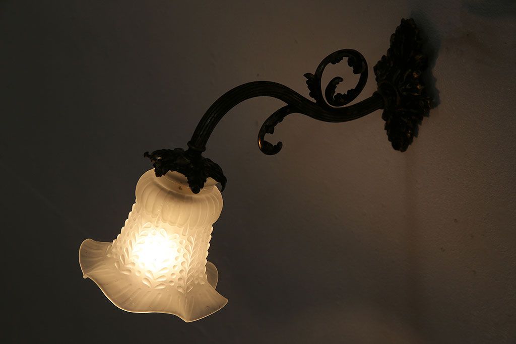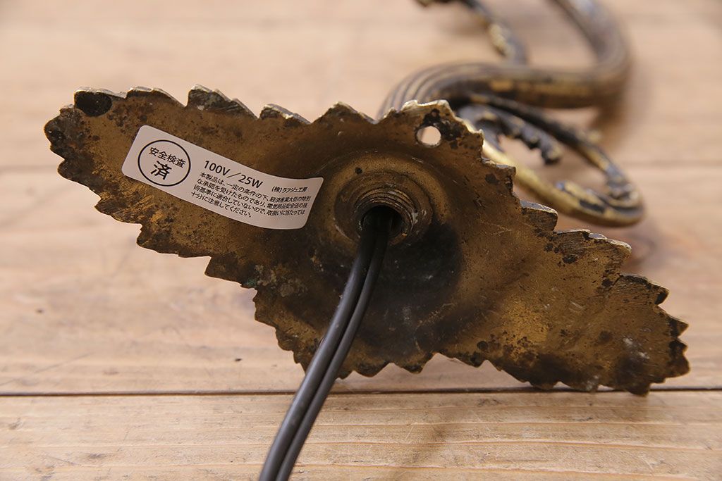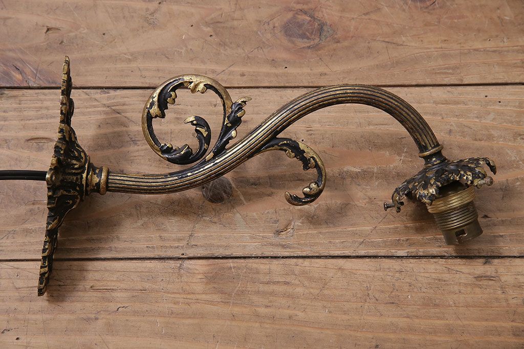 照明・ランプ> ウォールライト > アンティーク照明 フランスアンティーク 真鍮製 ボタニカルモチーフ シャビーシックなウォールランプ(壁付け照明、壁掛け照明)(R-046193)