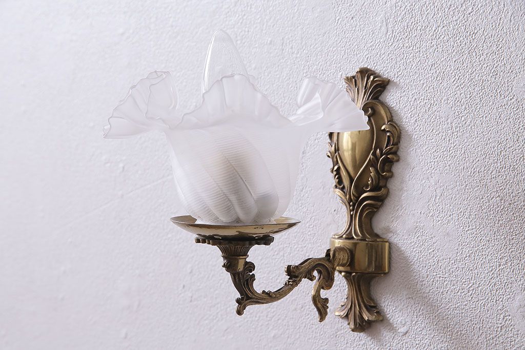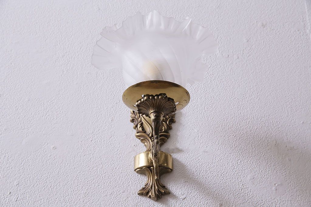 アンティーク照明 フランスアンティーク クラシックなお部屋にぴったりな真鍮製のウォールランプ(壁付け照明、壁掛け照明)(R-046195)