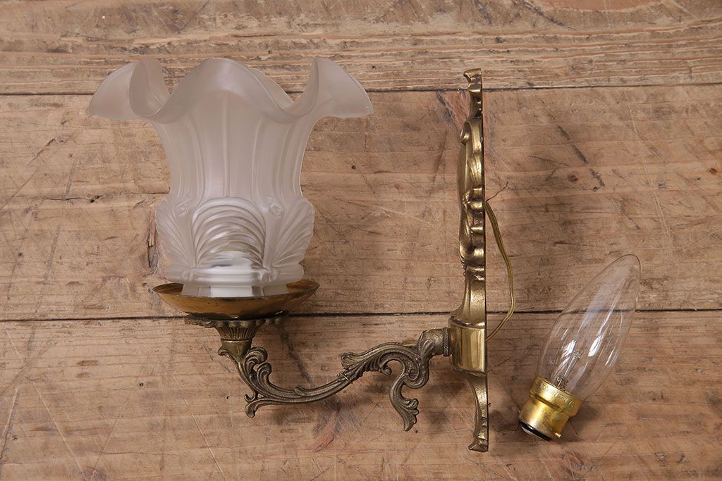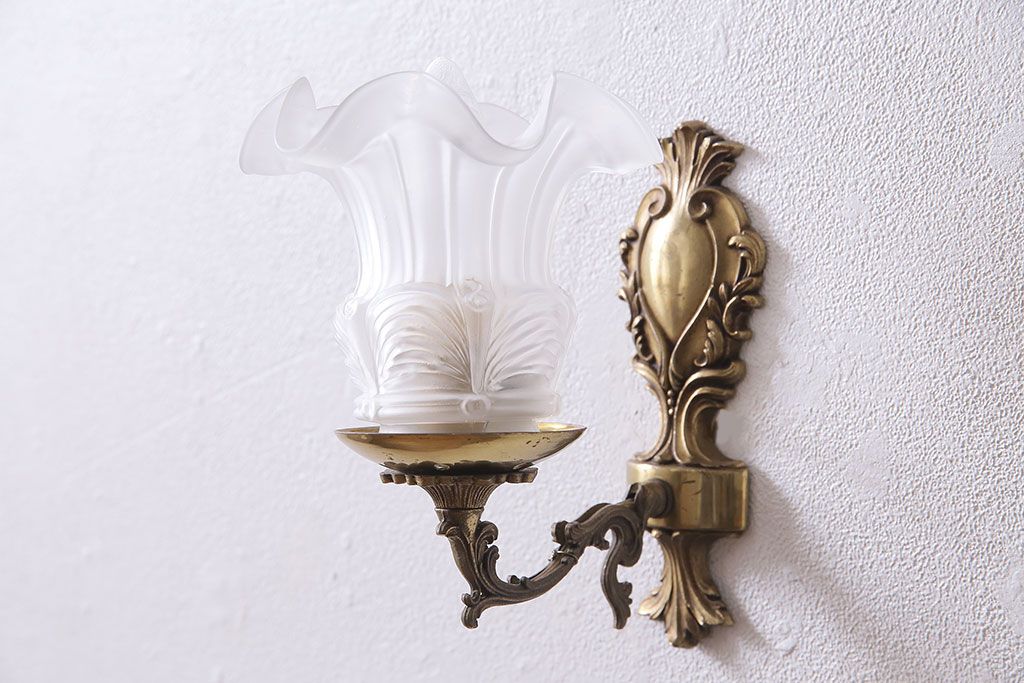 アンティーク照明 フランスアンティーク クラシックなお部屋にぴったりな真鍮製のウォールランプ(壁付け照明、壁掛け照明)(R-046196)