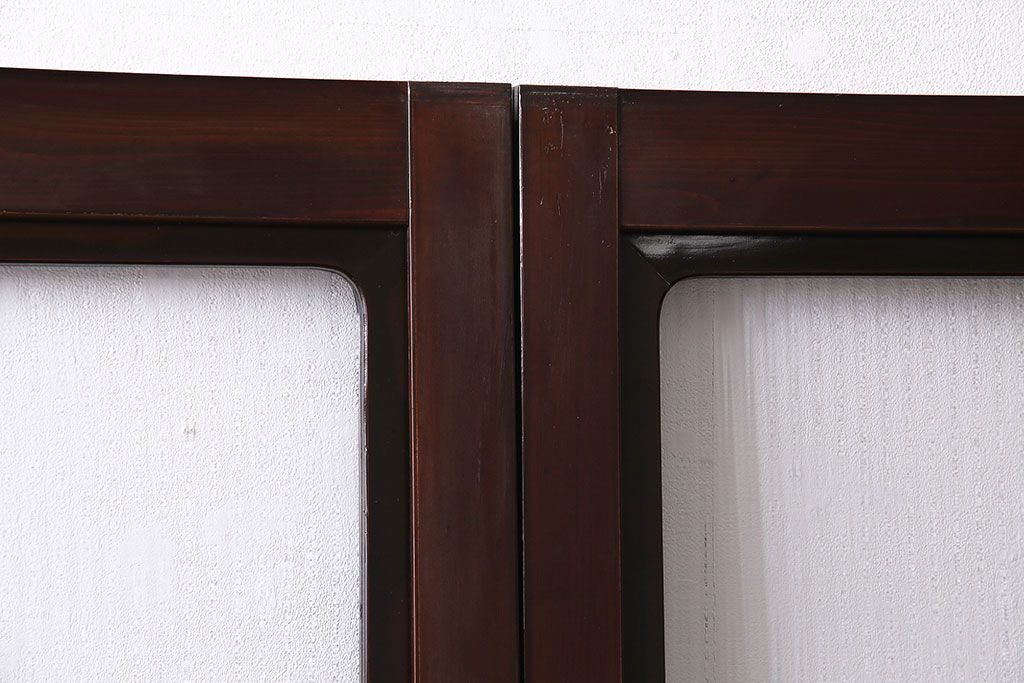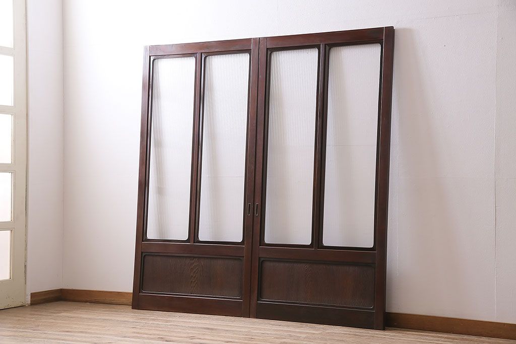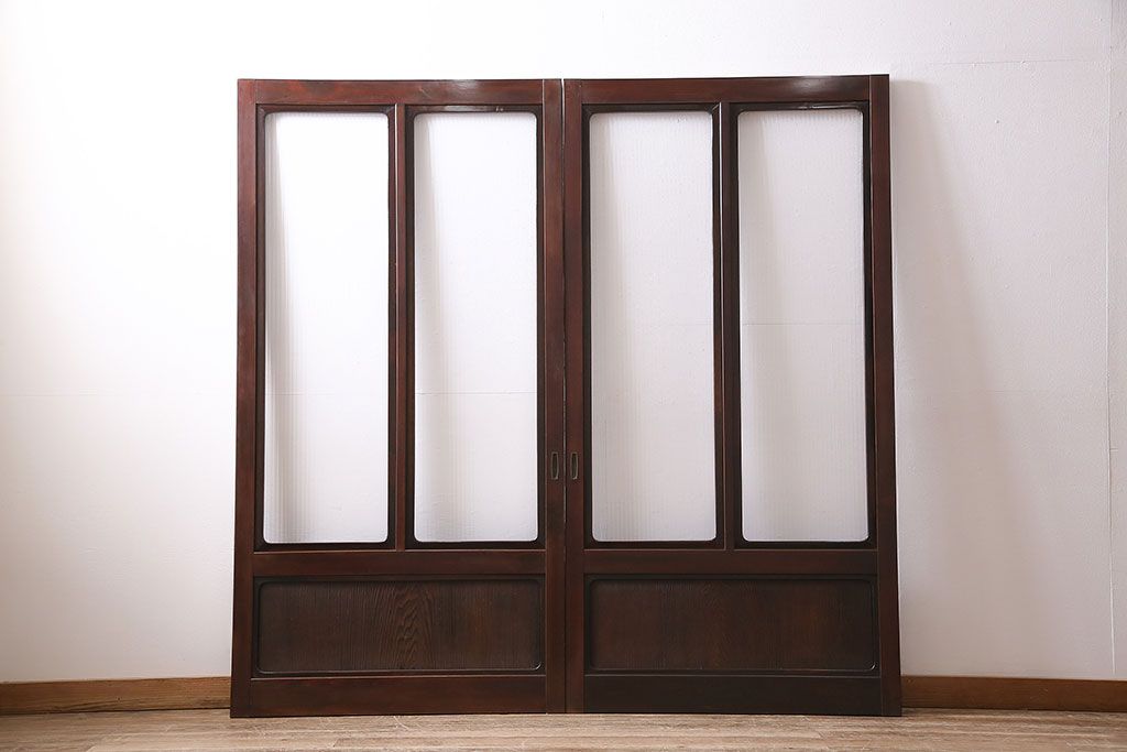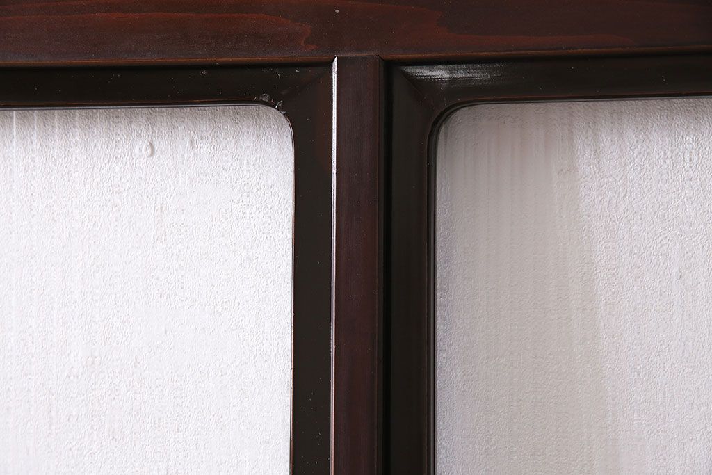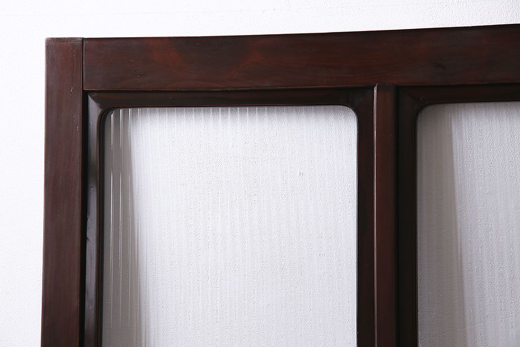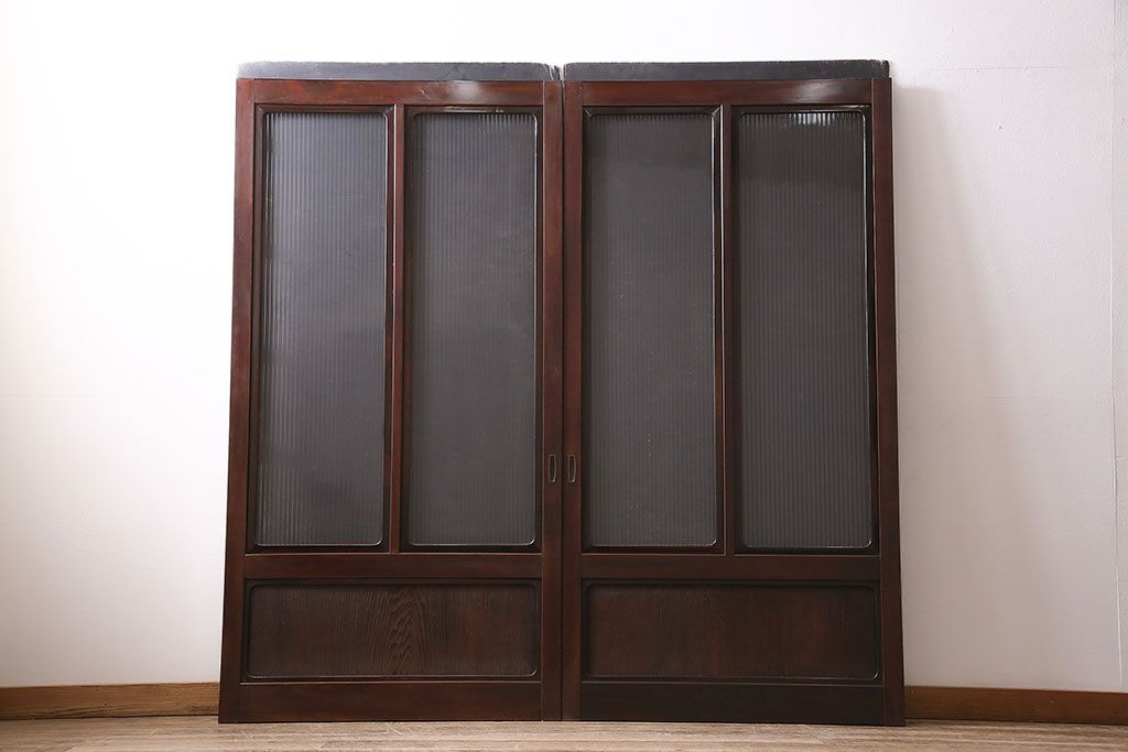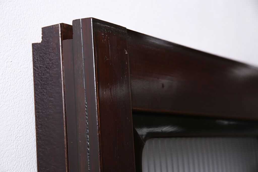 ドア・建具> ガラス戸 > アンティーク建具 昭和初期 モールガラス 総漆塗り 大正ロマンの香り漂うシックなガラス戸2枚セット(引き戸)(R-046154)