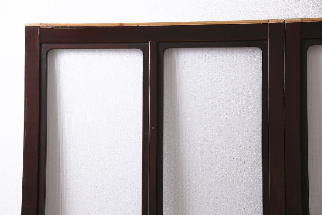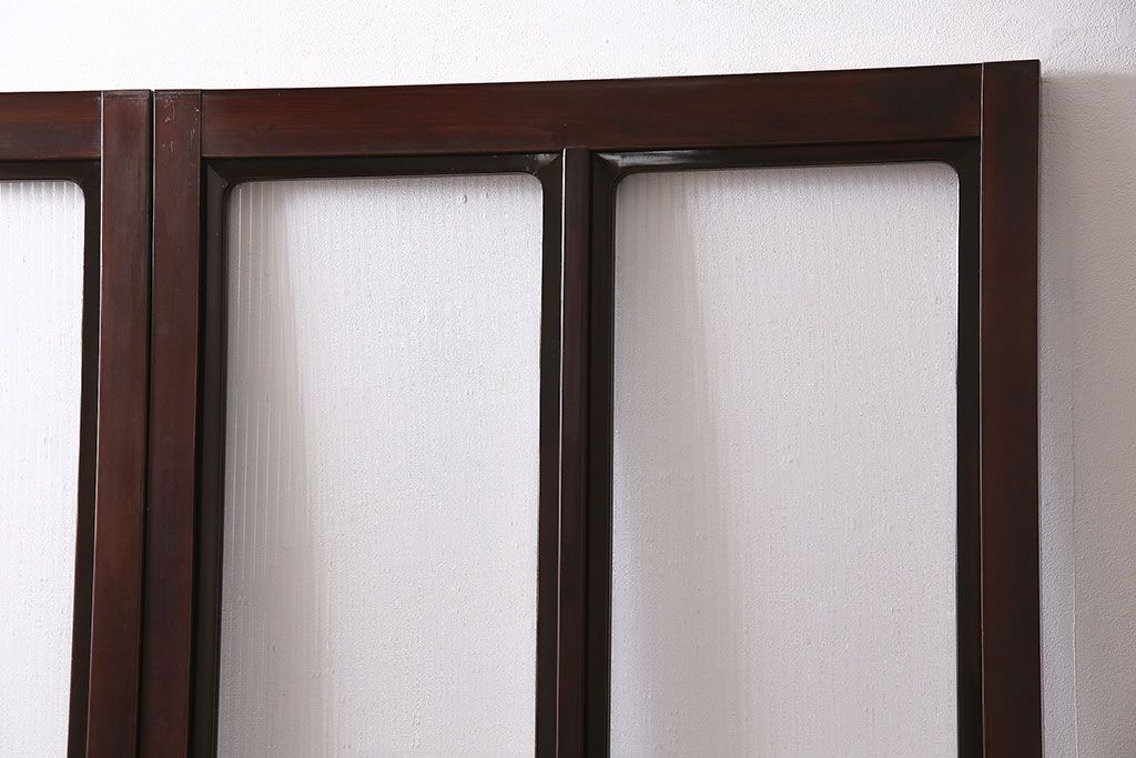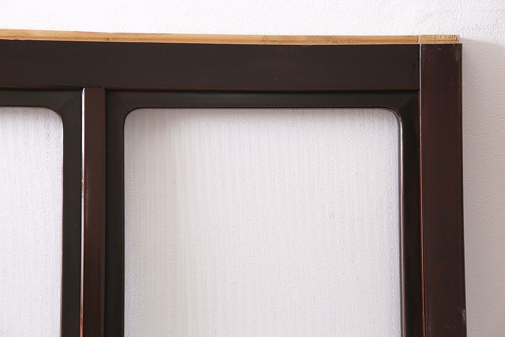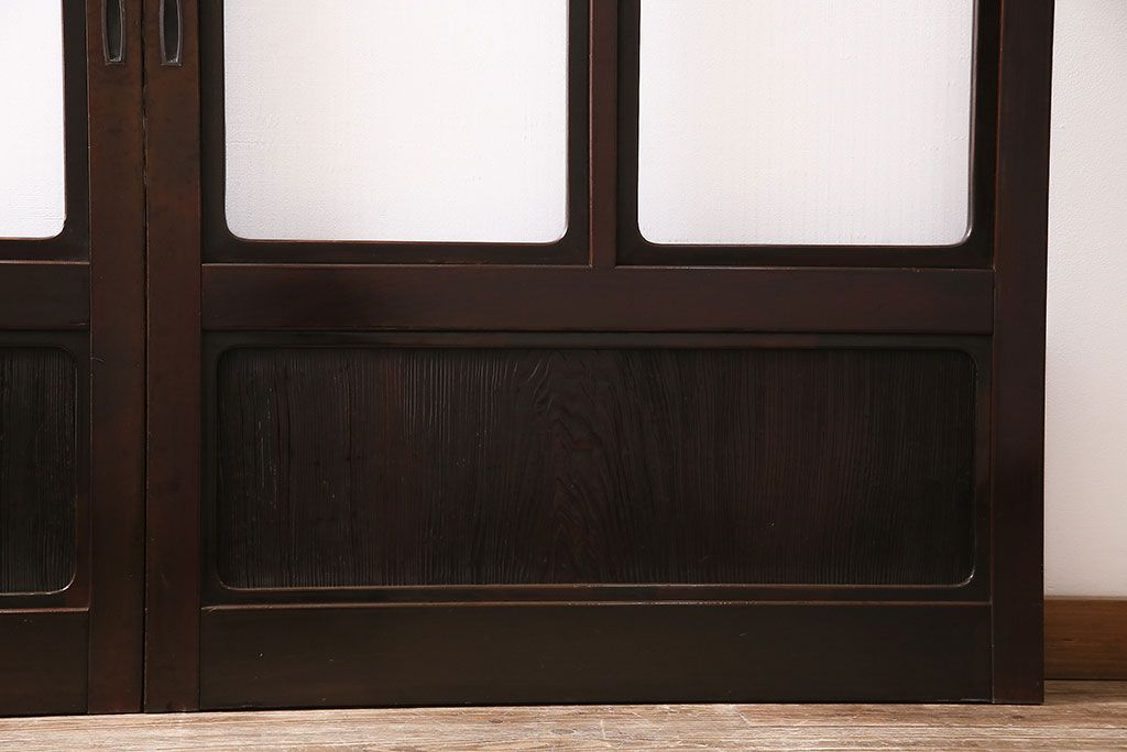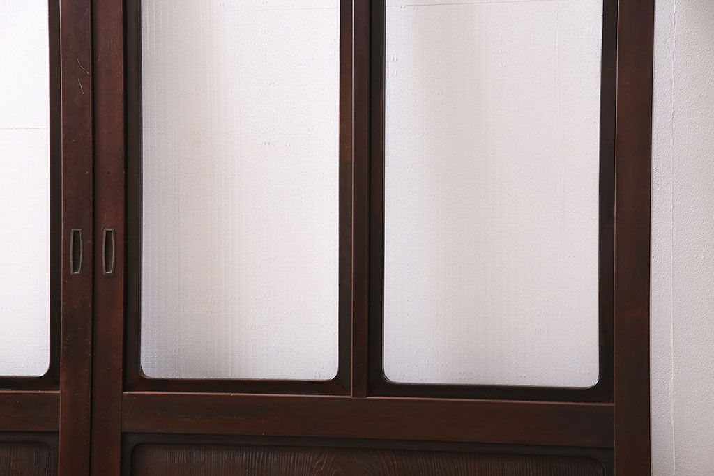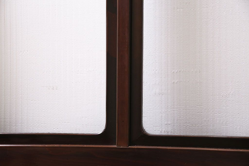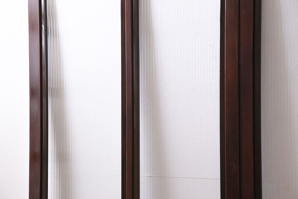 ドア・建具> ガラス戸 > アンティーク建具 昭和初期 モールガラス 総漆塗り 大正ロマンの香り漂うシックなガラス戸2枚セット(引き戸)(R-046154)