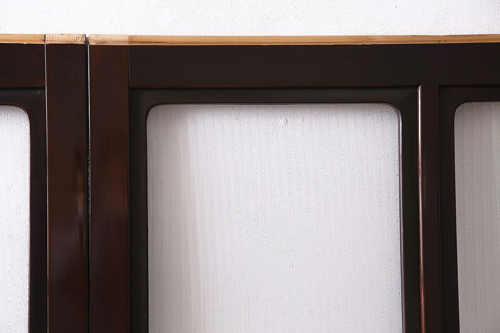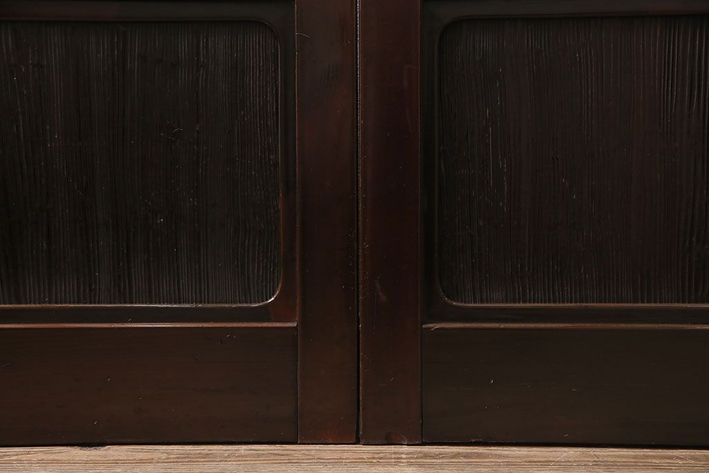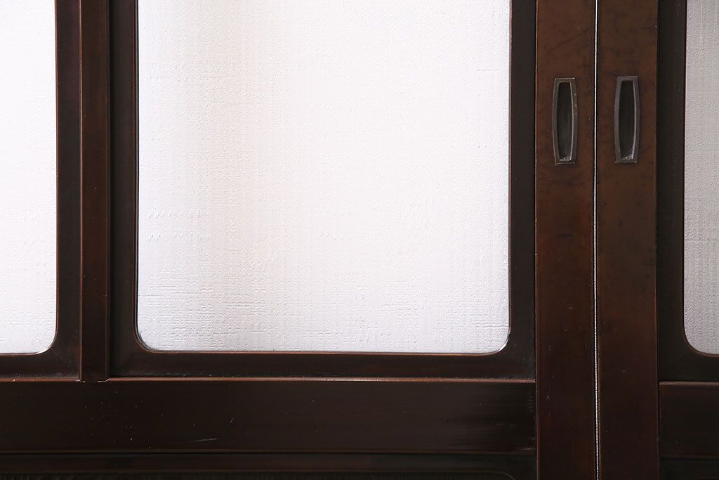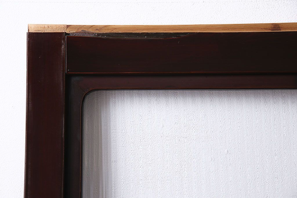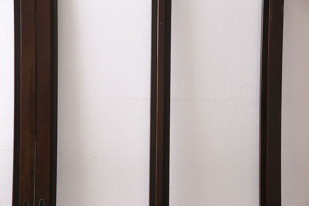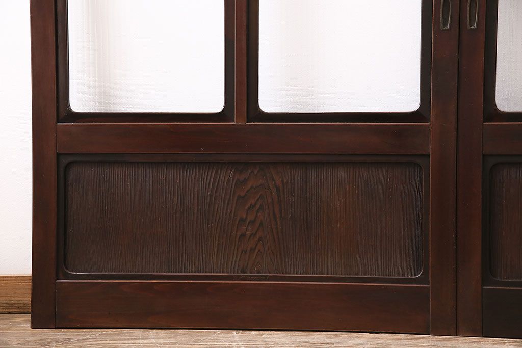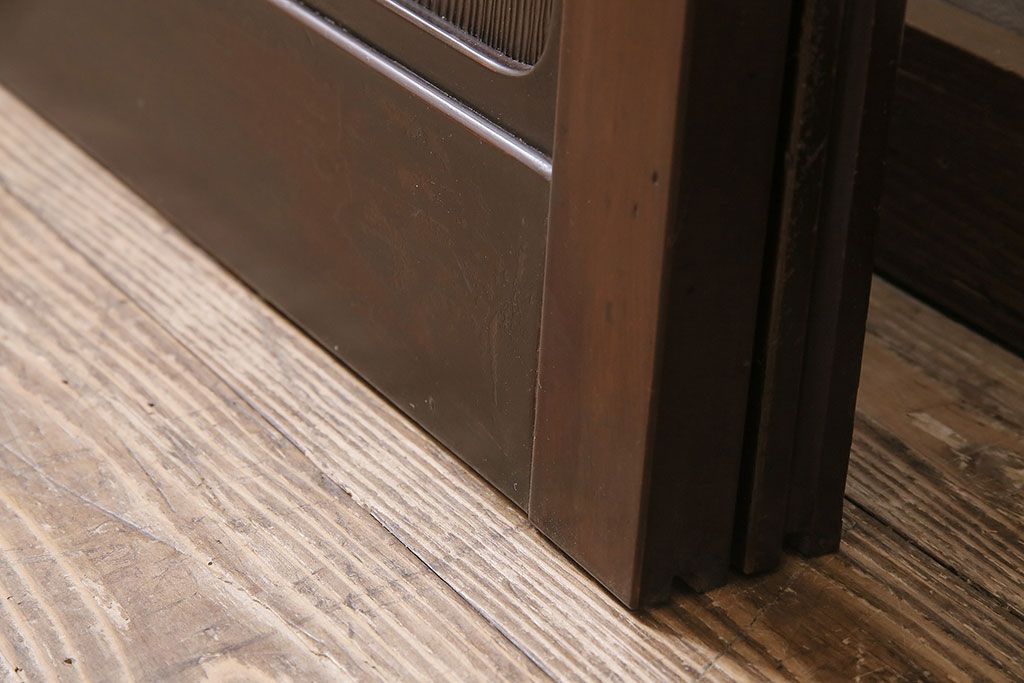 ドア・建具> ガラス戸 > アンティーク建具 昭和初期 モールガラス 総漆塗り 大正ロマンの香り漂うシックなガラス戸2枚セット(引き戸)(R-046154)