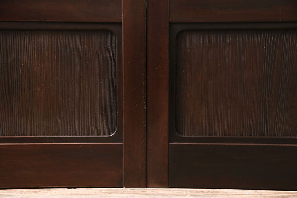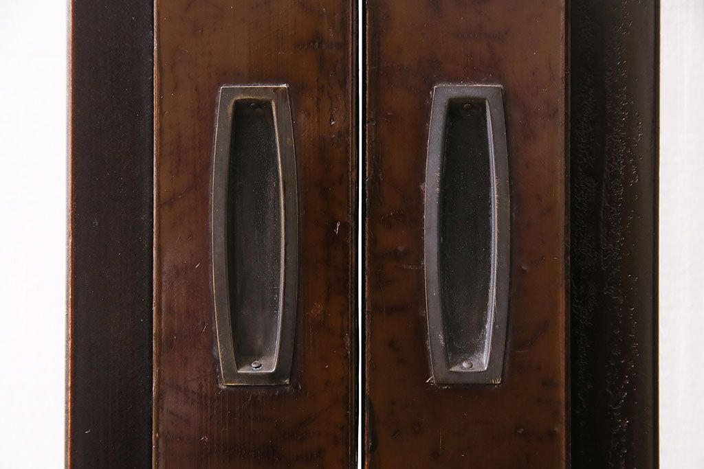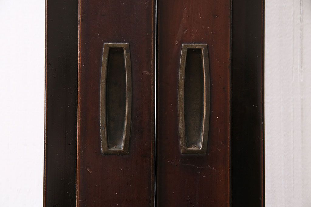 ドア・建具> 引き戸 > アンティーク建具 昭和初期 モールガラス 総漆塗り 大正ロマンの香り漂うシックなガラス戸2枚セット(引き戸)(R-046154)