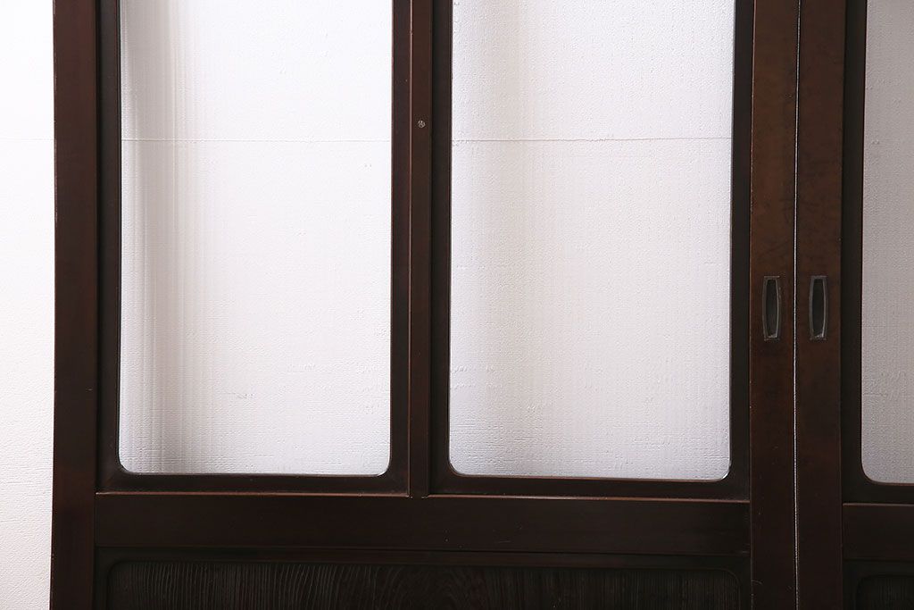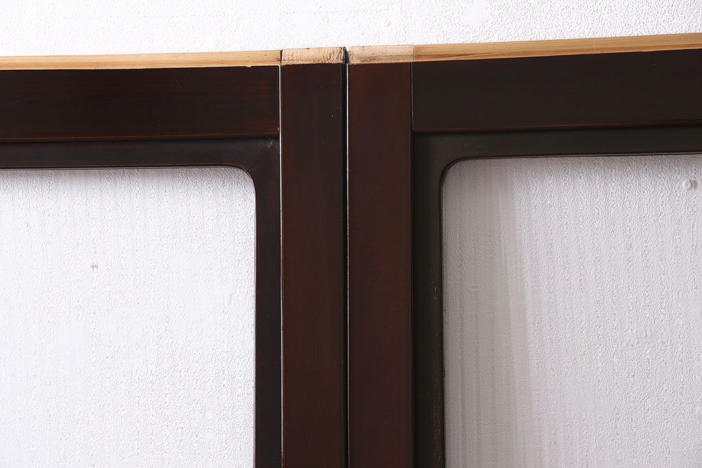 アンティーク建具 昭和初期 モールガラス 総漆塗り 大正ロマンの香り漂うシックなガラス戸2枚セット(引き戸)(R-046154)
