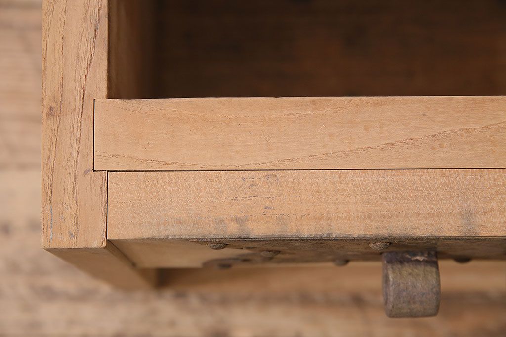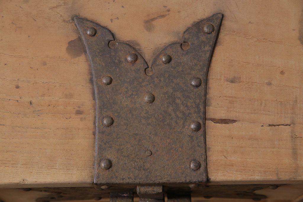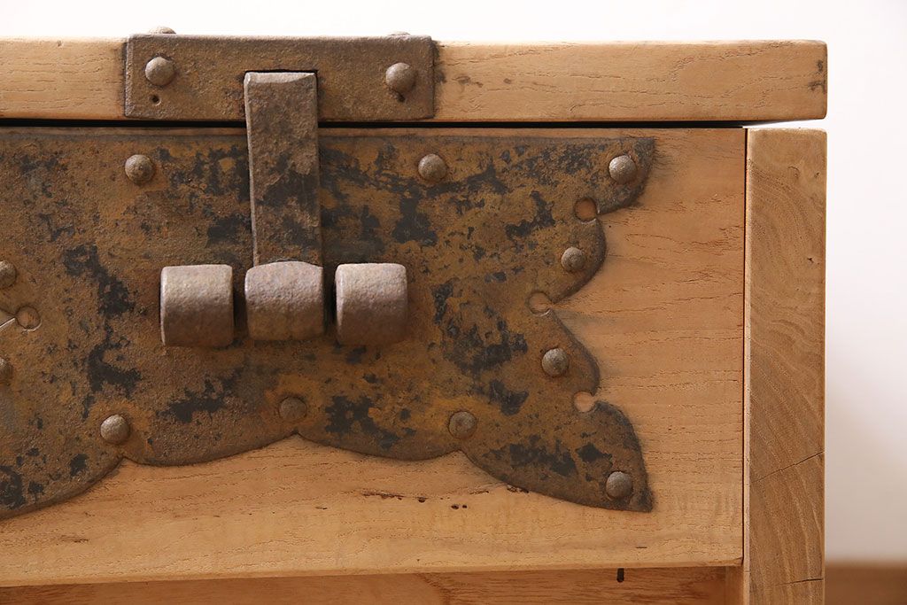 アンティーク雑貨 明治大正期 栗材 ストリップド(剥離) 錆びついた金具が味わい深い銭箱(銭函)(R-046230)です。