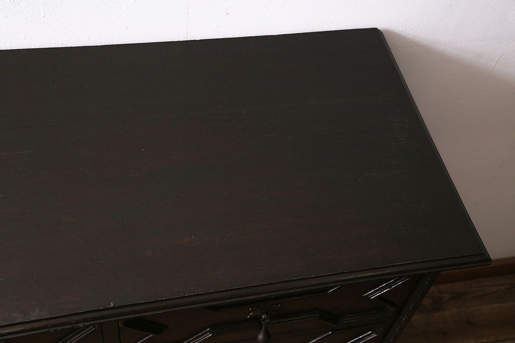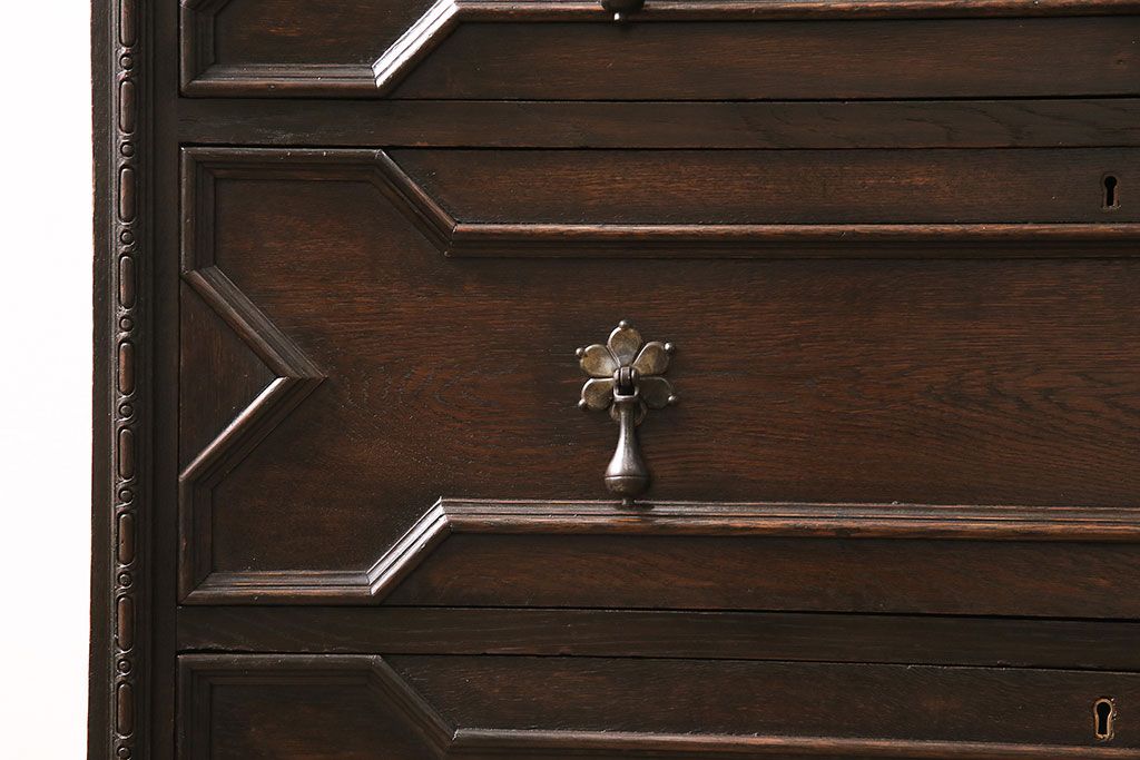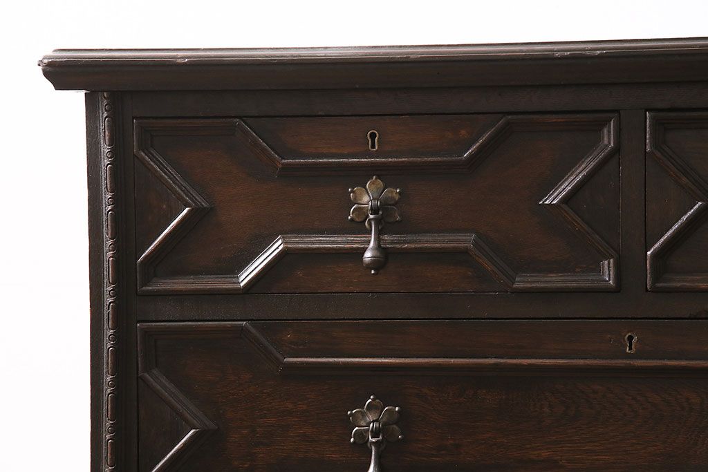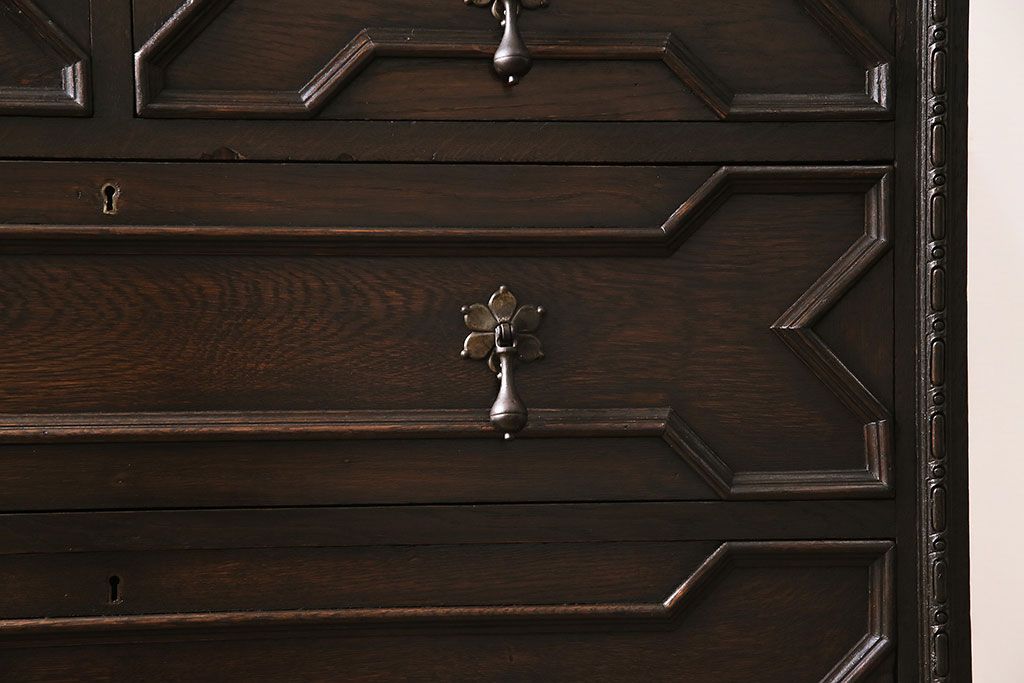 チェスト・引き出し > イギリスアンティーク オーク材 シックな中にも可憐なデザインが光るチェスト(引き出し、キャビネット、収納棚)(R-046247)