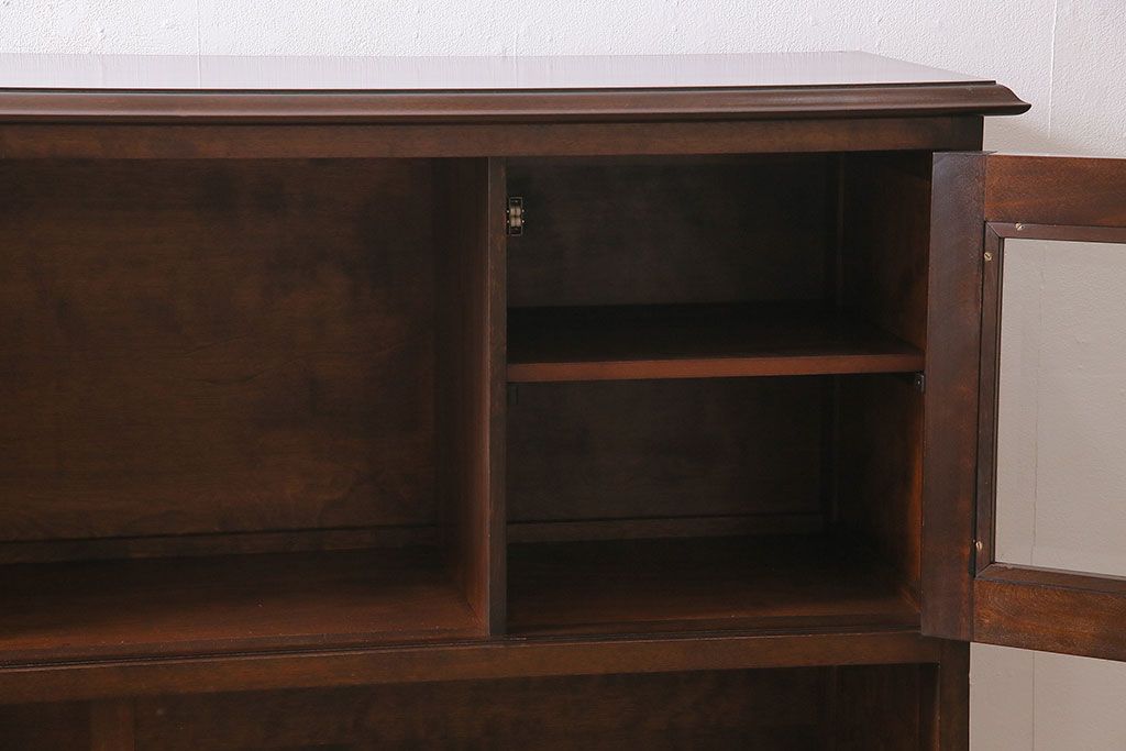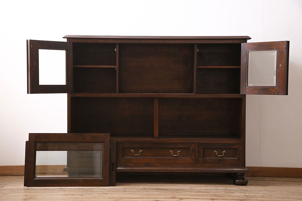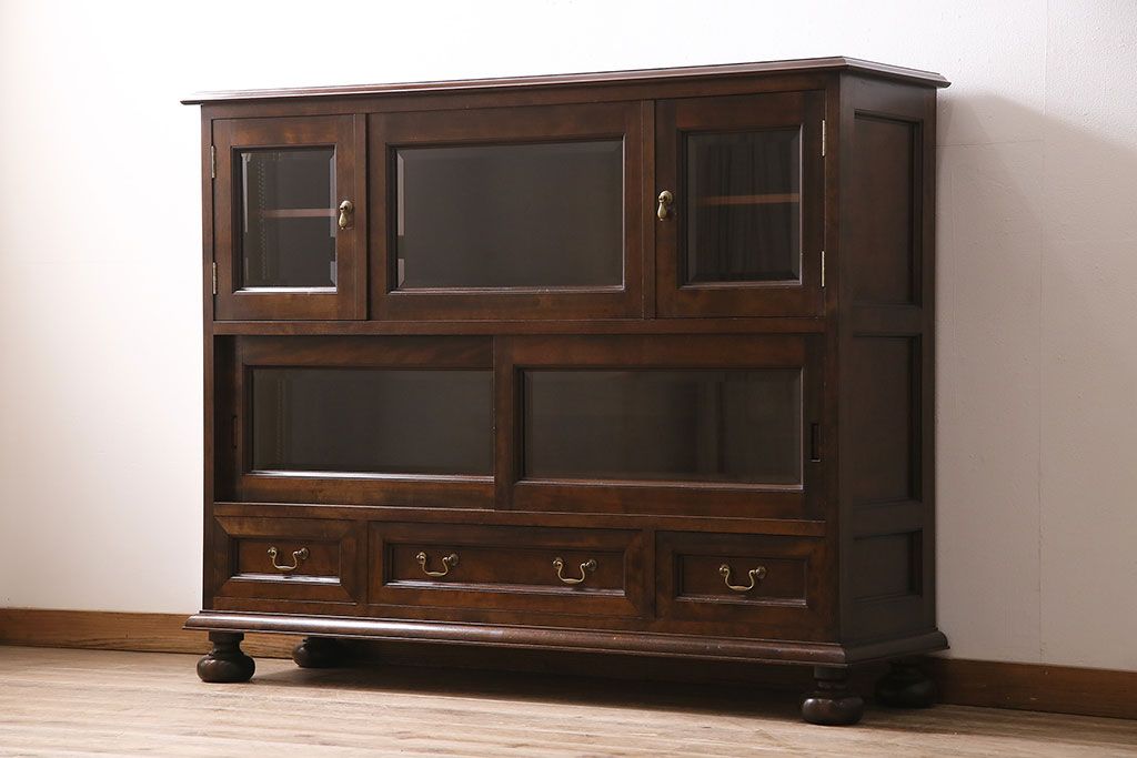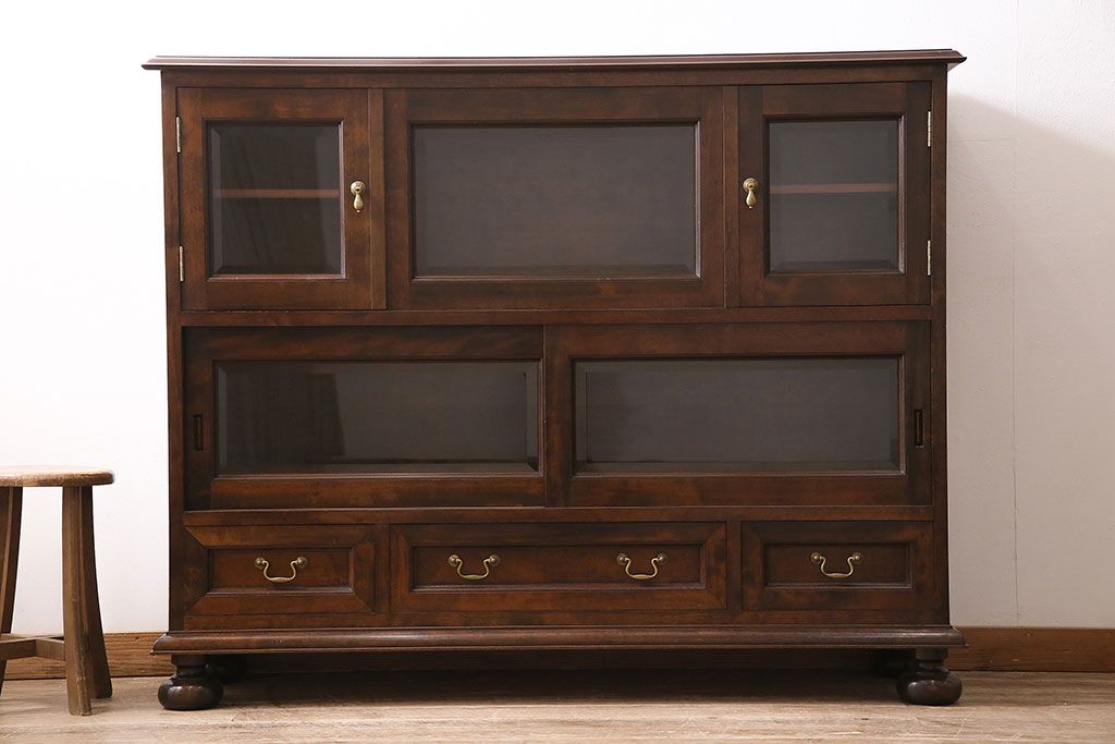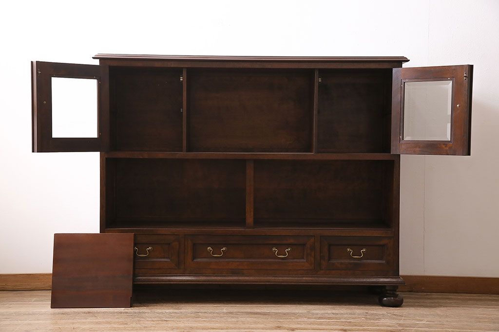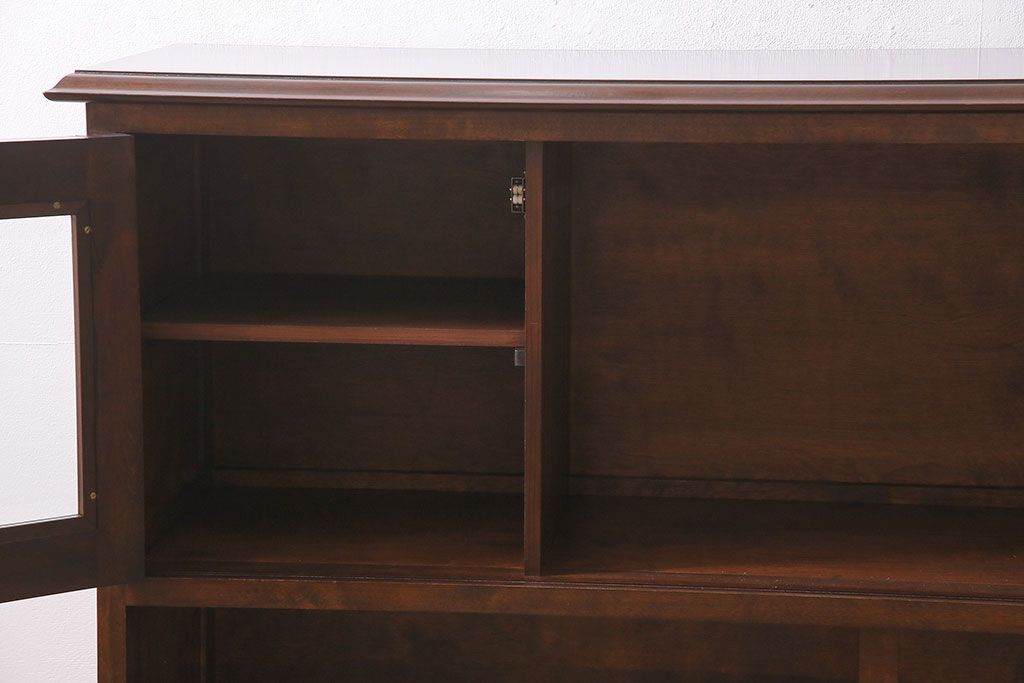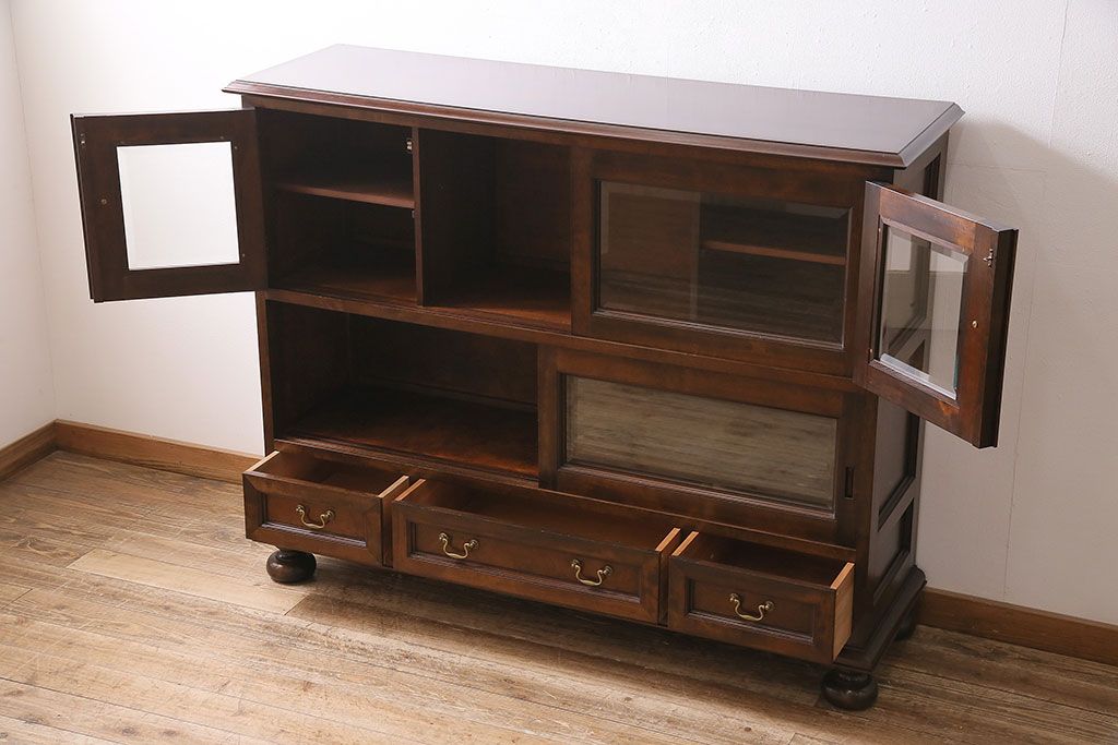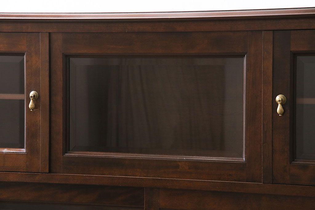 ラフジュ工房> キャビネット・戸棚> サイドキャビネット > 中古 ビンテージ 松本民芸家具 金色の取っ手が可愛らしいC型サイドボード(食器棚、キャビネット、収納棚)(定価約70万円)(R-046250)