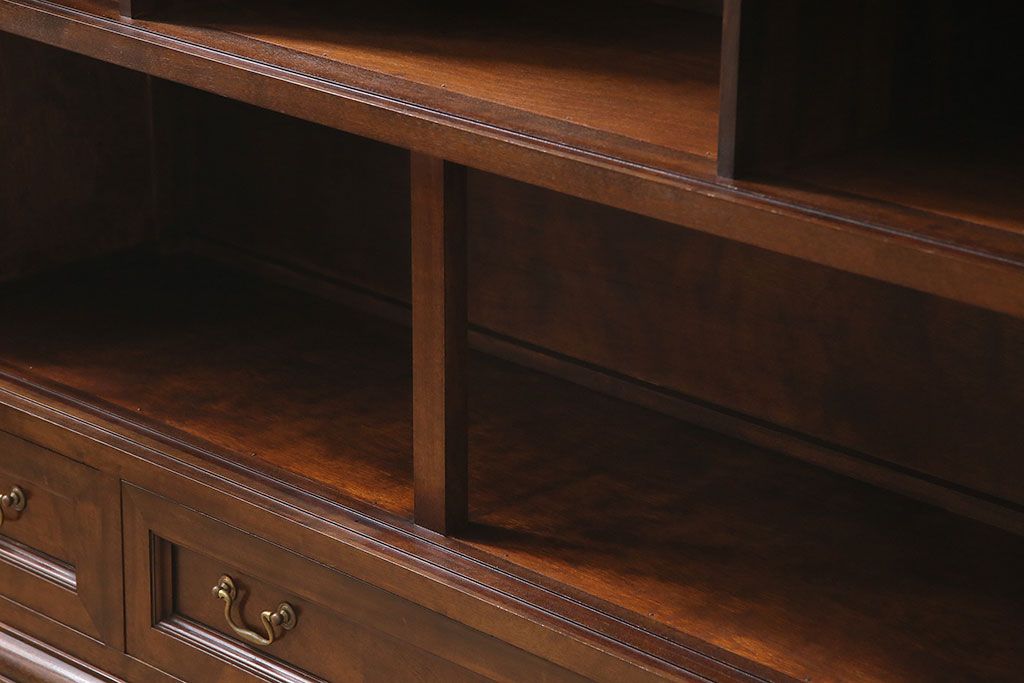ラフジュ工房> 民芸家具 > 中古 ビンテージ 松本民芸家具 金色の取っ手が可愛らしいC型サイドボード(食器棚、キャビネット、収納棚)(定価約70万円)(R-046250)