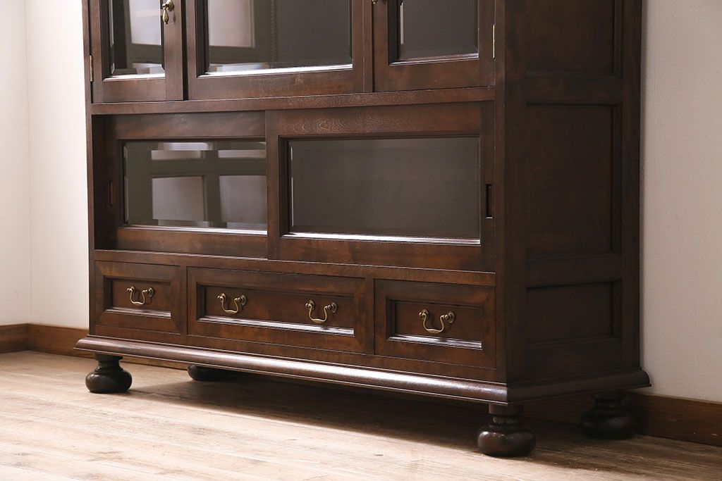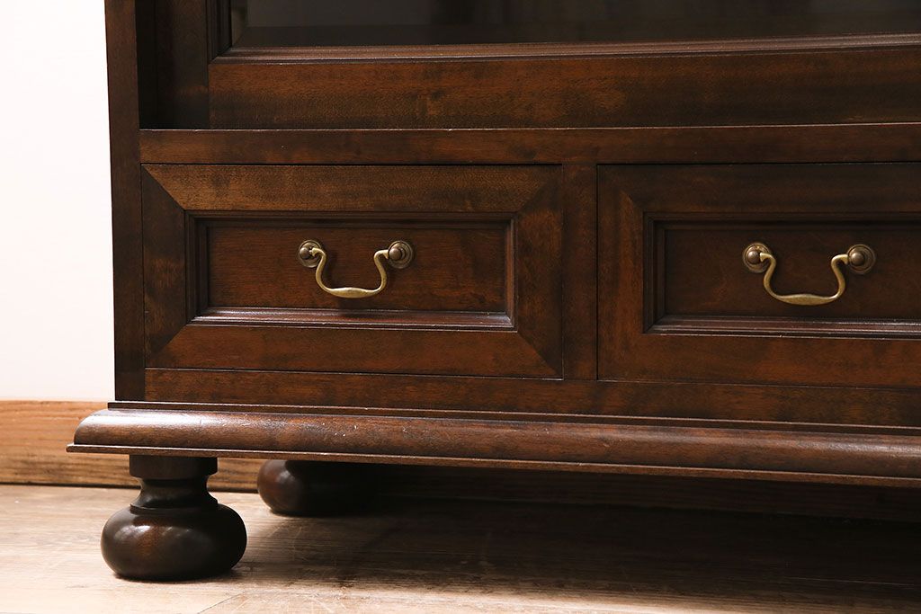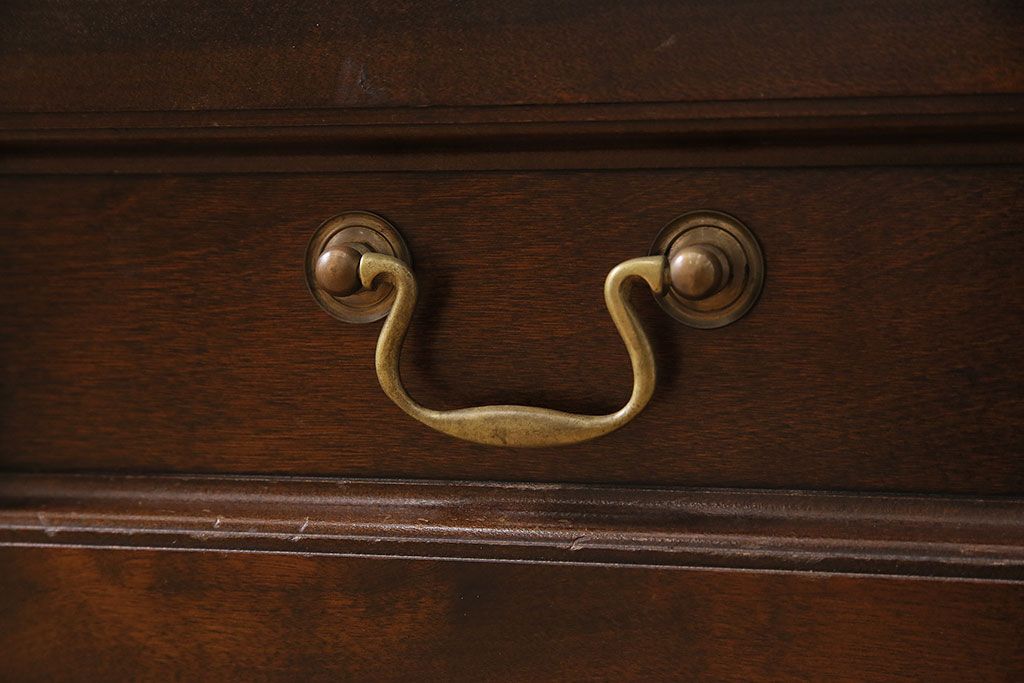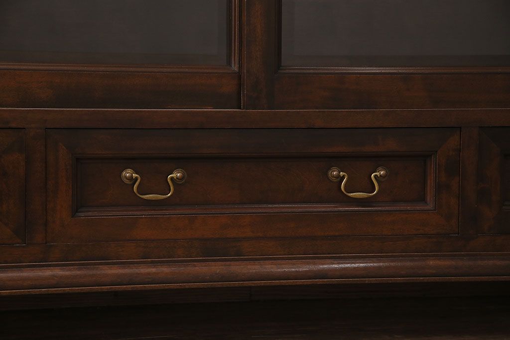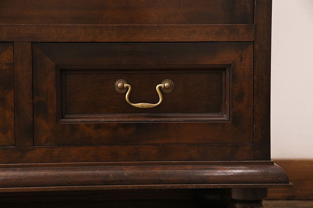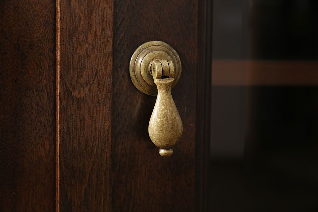 中古 ビンテージ 松本民芸家具 金色の取っ手が可愛らしいC型サイドボード(食器棚、キャビネット、収納棚)(定価約70万円)(R-046250)