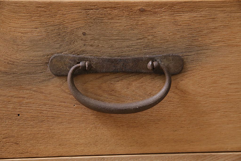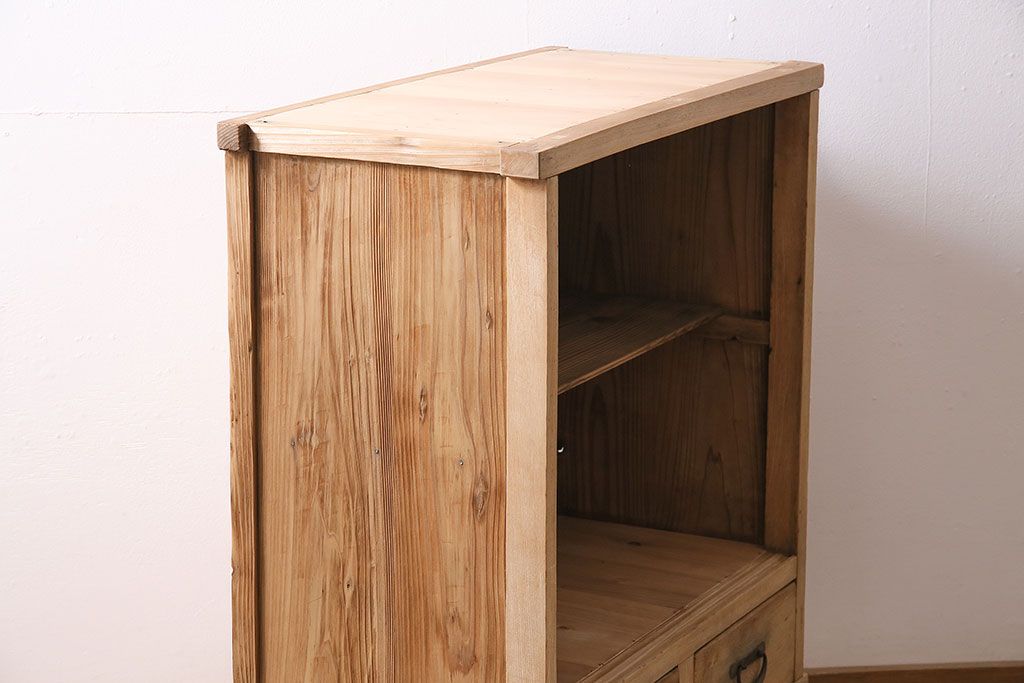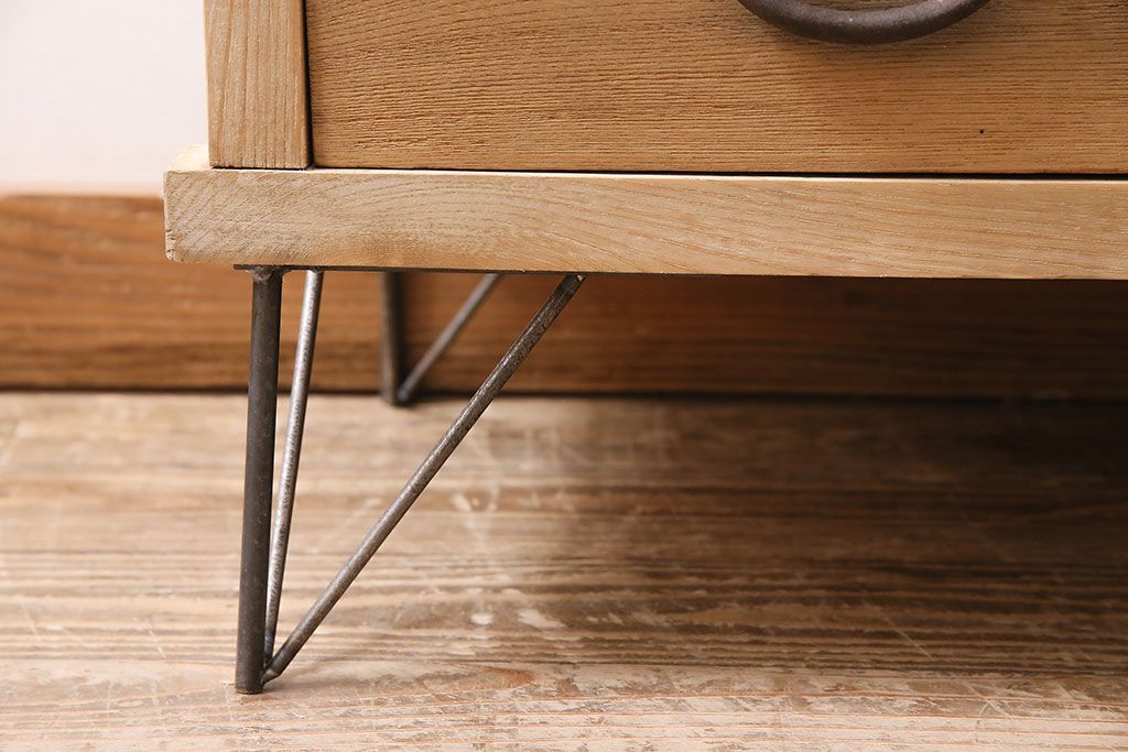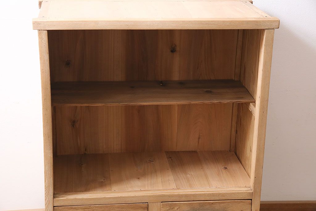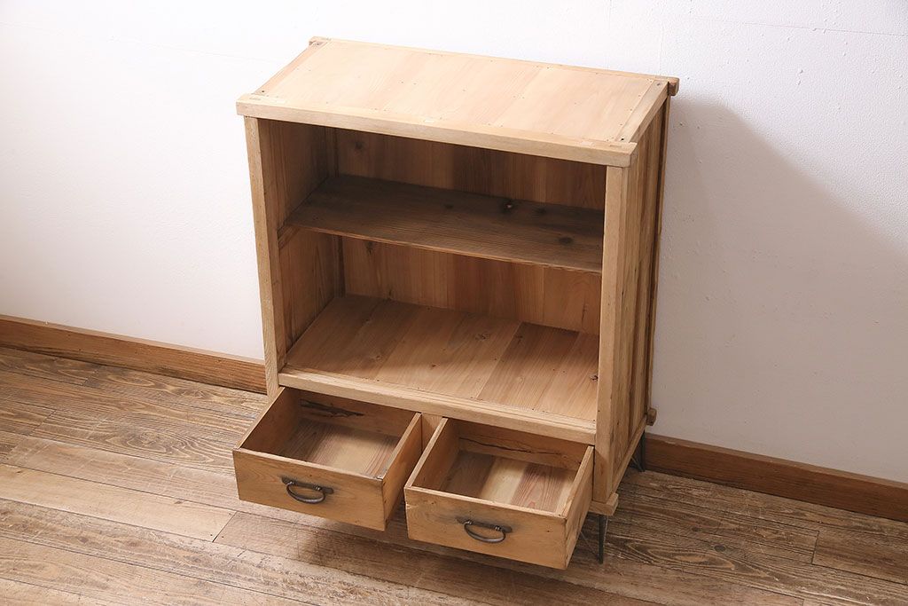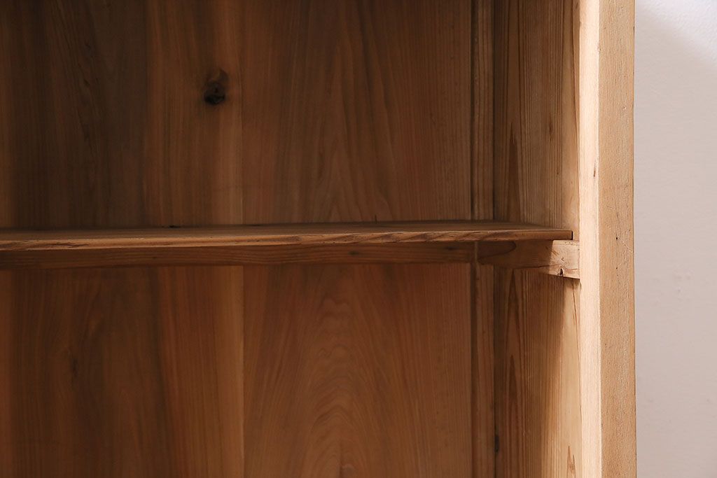 ストリップド(剥離)家具 > アンティーク家具 和製 昭和中期 ストリップド(剥離) ニレ材 素朴な木の質感が楽しめる鉄脚付き収納棚(戸棚、オープン棚)(R-046156)