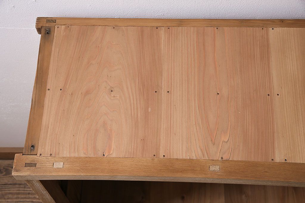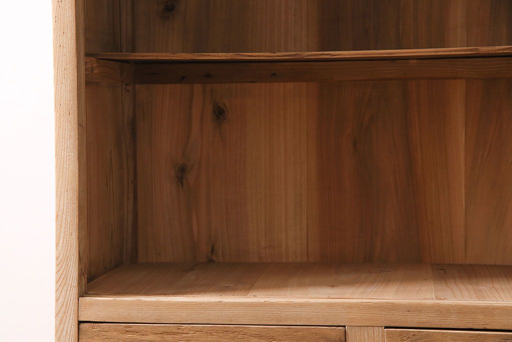 アンティーク家具 和製 昭和中期 ストリップド(剥離) ニレ材 素朴な木の質感が楽しめる鉄脚付き収納棚(戸棚、オープン棚)(R-046156)