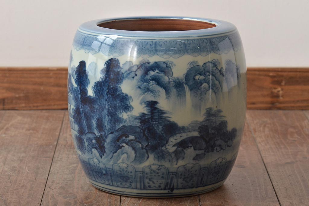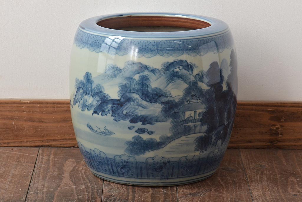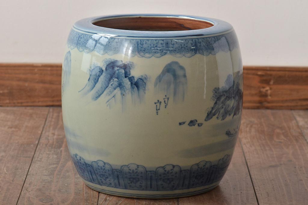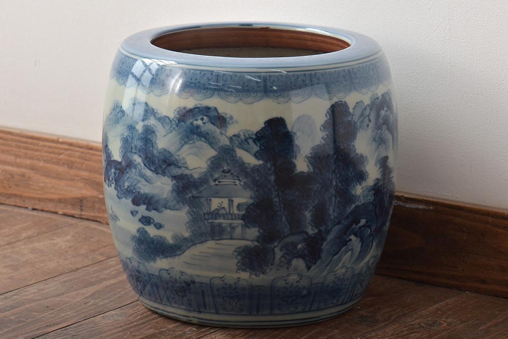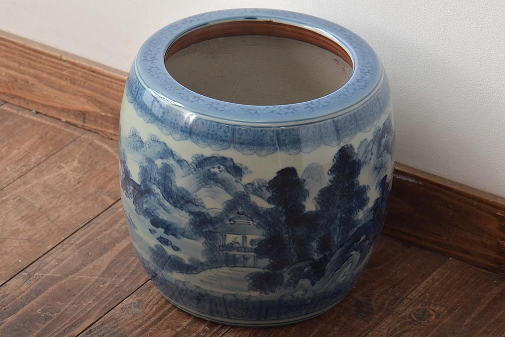 アンティーク雑貨 大正〜昭和初期 山水・風景の図 瀬戸火鉢(鉢カバー)(R-045997)