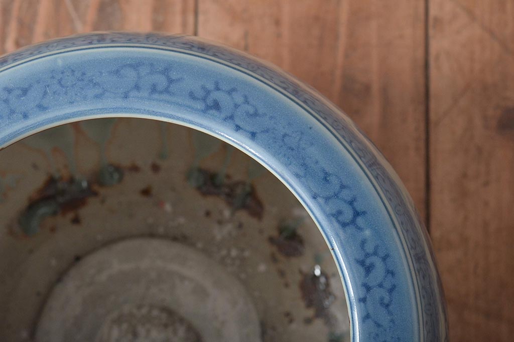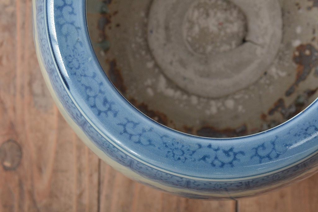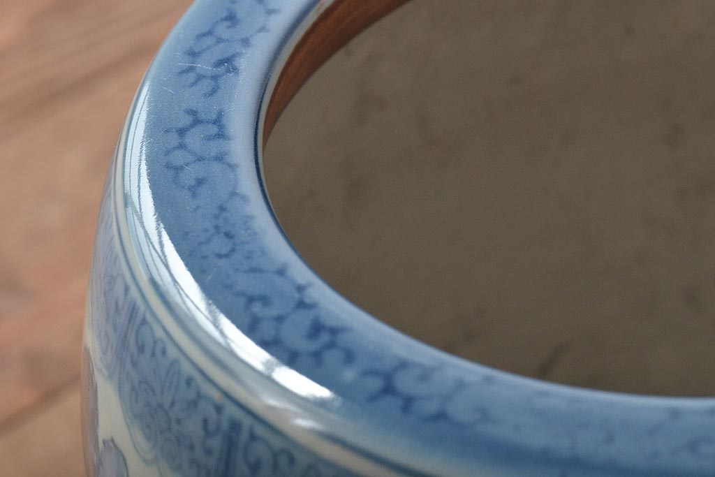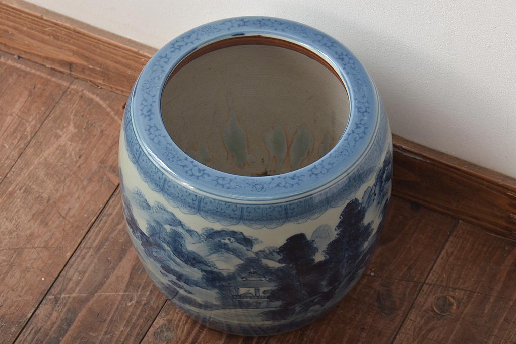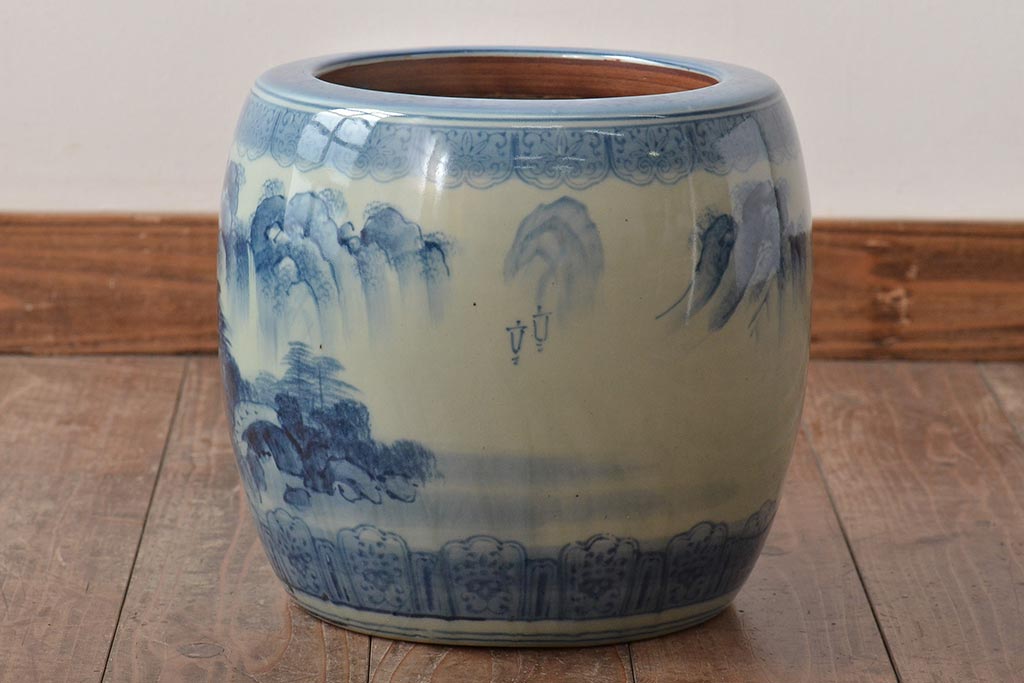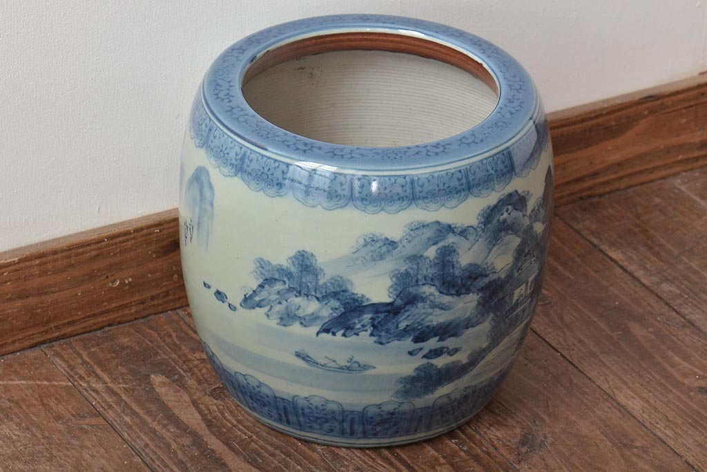 アンティーク雑貨 大正〜昭和初期 山水・風景の図 瀬戸火鉢(鉢カバー)(R-045997)
