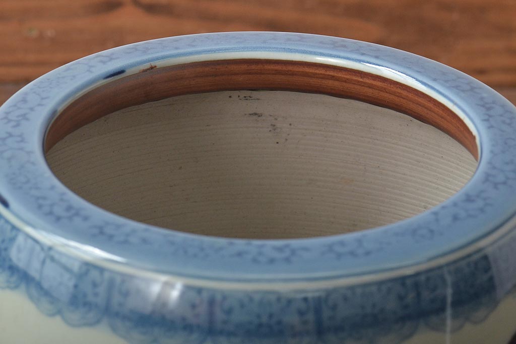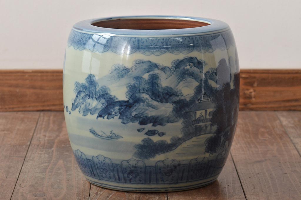 火鉢> 瀬戸火鉢 > アンティーク雑貨 大正〜昭和初期 山水・風景の図 瀬戸火鉢(鉢カバー)(R-045997)