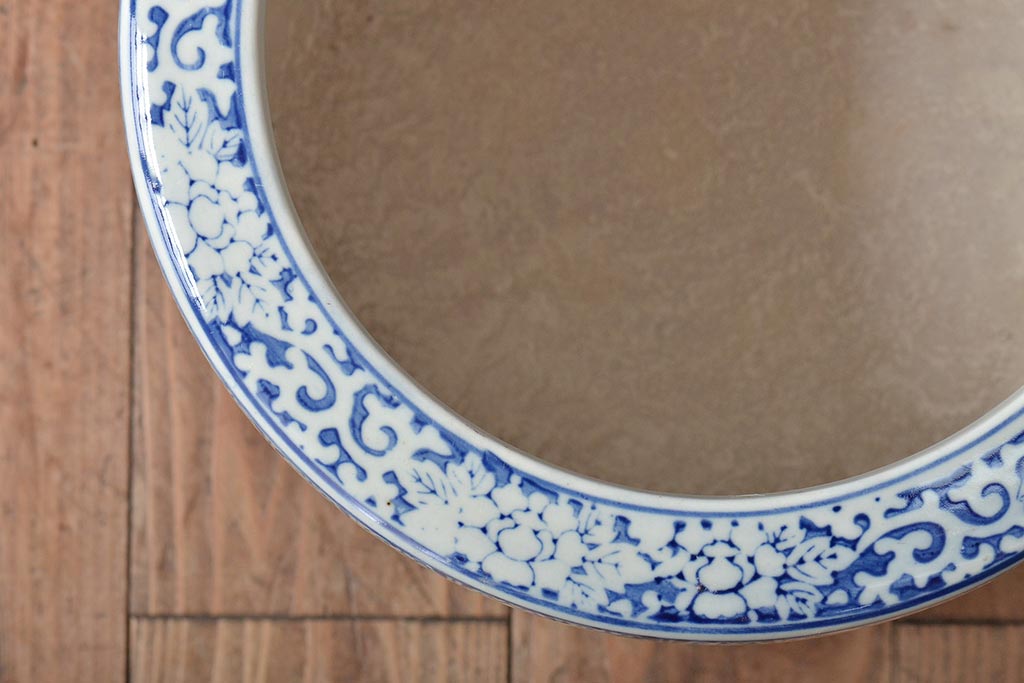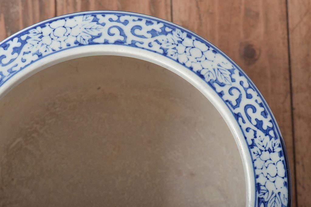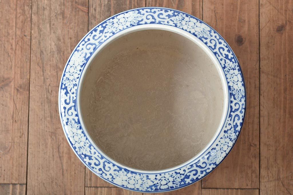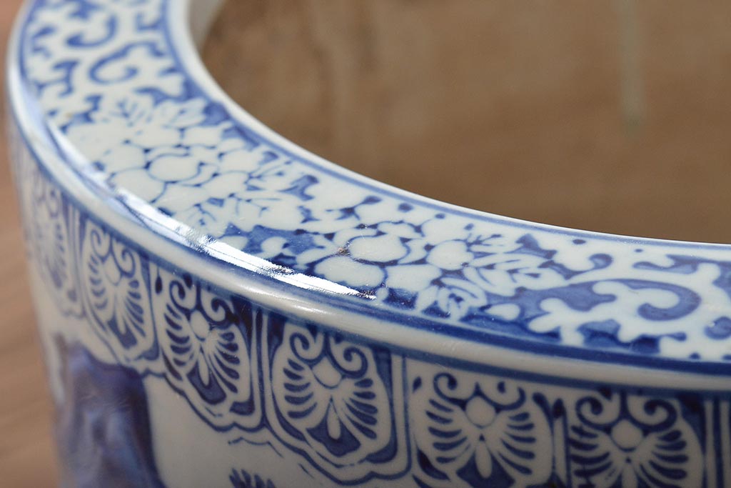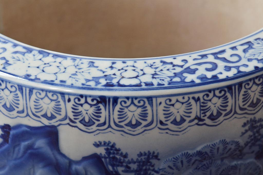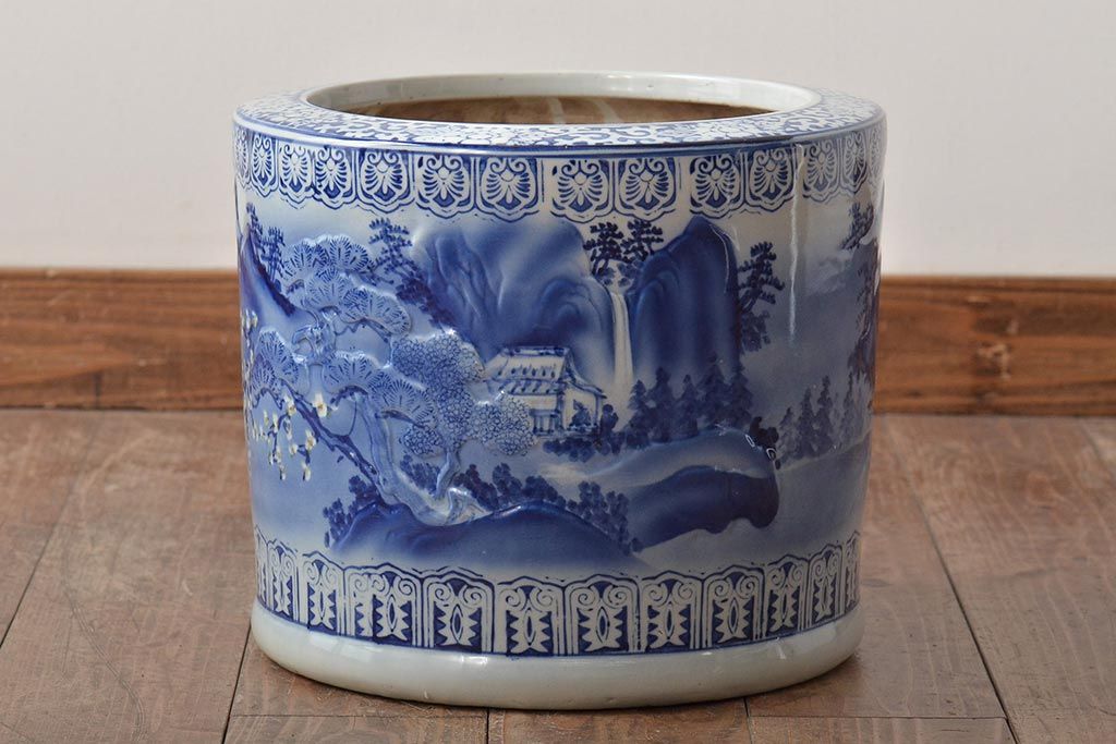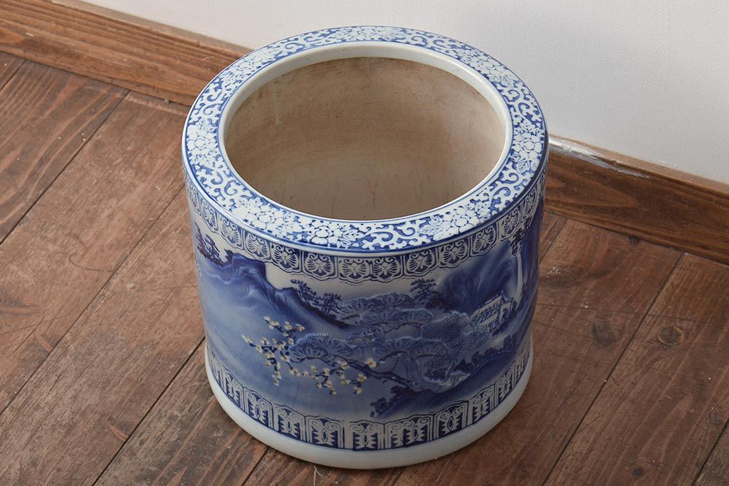 アンティーク雑貨 大正〜昭和初期 松・花・風景の図 瀬戸火鉢(鉢カバー)(R-045998)