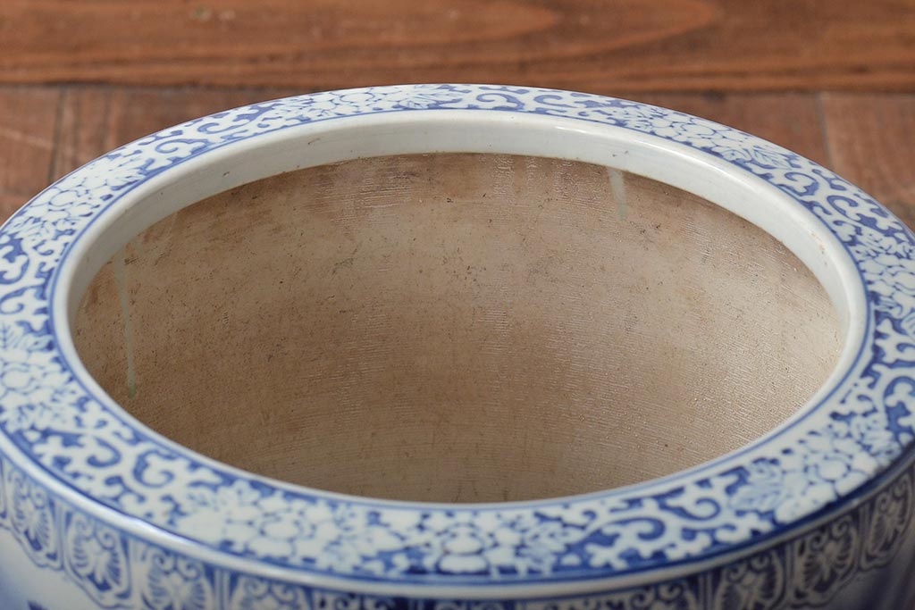 アンティーク雑貨 大正〜昭和初期 松・花・風景の図 瀬戸火鉢(鉢カバー)(R-045998)です。