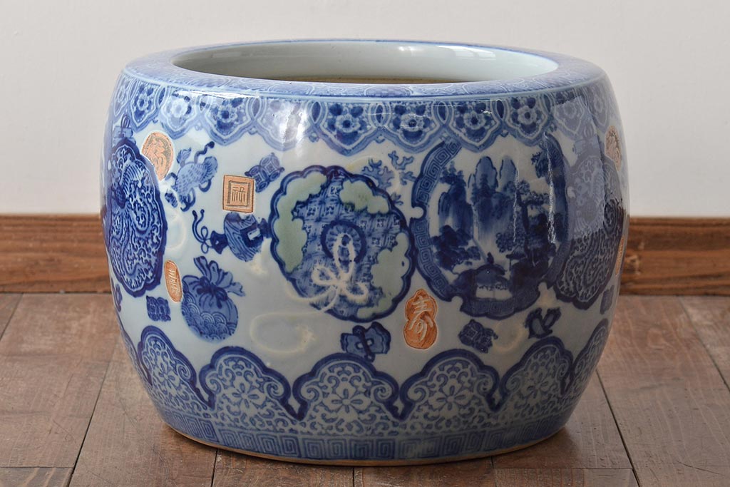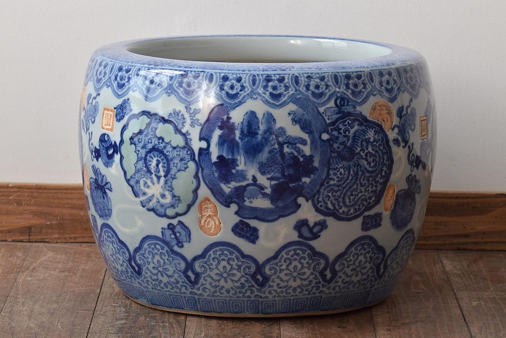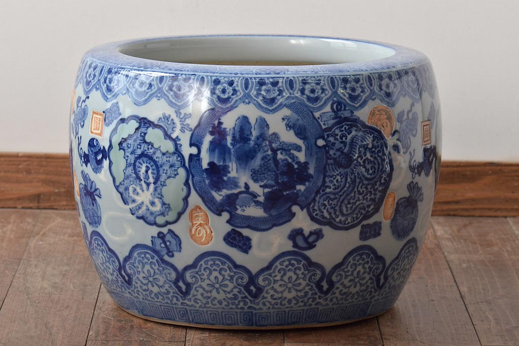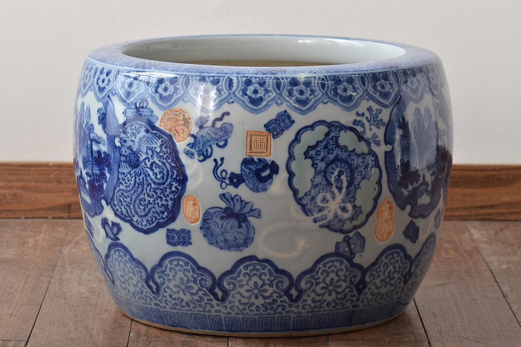 アンティーク雑貨 大正〜昭和初期 宝尽しの図 瀬戸火鉢(鉢カバー)(R-045996)