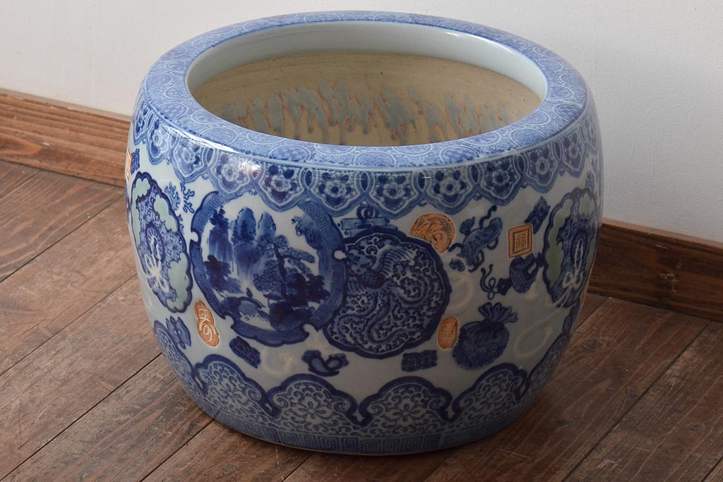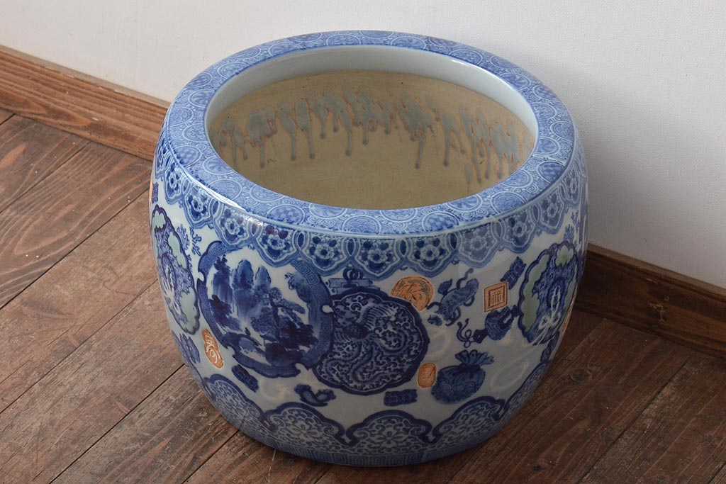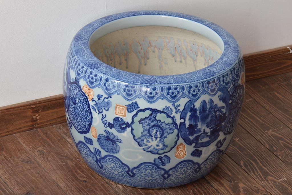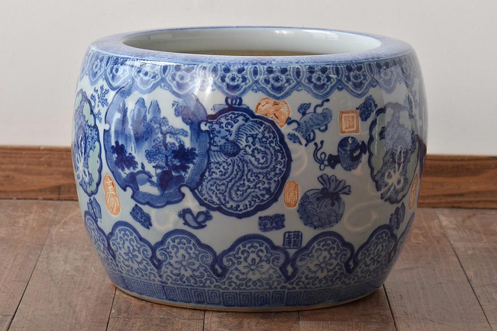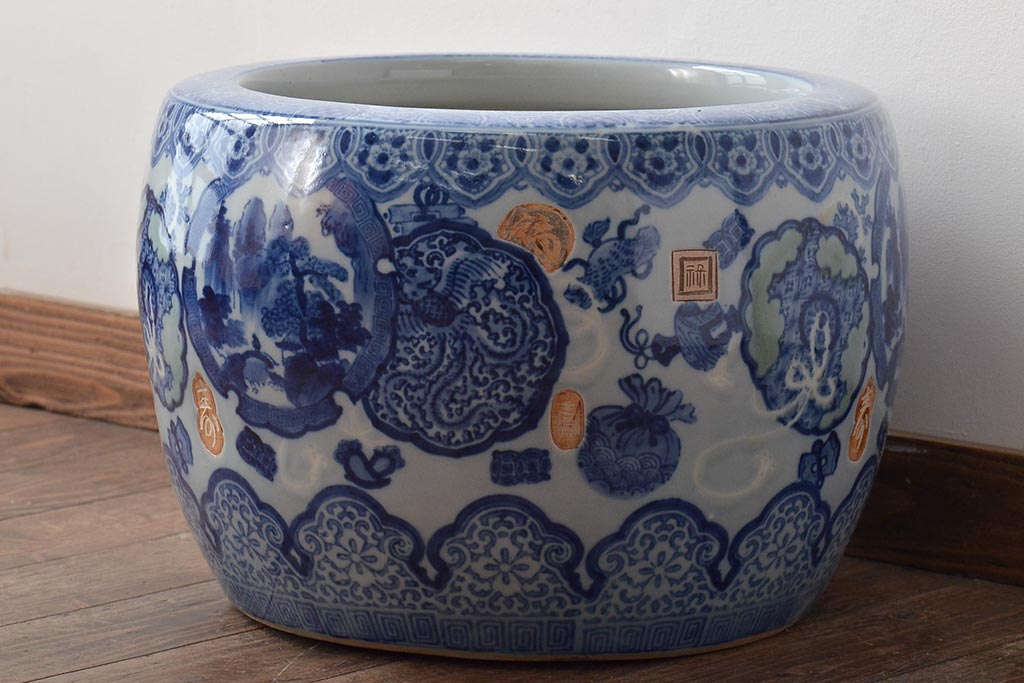 アンティーク雑貨 大正〜昭和初期 宝尽しの図 瀬戸火鉢(鉢カバー)(R-045996)
