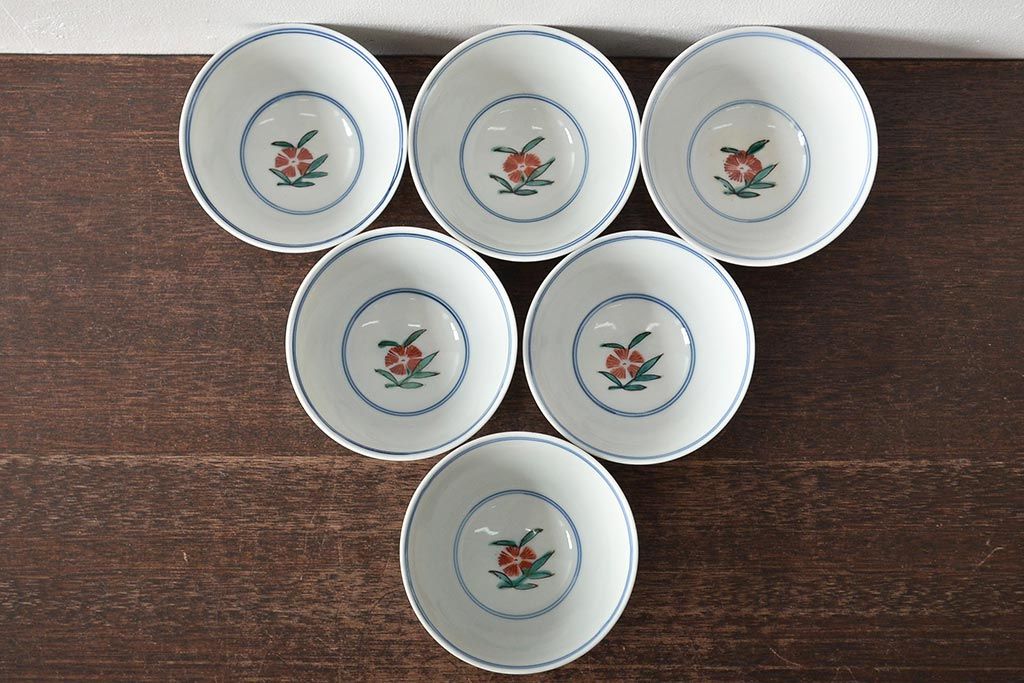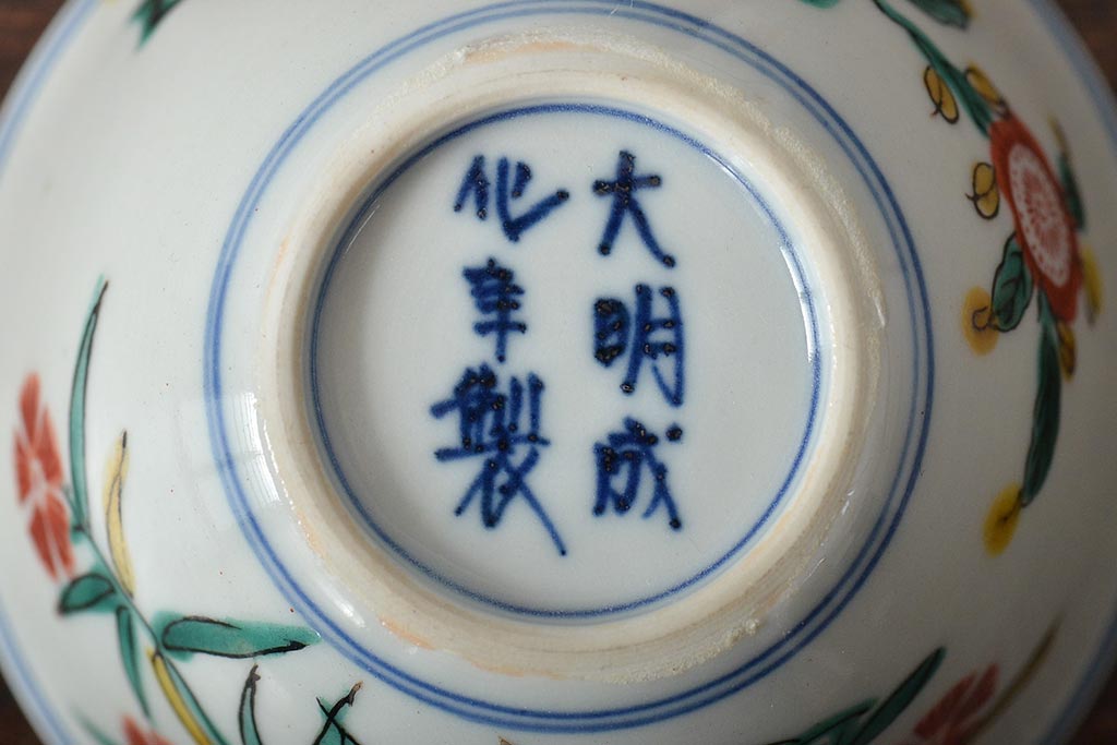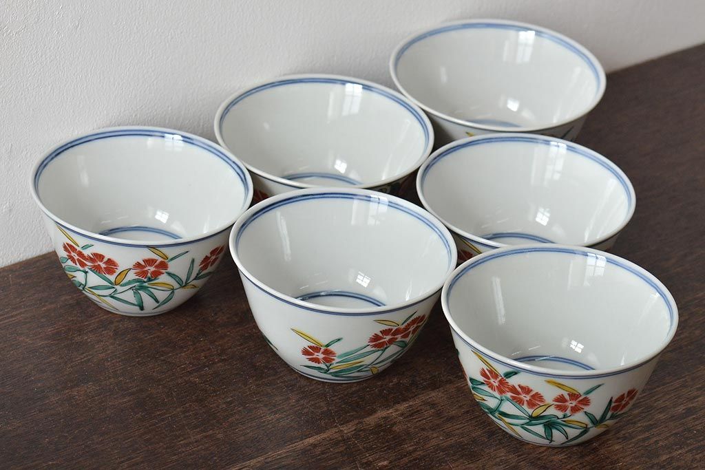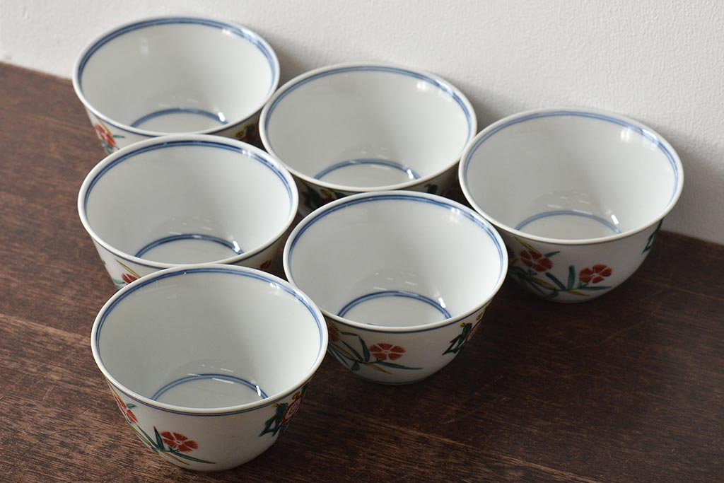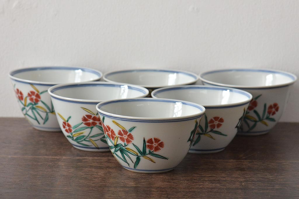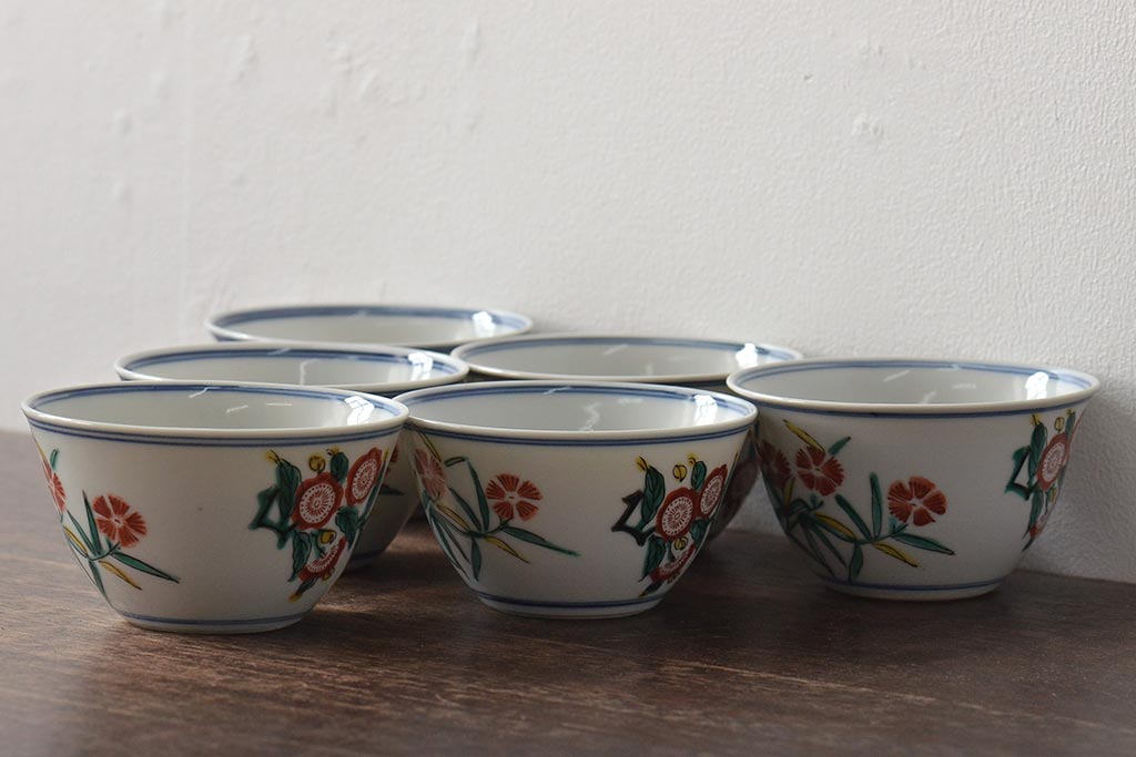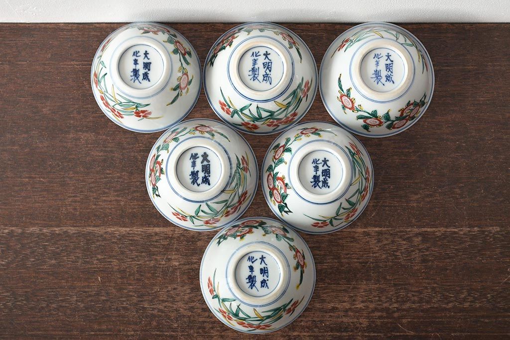ラフジュ工房> 和食器・茶道具 > 大明成化年製 花文色絵 茶碗6客セット(湯呑み、茶器、和食器)(R-046050)