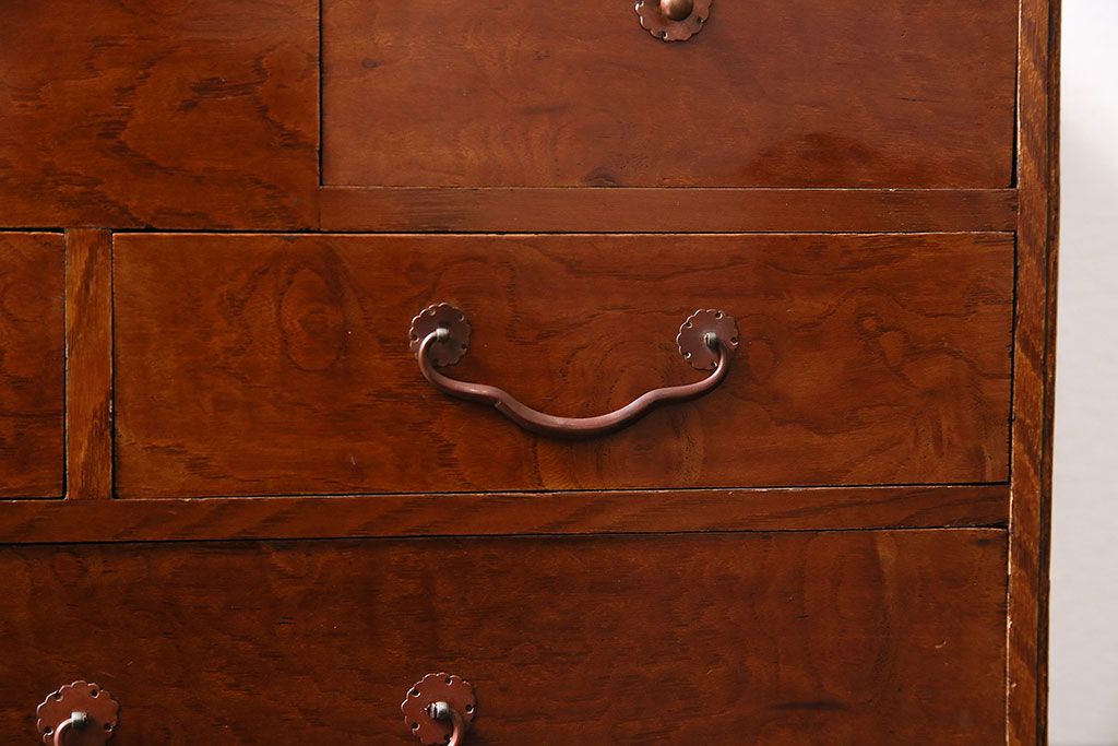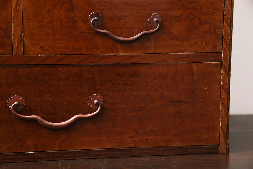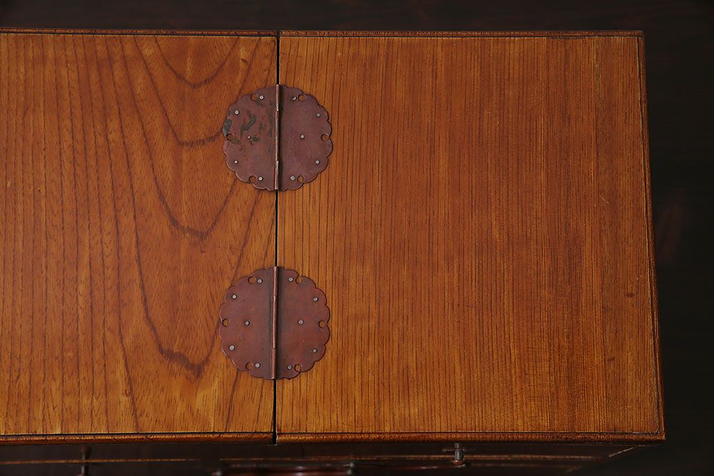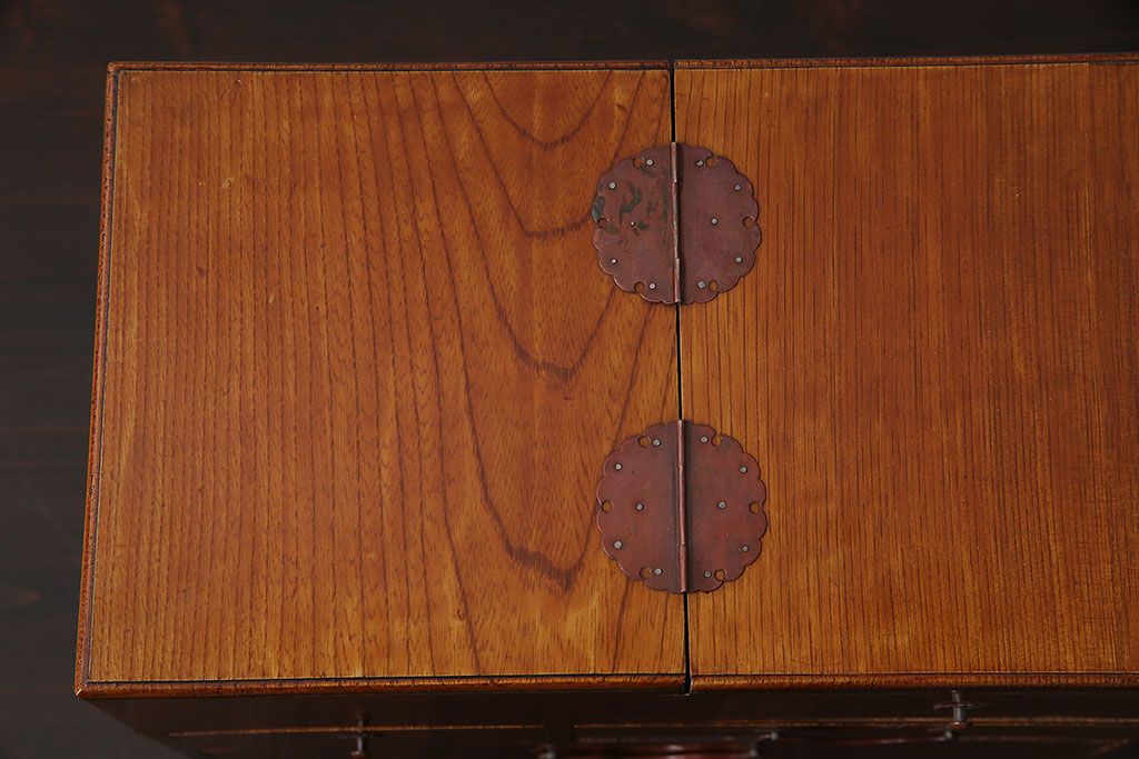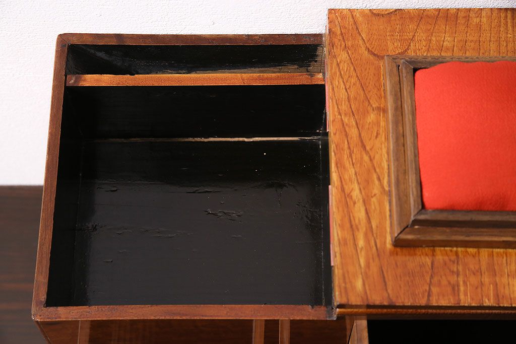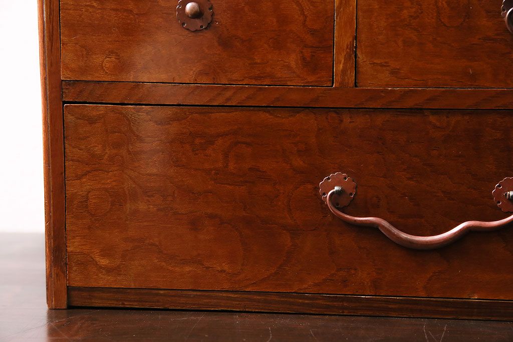 レトロ雑貨 明治大正期 高級!ケヤキ玉杢が美しい裁縫箱(ソーイングボックス、針箱、小引き出し、小物収納)(R-046279)