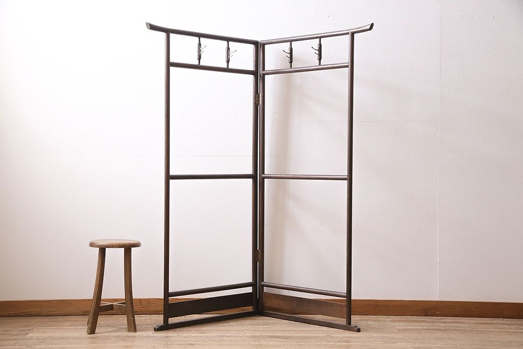ハンガーラック・衣桁> 衣桁 > ヴィンテージ家具 昭和中期 桑材 素朴な質感を堪能できるフック付きの衣桁(着物掛け、ハンガーラック、ビンテージ)(R-046265)
