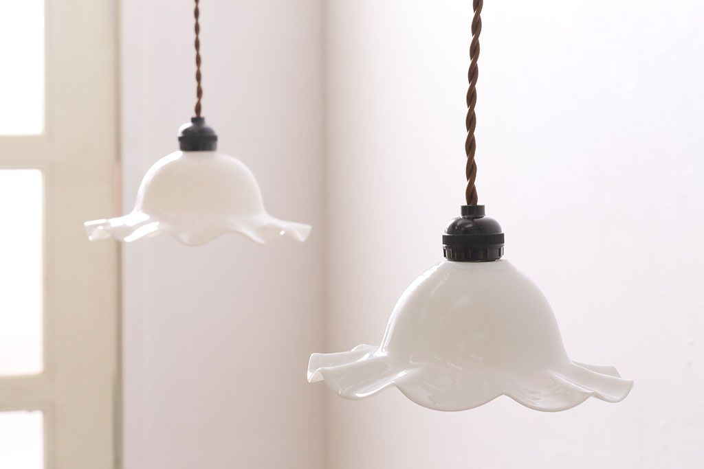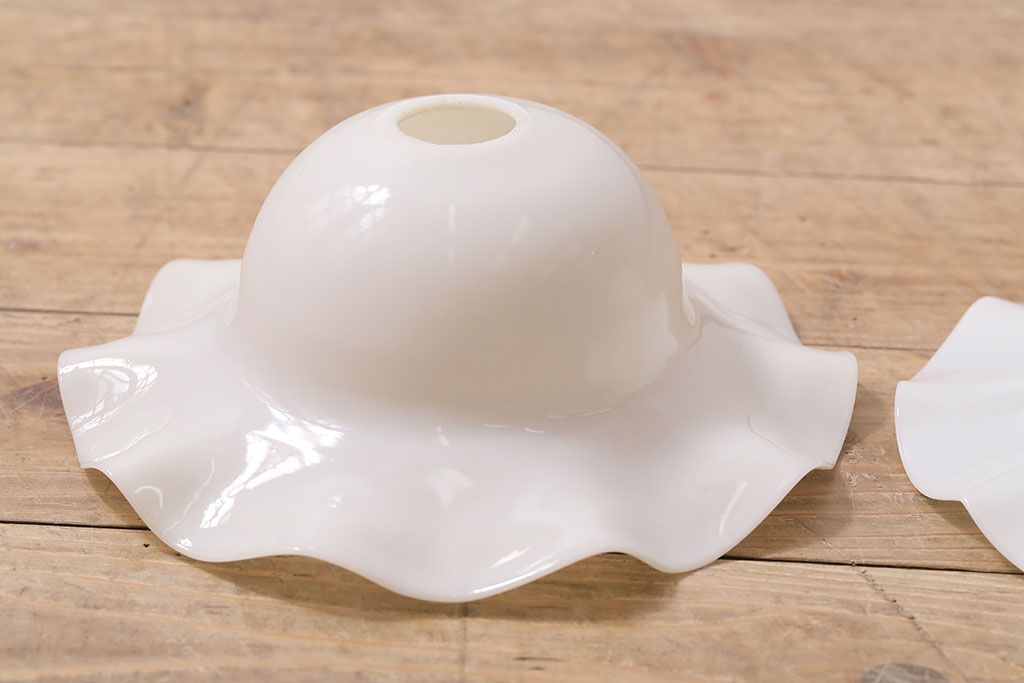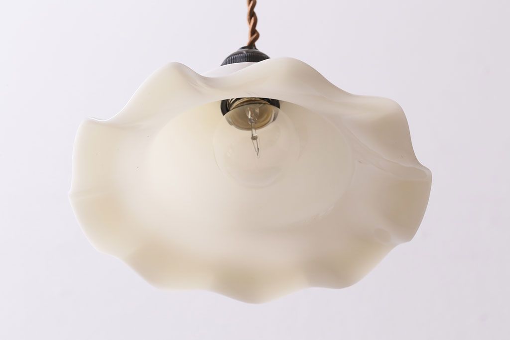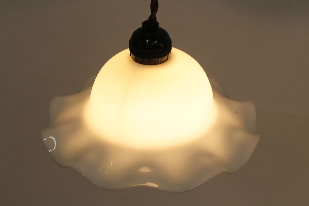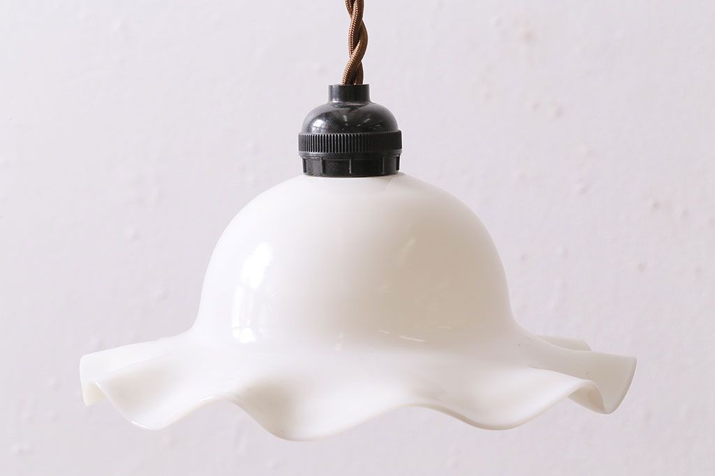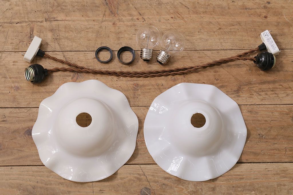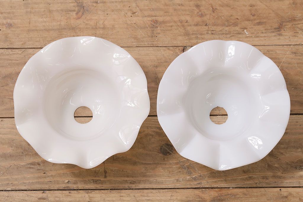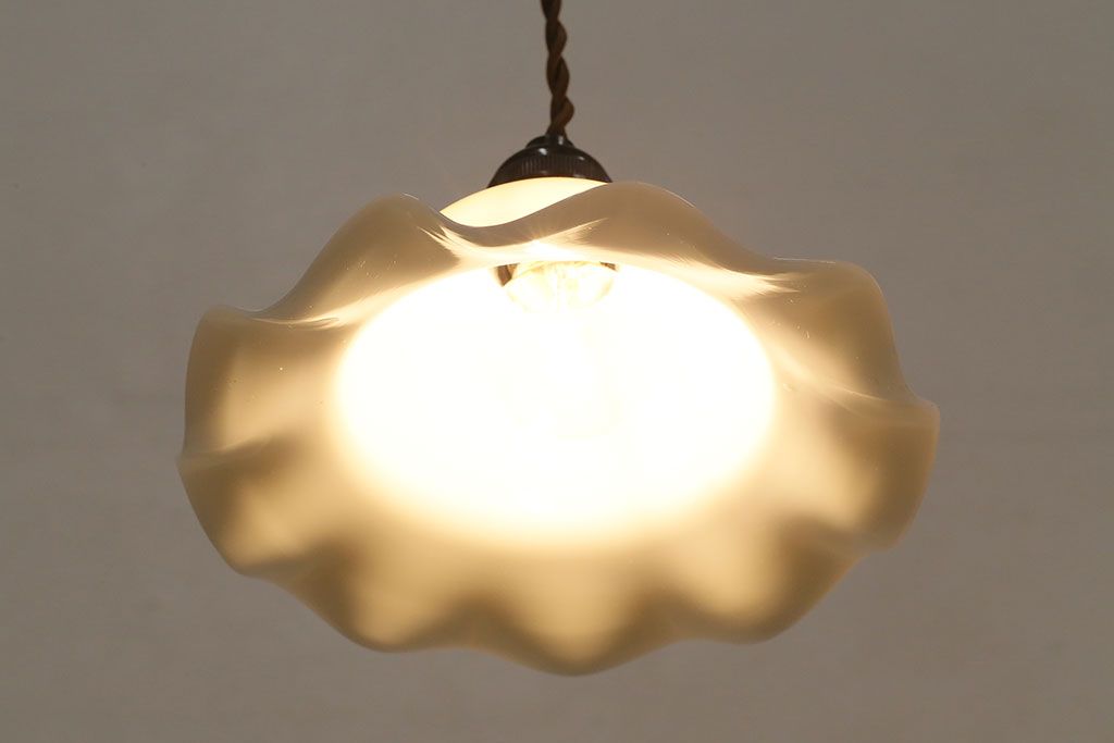 ヴィンテージ照明 イギリスビンテージ 可愛らしいフリルシェードのペンダントライト2個セット(ランプシェード、天井照明)(R-046343)
