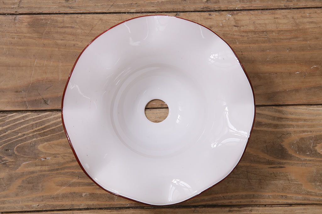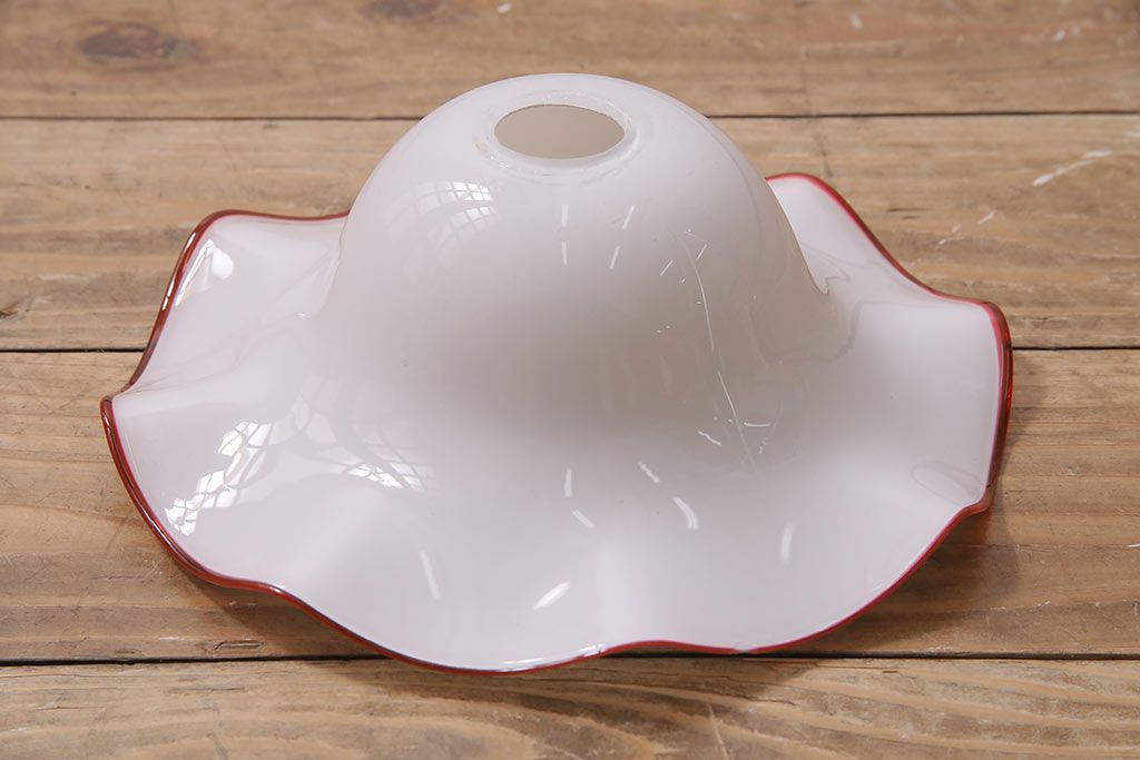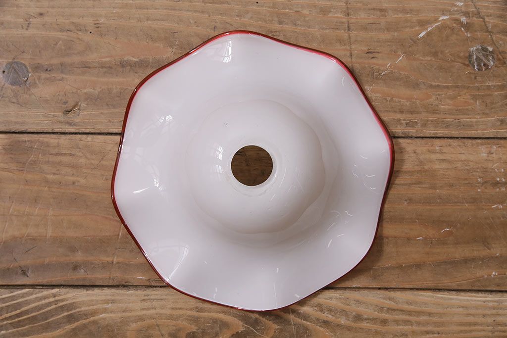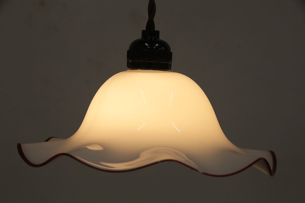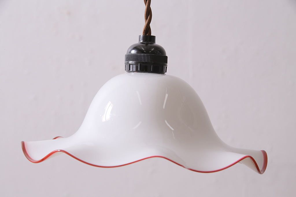 ヴィンテージ照明 イギリスビンテージ 赤色の縁が可愛らしいフリルシェードのペンダントライト(ランプシェード、天井照明)(R-046425)