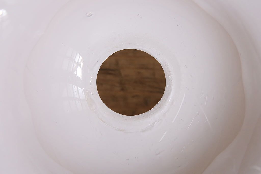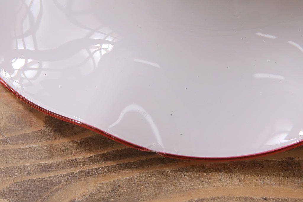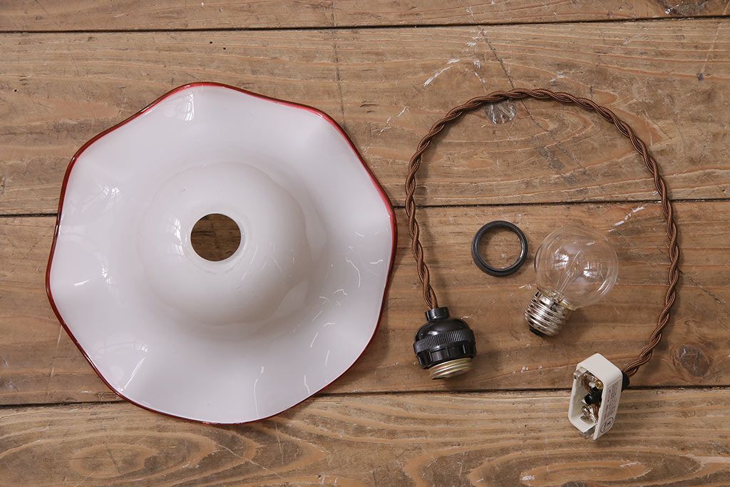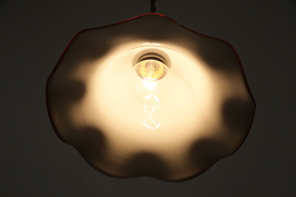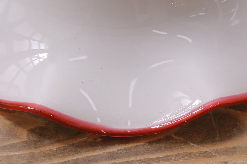 ヴィンテージ照明 イギリスビンテージ 赤色の縁が可愛らしいフリルシェードのペンダントライト(ランプシェード、天井照明)(R-046425)