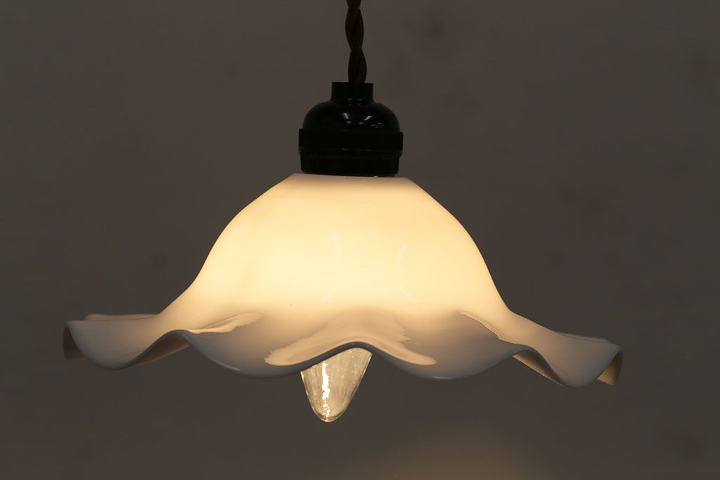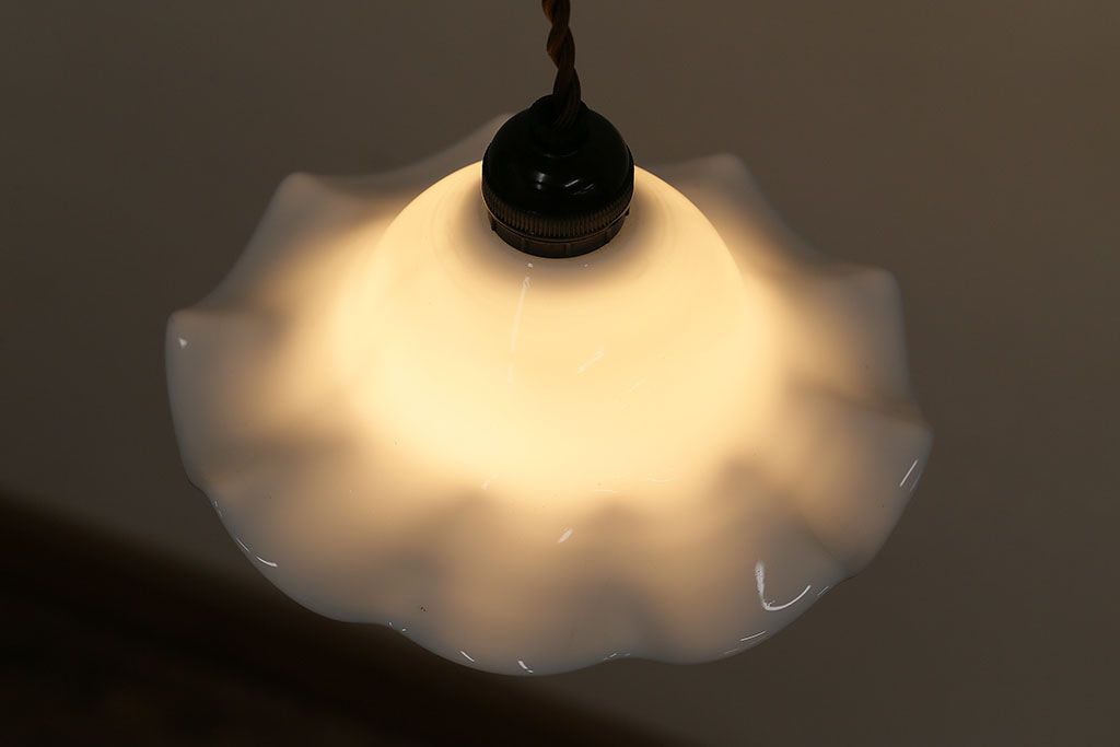 ヴィンテージ照明 イギリスビンテージ 可愛らしいフリルシェードのペンダントライト(ランプシェード、天井照明)(R-046330)です。