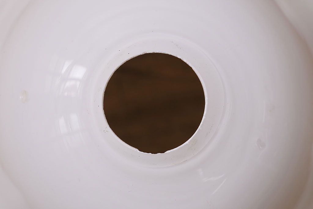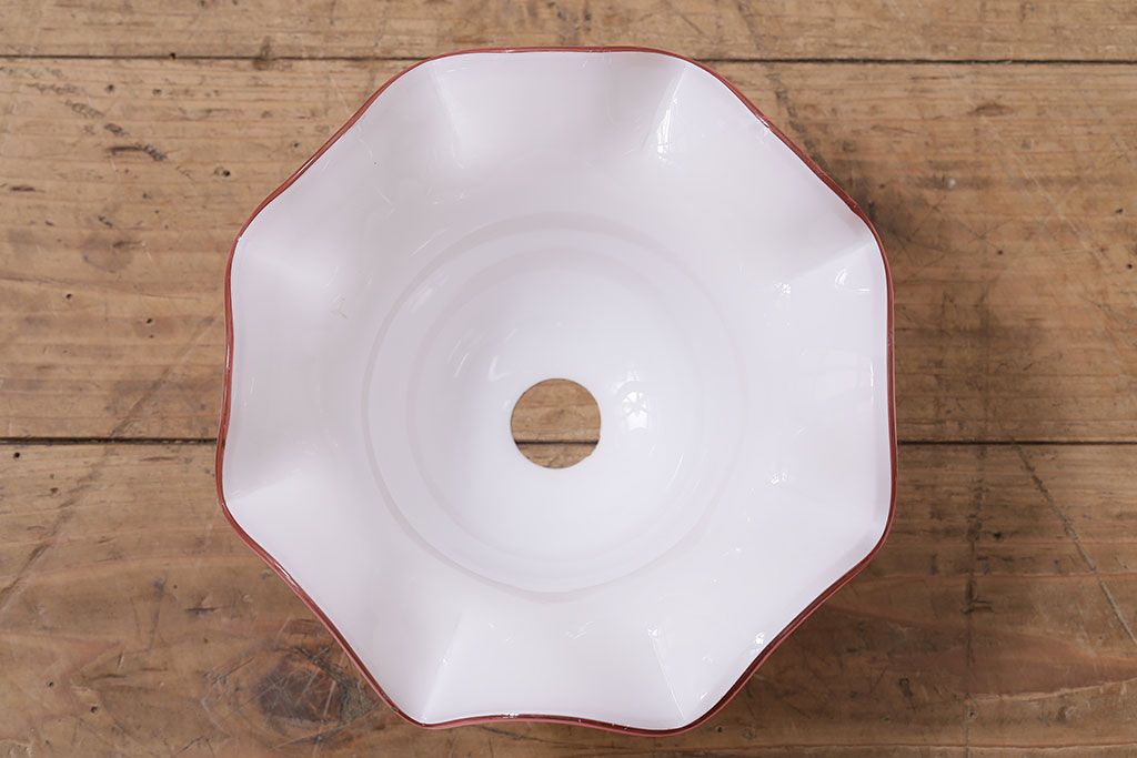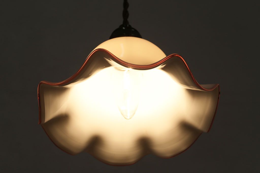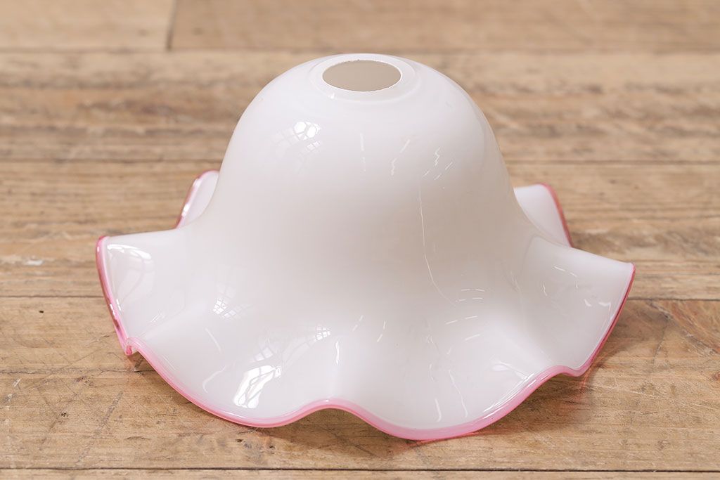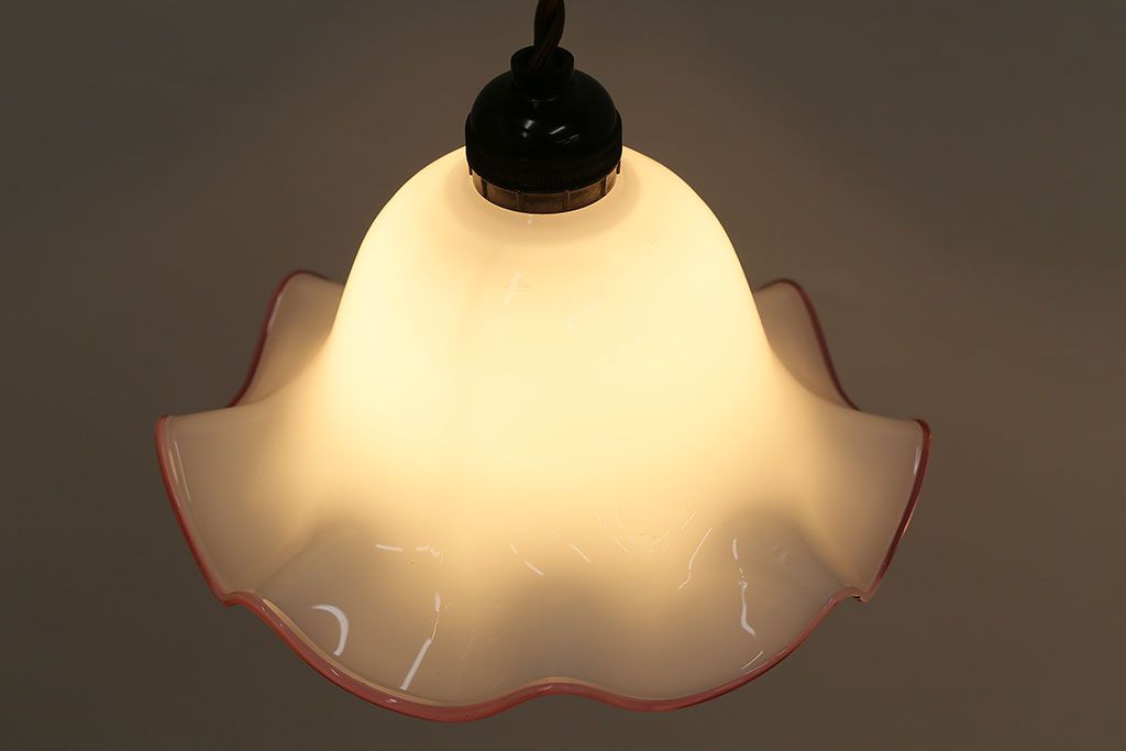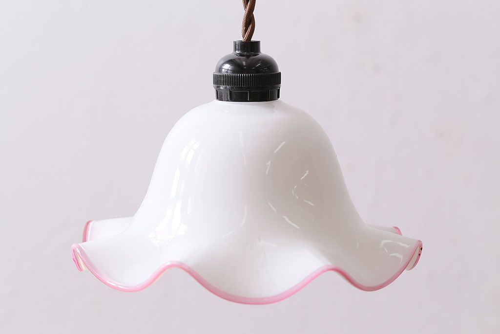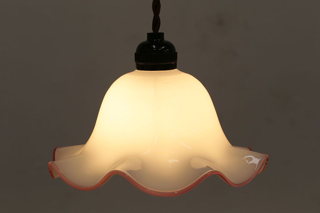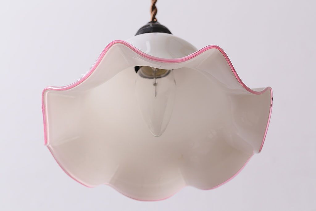 ヴィンテージ照明 イギリスビンテージ ピンクの縁が可愛らしいフリルシェードのペンダントライト(ランプシェード、天井照明)(R-046332)です。