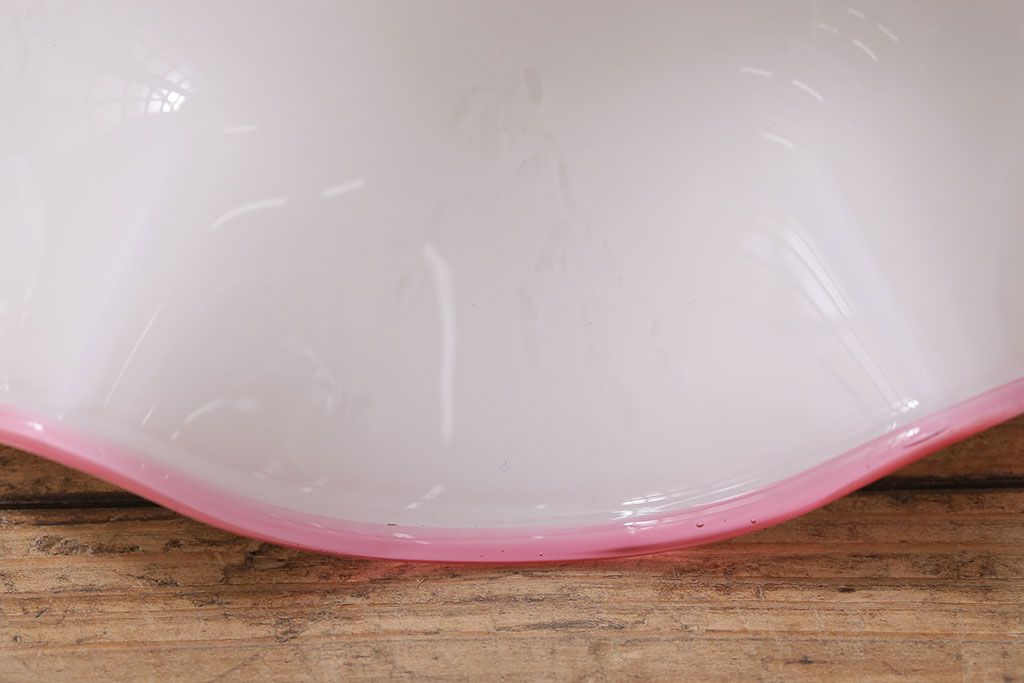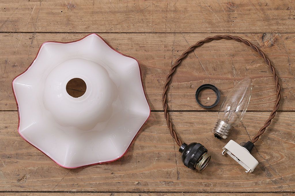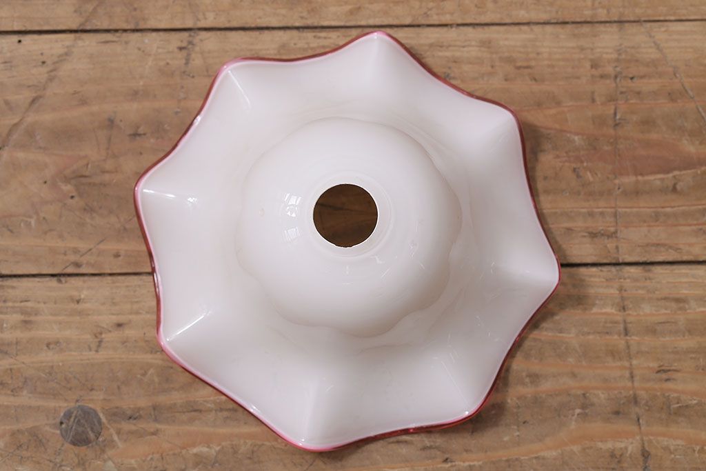 ヴィンテージ照明 イギリスビンテージ ピンクの縁が可愛らしいフリルシェードのペンダントライト(ランプシェード、天井照明)(R-046332)