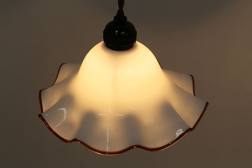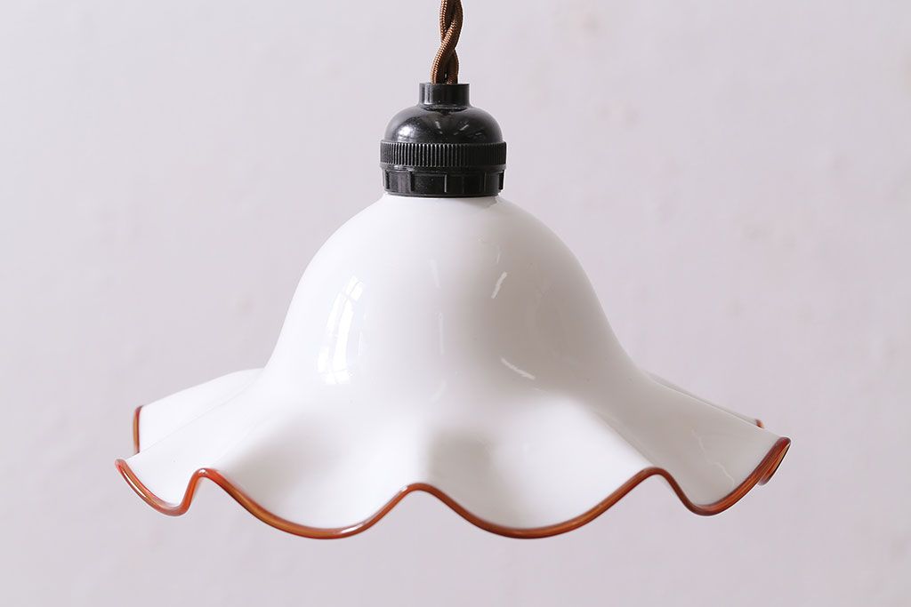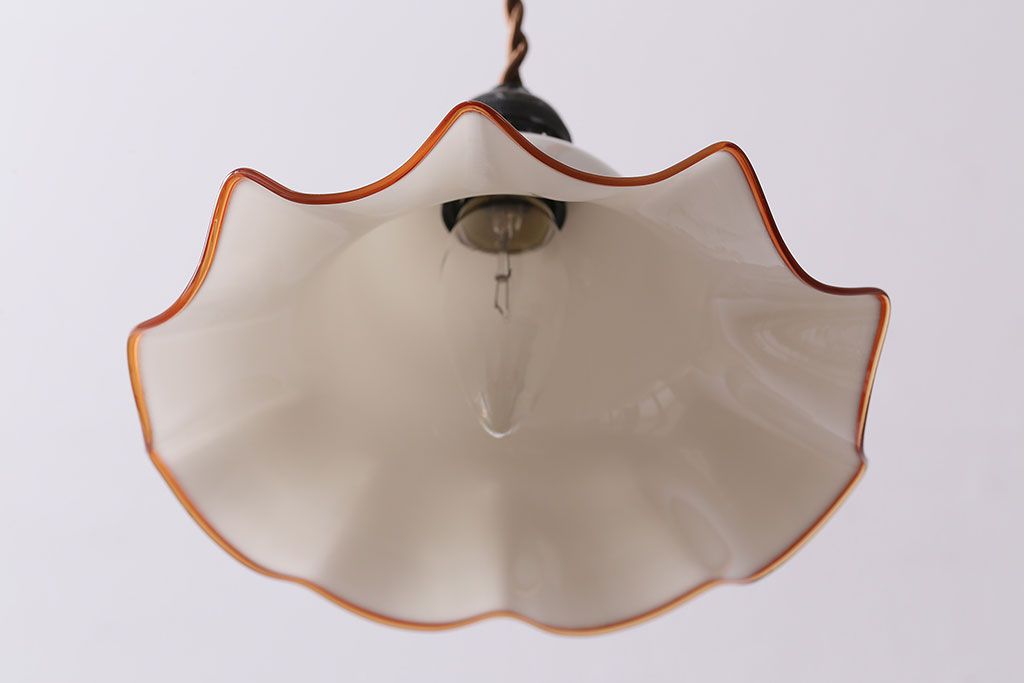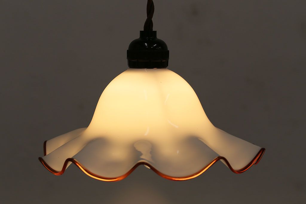 ヴィンテージ照明 イギリスビンテージ オレンジの縁が可愛らしいフリルシェードのペンダントライト(ランプシェード、天井照明)(R-046333)です。