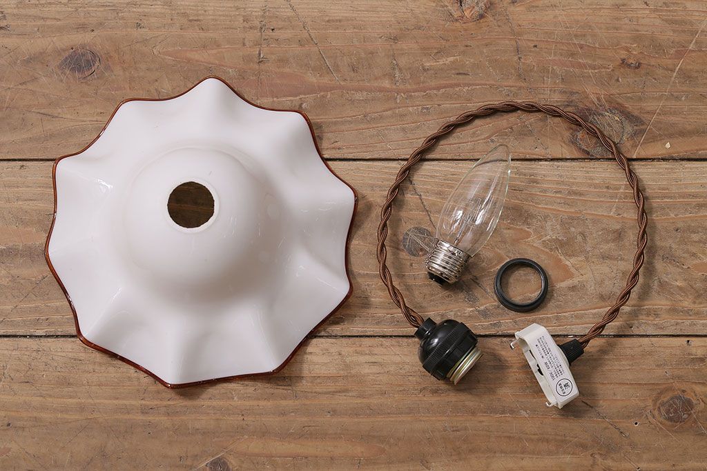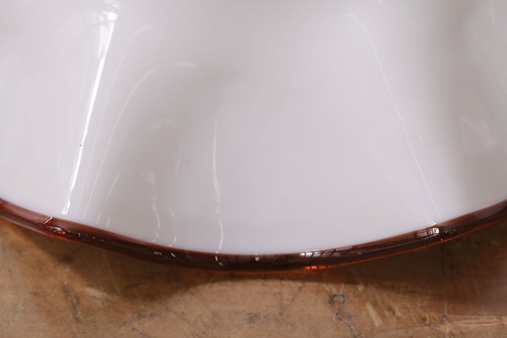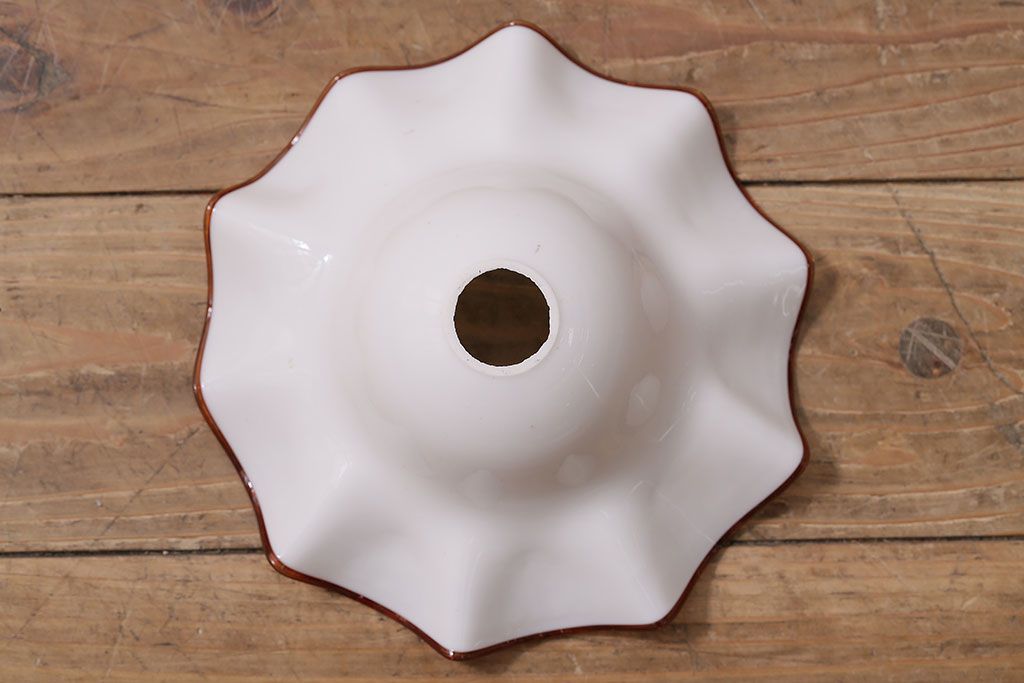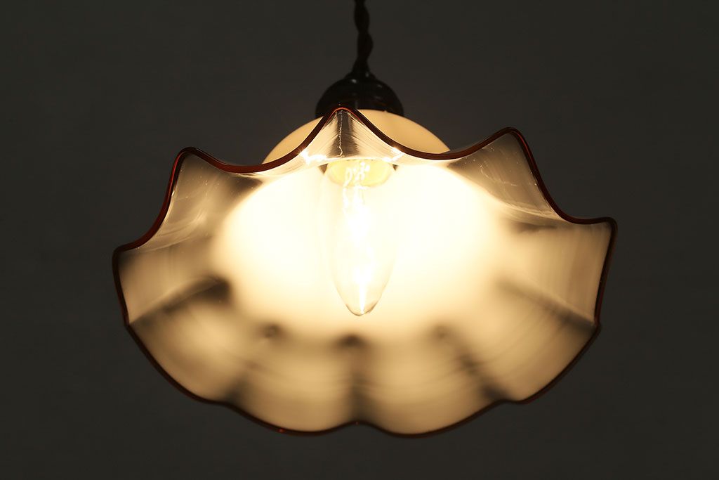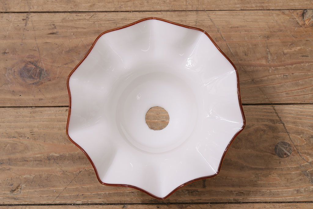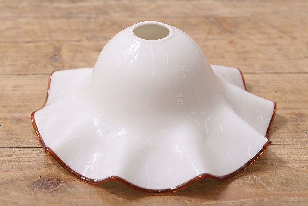 ヴィンテージ照明 イギリスビンテージ オレンジの縁が可愛らしいフリルシェードのペンダントライト(ランプシェード、天井照明)(R-046333)