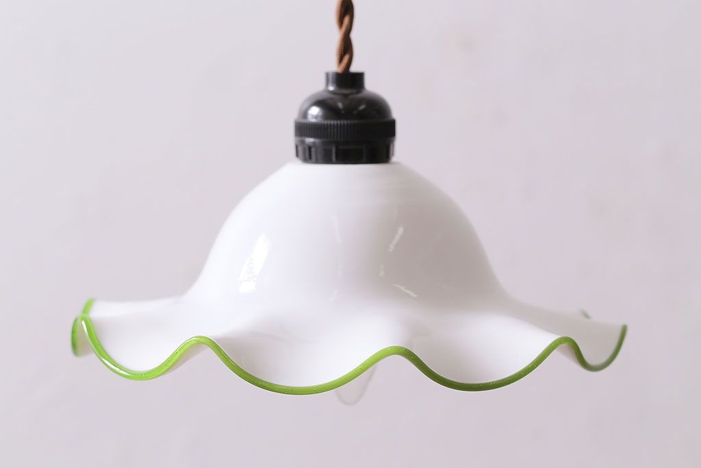 ヴィンテージ照明 イギリスビンテージ 黄緑の縁が可愛らしいフリルシェードのペンダントライト(ランプシェード、天井照明)(R-046336)です。