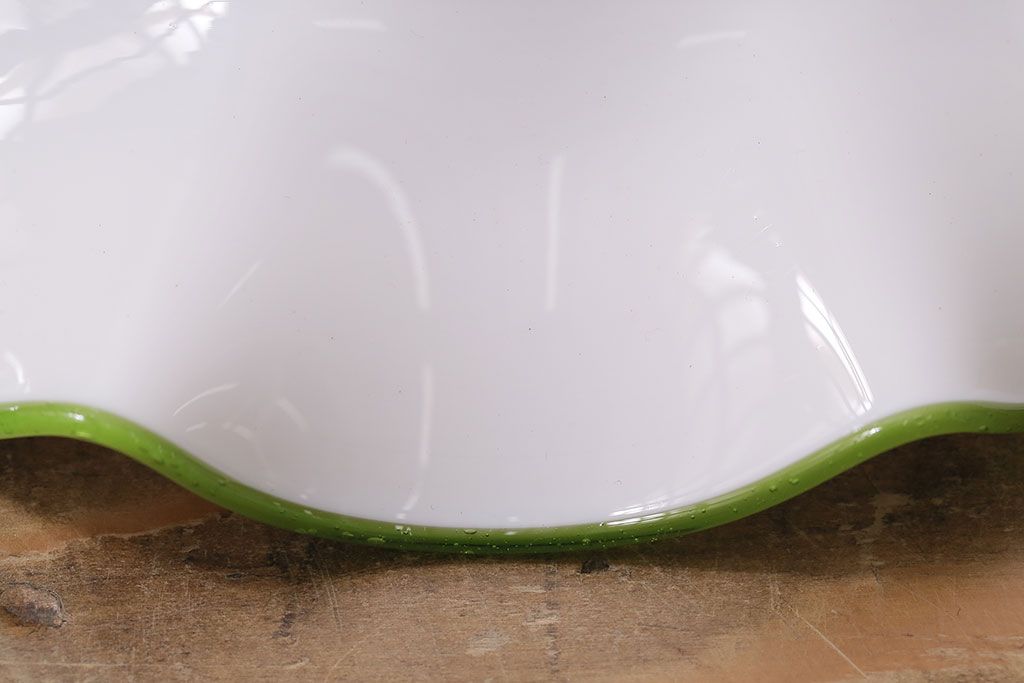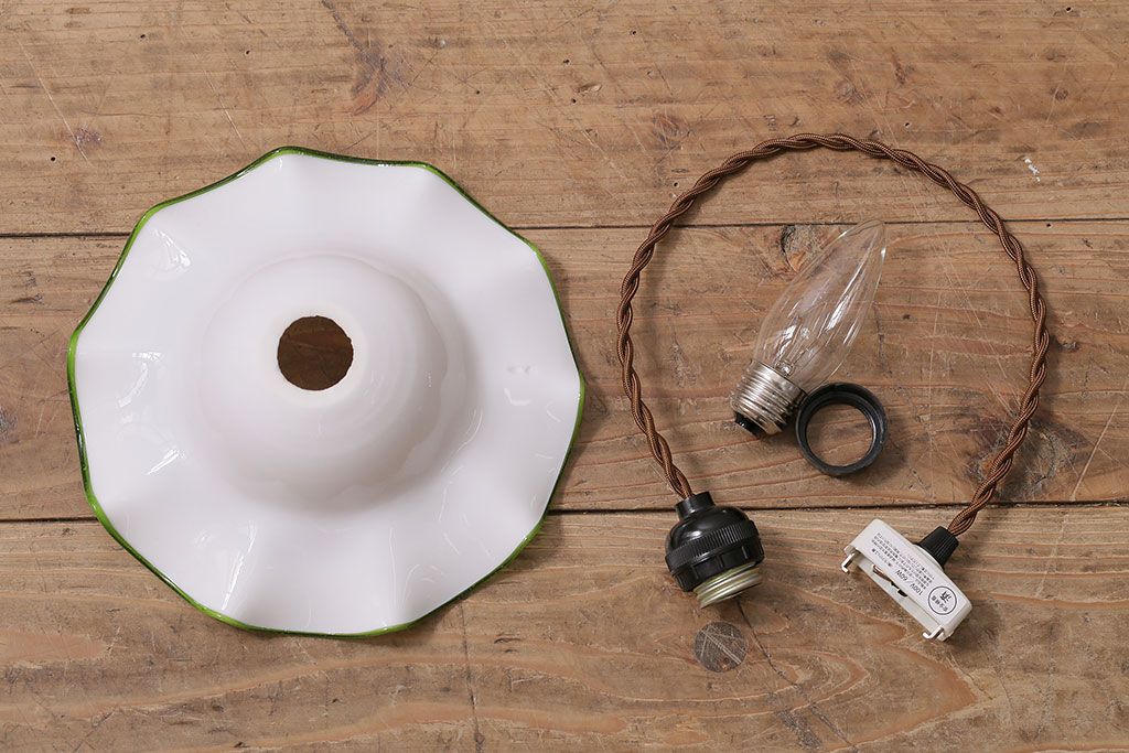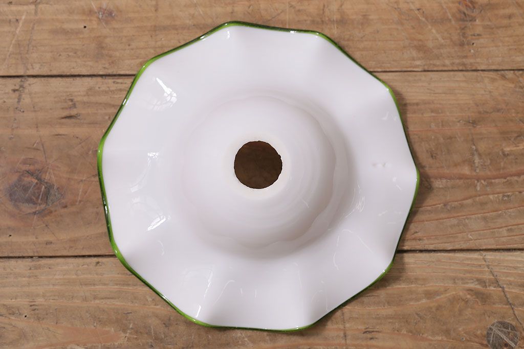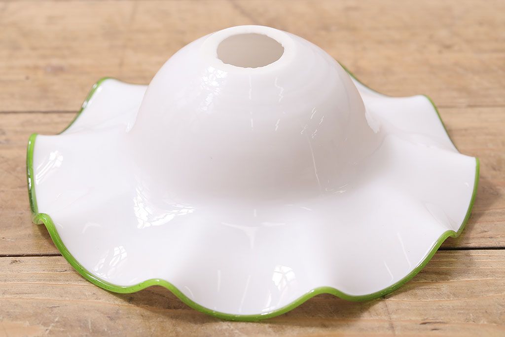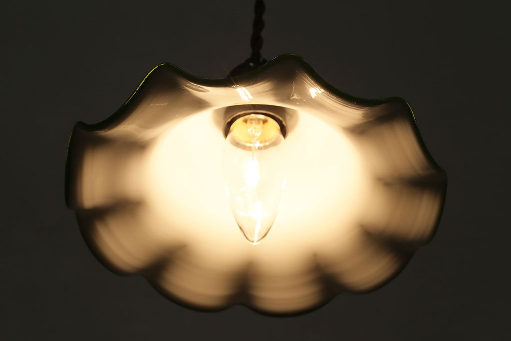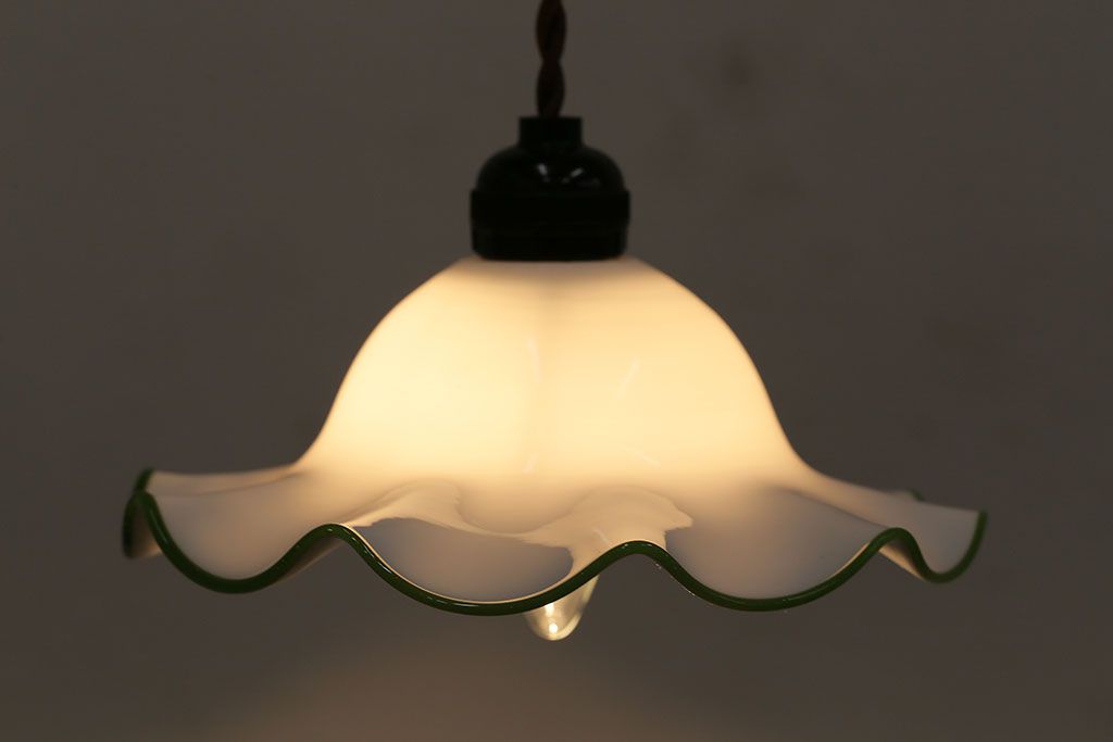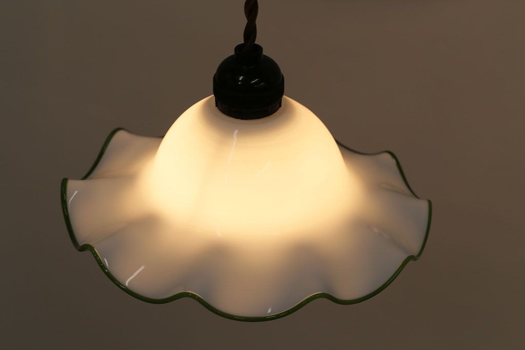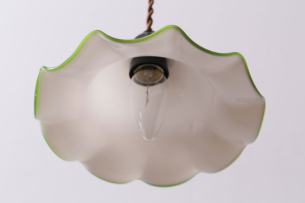 ヴィンテージ照明 イギリスビンテージ 黄緑の縁が可愛らしいフリルシェードのペンダントライト(ランプシェード、天井照明)(R-046336)