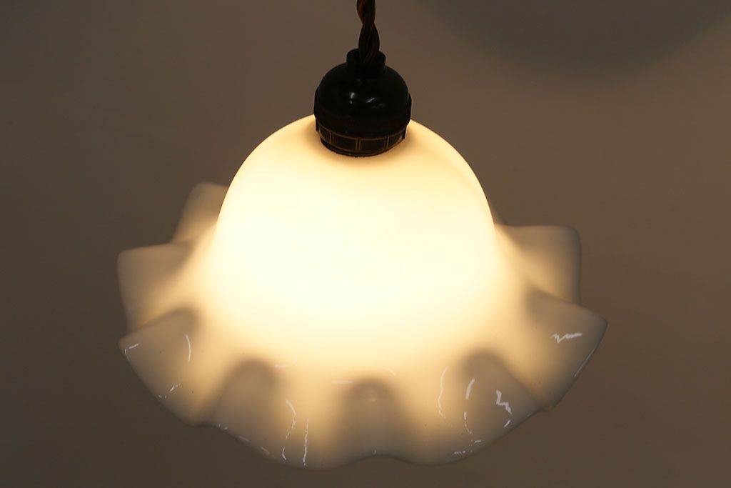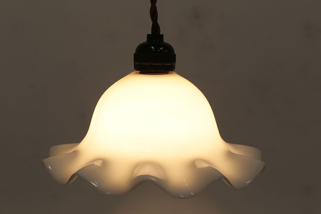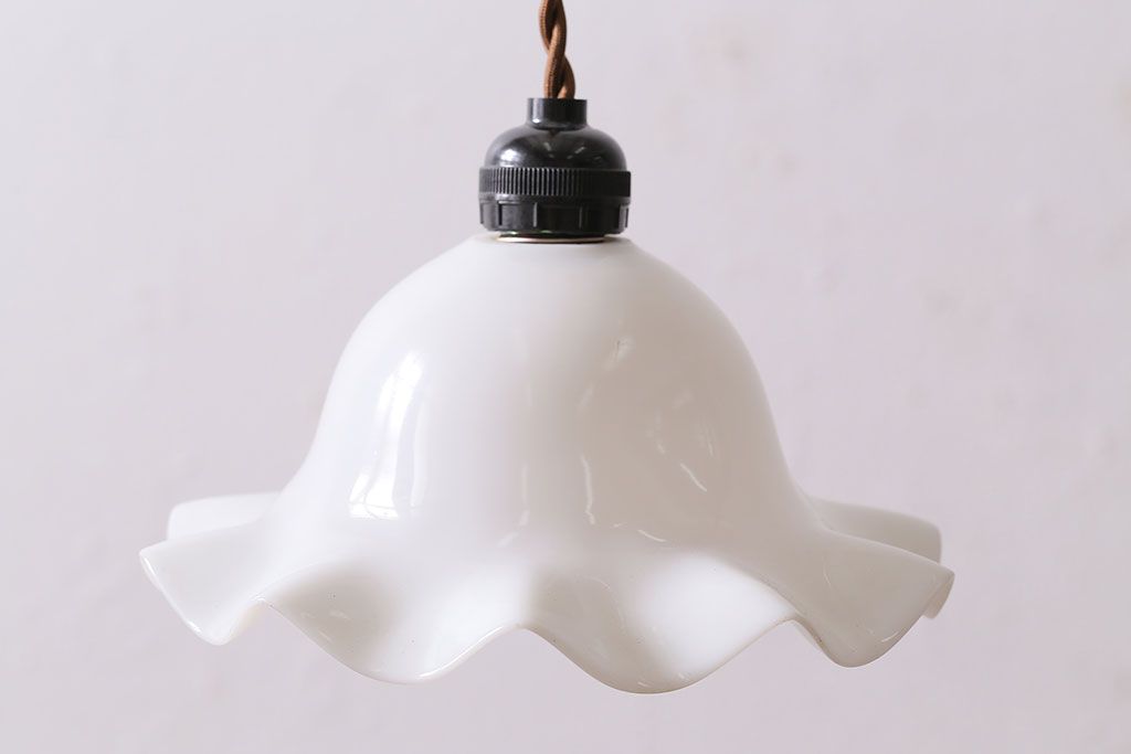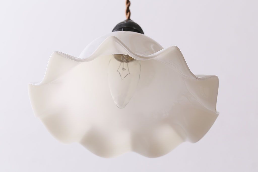 ヴィンテージ照明 イギリスビンテージ 可愛らしいフリルシェードのペンダントライト(ランプシェード、天井照明)(R-046338)です。